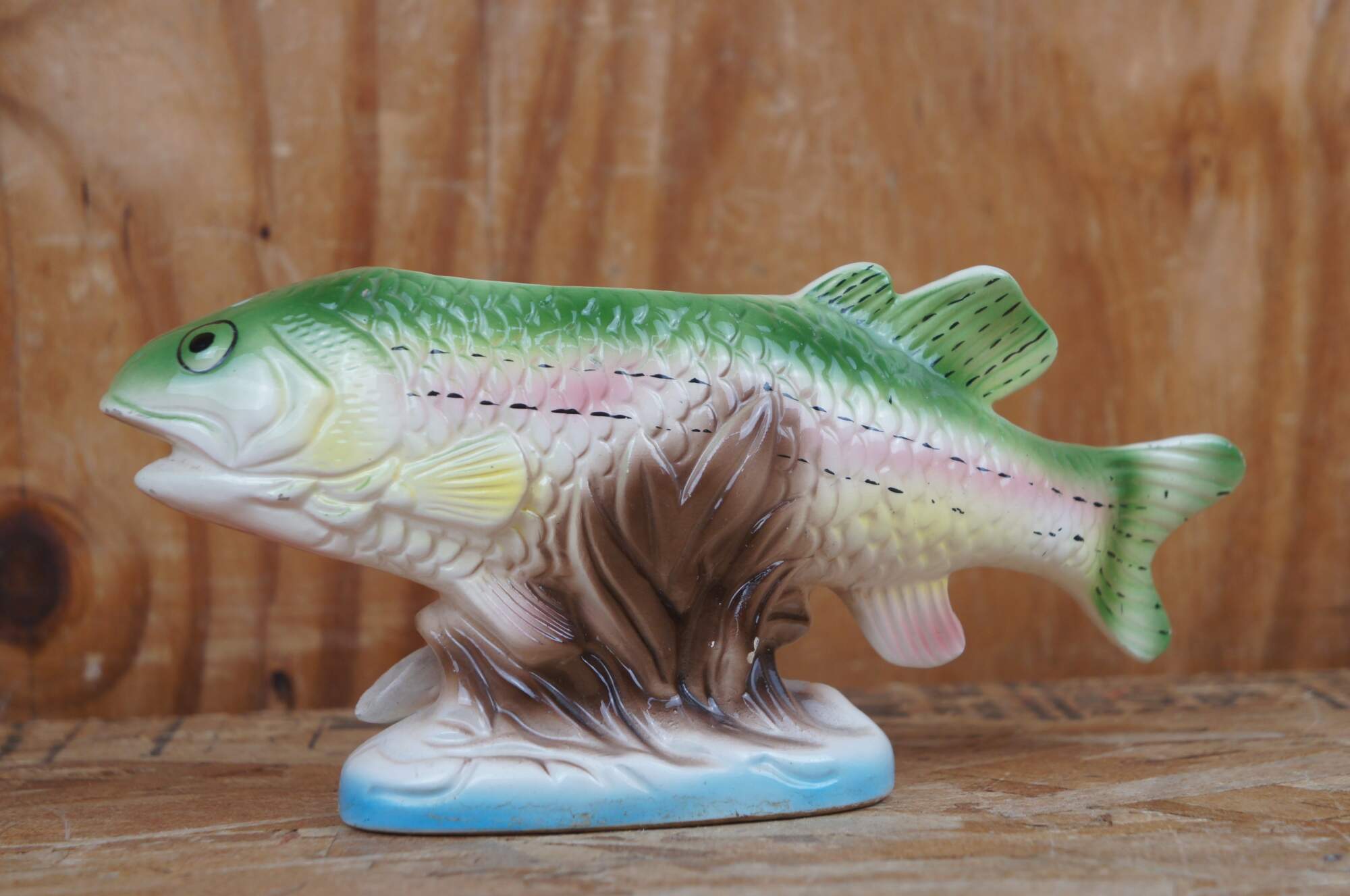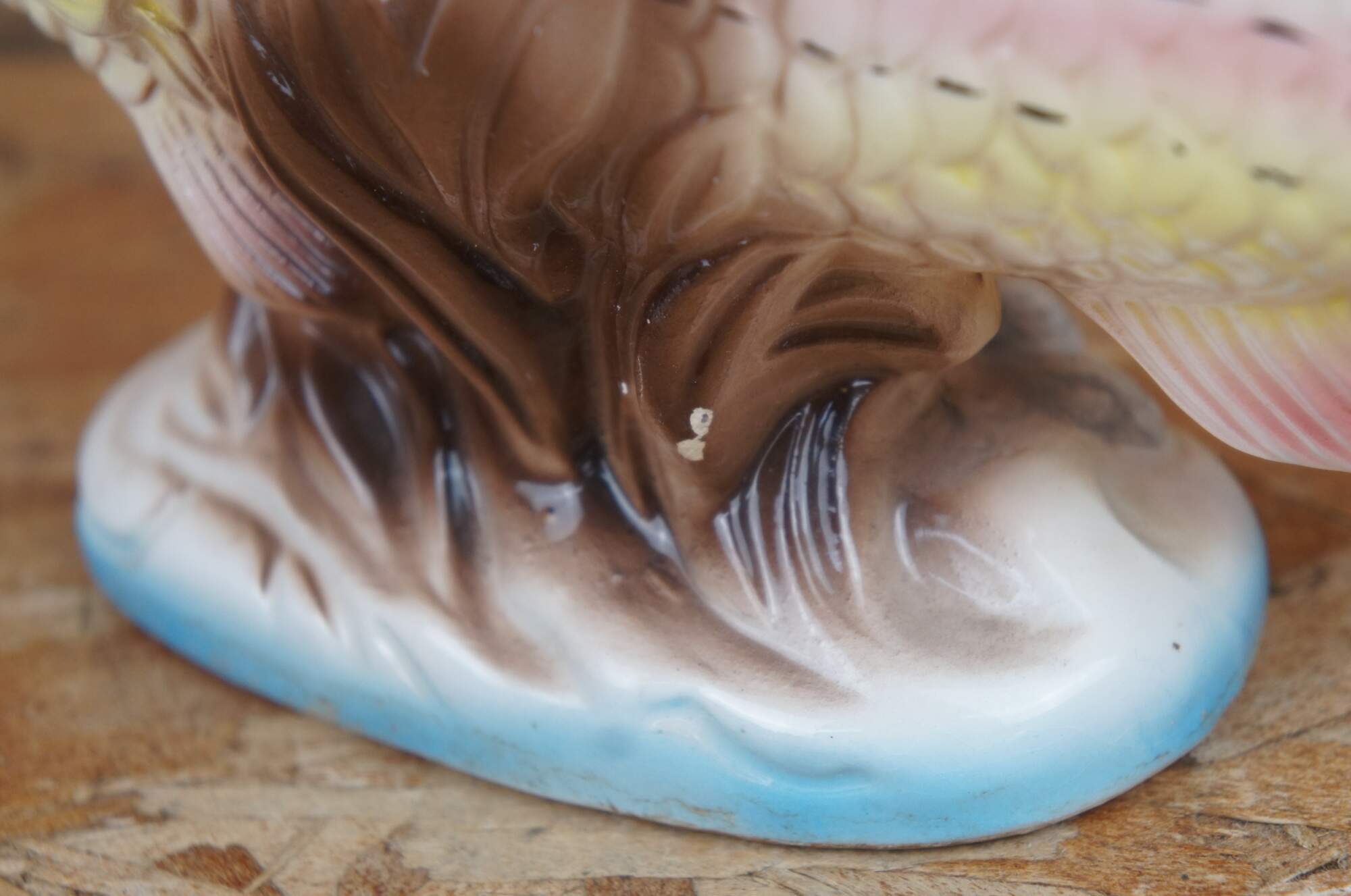 Mid century Rubens pocelain or ceramic planter vase in the form of a Rainbow Trout fish. Perfect for a lake house or cabin. T998.