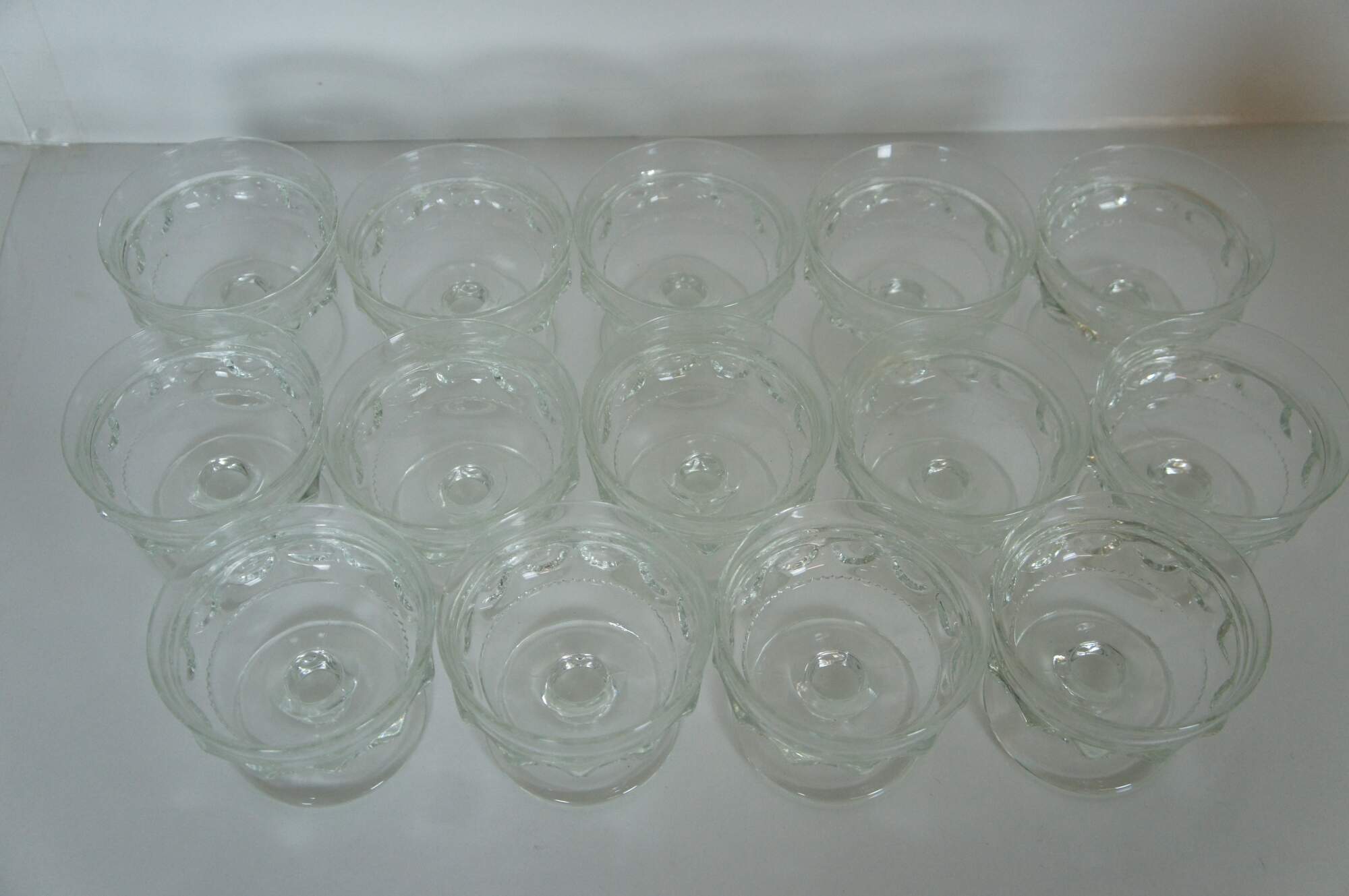 Vintage set of fourteen Indiana Glass sherbert compote glasses in the Kings Crown Thumbprint design.