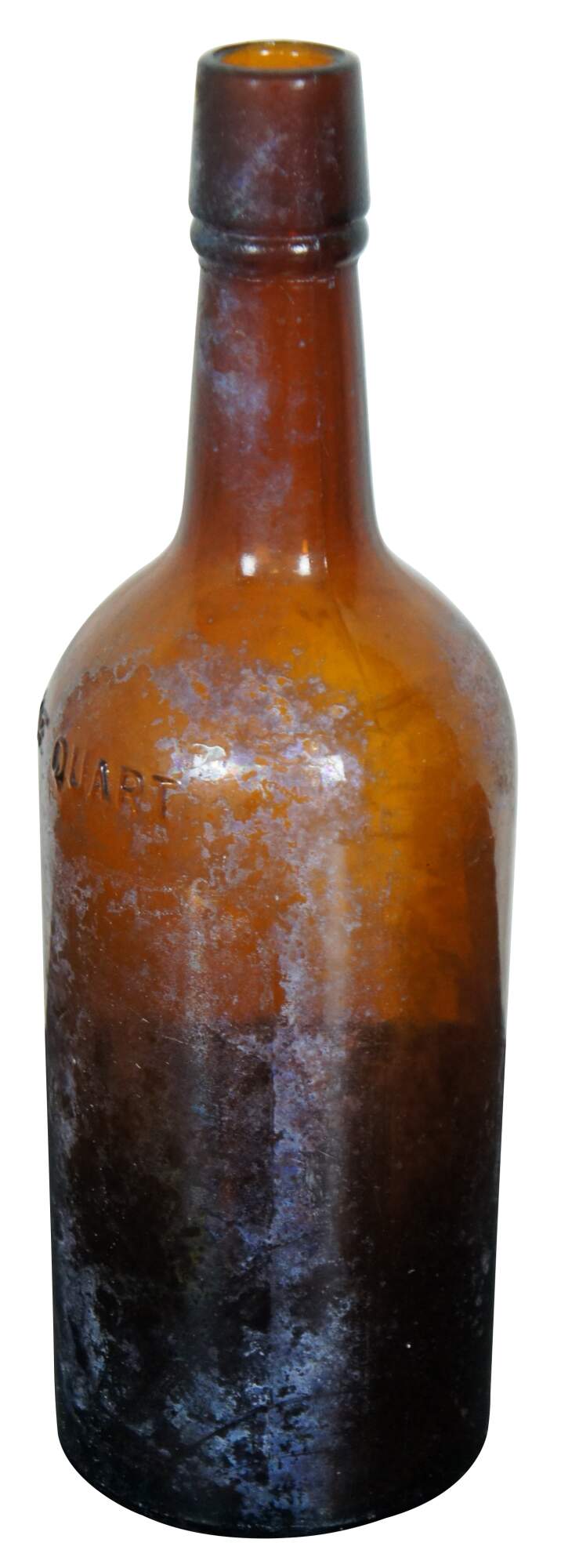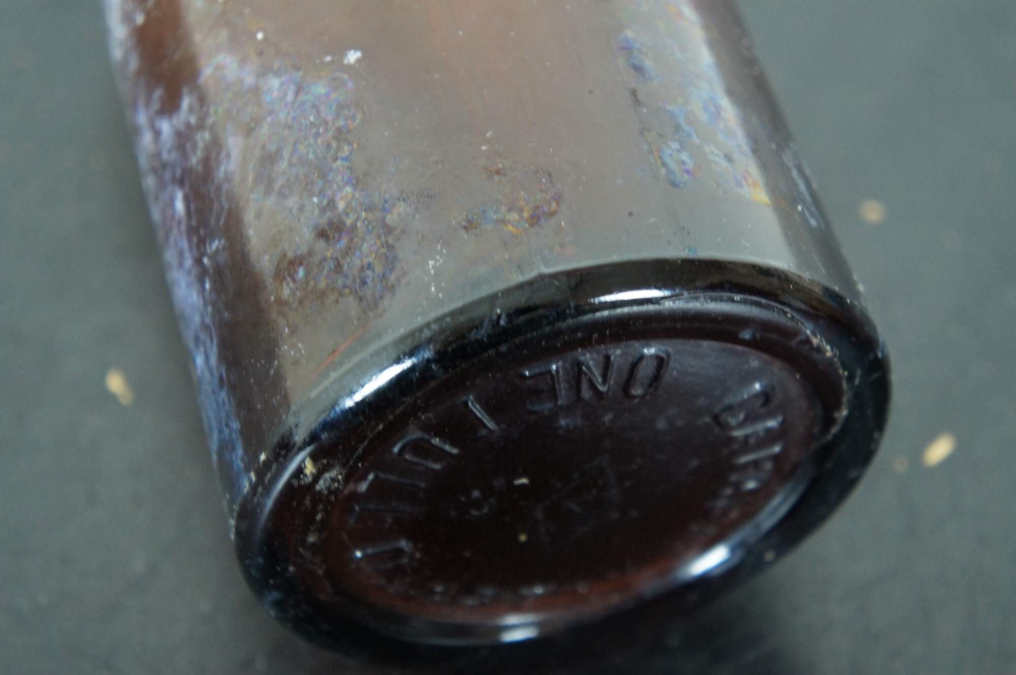 Antique amber glass bottle, most likely made by the Illinois Glass Company for medical use, circa 1900-1929. Embossed with the words “One Quart” on the side and “Capacity One Full Quart” and a diamond with a 7 inside it, above the number 3, on the base. “From 1929-1983 the Owens-Illinois Glass Company (1929 – present) was the world’s largest glass producing factory located in Alton. As a major employer to Alton residents, it boosted the economy and made Alton a highly successful industrial town in the 20th century. In the late 19th century, Alton had an established glass industry comprising of several small businesses, with the largest being the Illinois Glass Company. It was started in 1873 by William Eliot Smith (1844-1909) and Edward Levis (1819-1903).1 After 1877 their success demanded a larger space for production, thus prompting Alton leaders to fundraise to help purchase land to keep the company from moving to St. Louis.2 By 1915, the Illinois Glass Company modernized the glass industry by using bottle machines invented by the Owens Bottle Machine Company that replaced skilled glassblowers. The machine made producing standardized bottles faster and at a higher quantity. The Illinois Glass Company produced glass products for a wide variety of uses: medicine bottles, alcohol bottles, soda bottles, ash trays, and more.3 The company’s success prompted the Owens Bottle Machine Company to buy the Illinois Glass Company for $19 million in 1929, which created the Owens-Illinois Glass Company. William (Bill) Levis (1890-1962), the former President of the Illinois Glass Company and grandson of co-founder Edward Levis, became the new Executive Vice President and General Manager of the Owens-Illinois Glass Company, the headquarters of which moved to Toledo, Ohio. Soon, the Alton plant became the largest glass bottle producers and the largest container factory owned by Owens-Illinois.5 Alton had three plants: the General Engineering Division, Plant #97 Alton Central Shops Division, and Plant #7, which was the Glass Containing Plant. The height of production for the Alton plant was in 1973, with 2,400 workers that operated nine of the ten available furnaces and 31 bottle-forming machines. Rumors of the Alton Plant #7 closing circulated in the 1980s following several layoffs, leaving the plant running at 10% of its former capacity. On July 27, 1983 news broke that the Alton plant would close due to a lack of business, leaving 17 plants open nationwide. The Alton plant closed on October 19, 1983 after 110 years of operation, leaving the remaining 312 employees without their jobs. The shutdown came from the growing popularity of plastic and aluminum bottles, slowing the demand for glass bottles.6