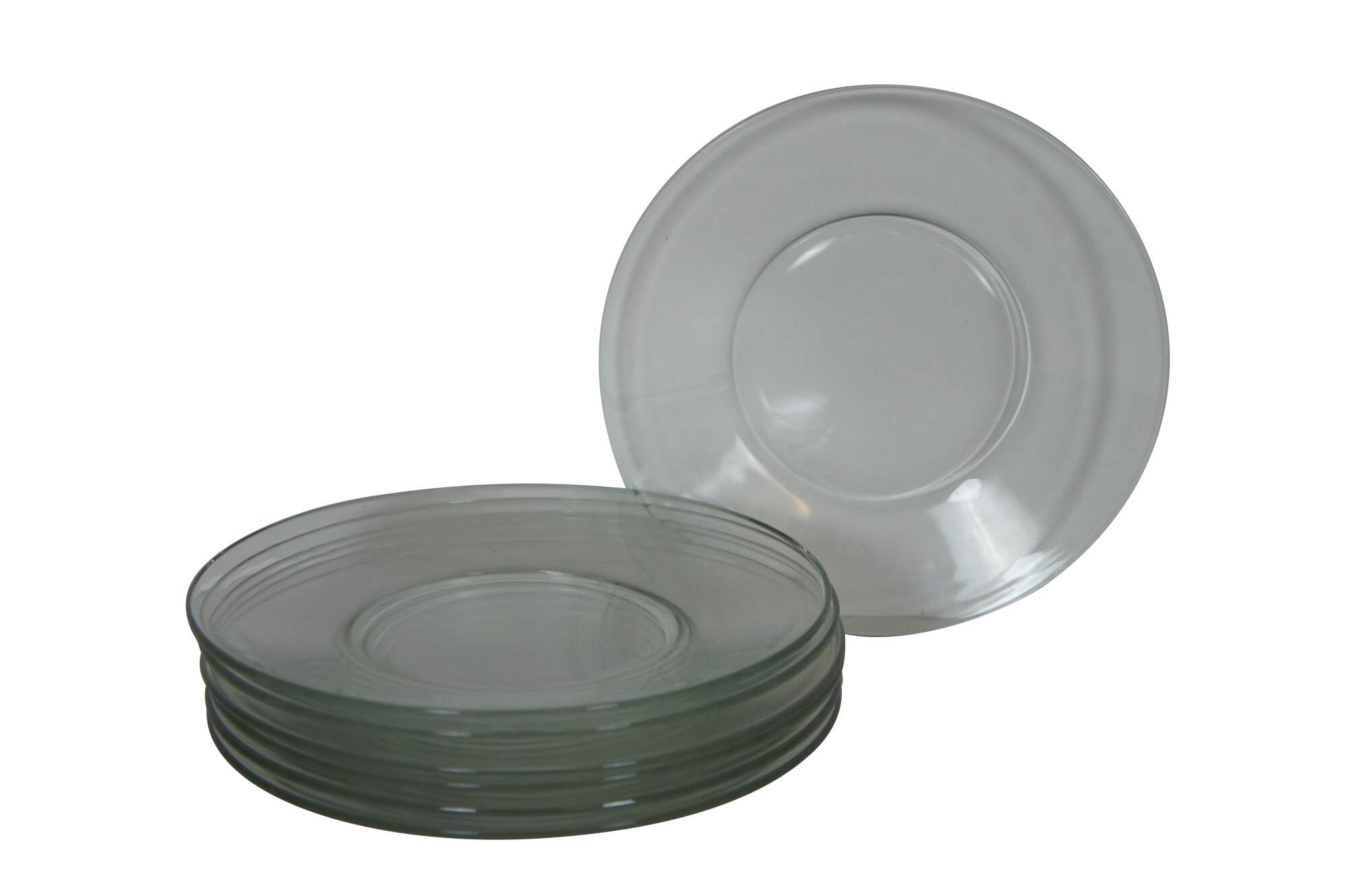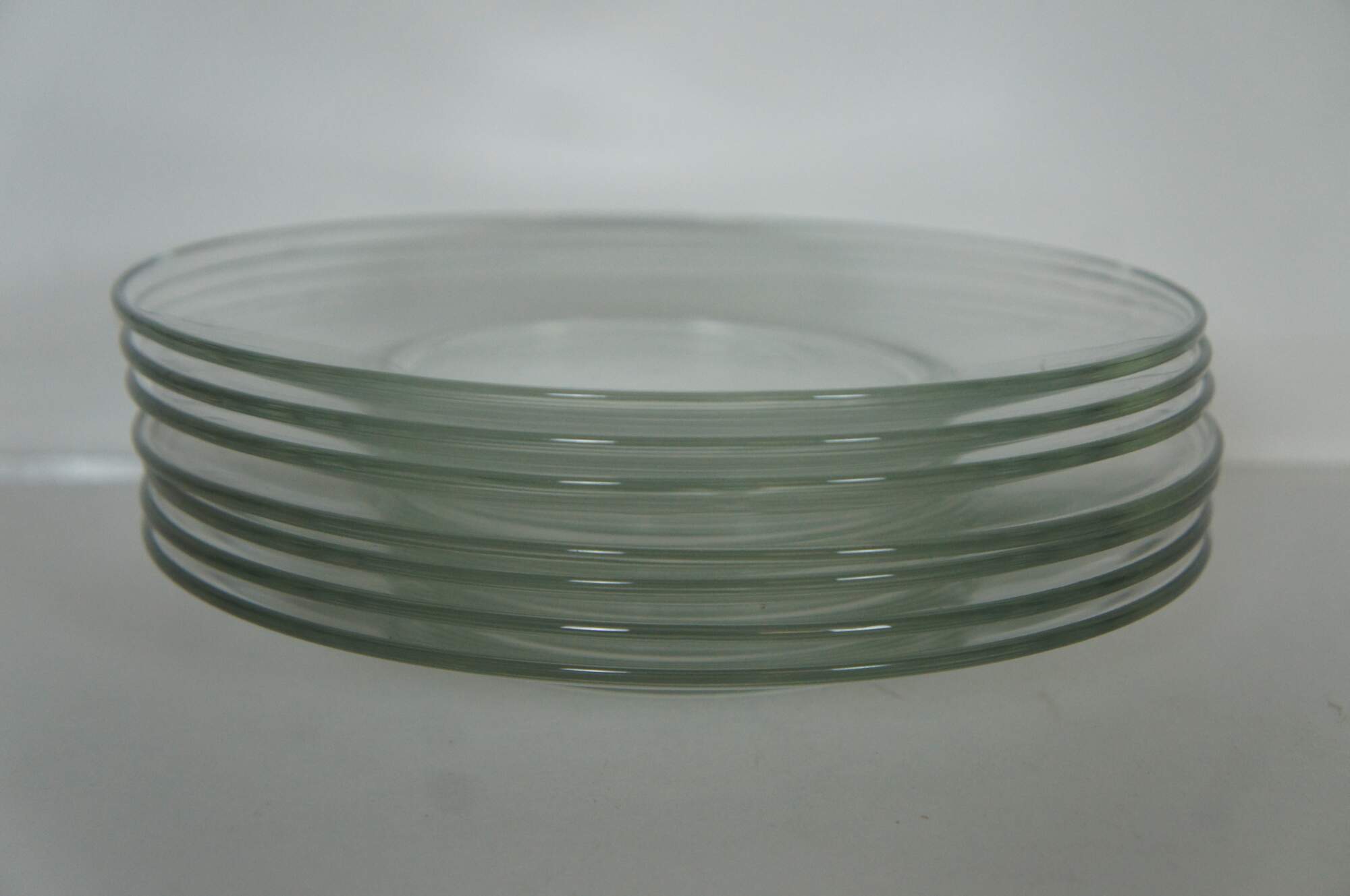 Seven vintage clear glass salad or dessert plates.