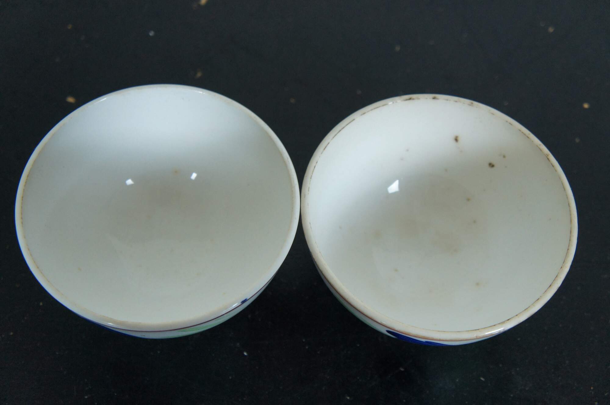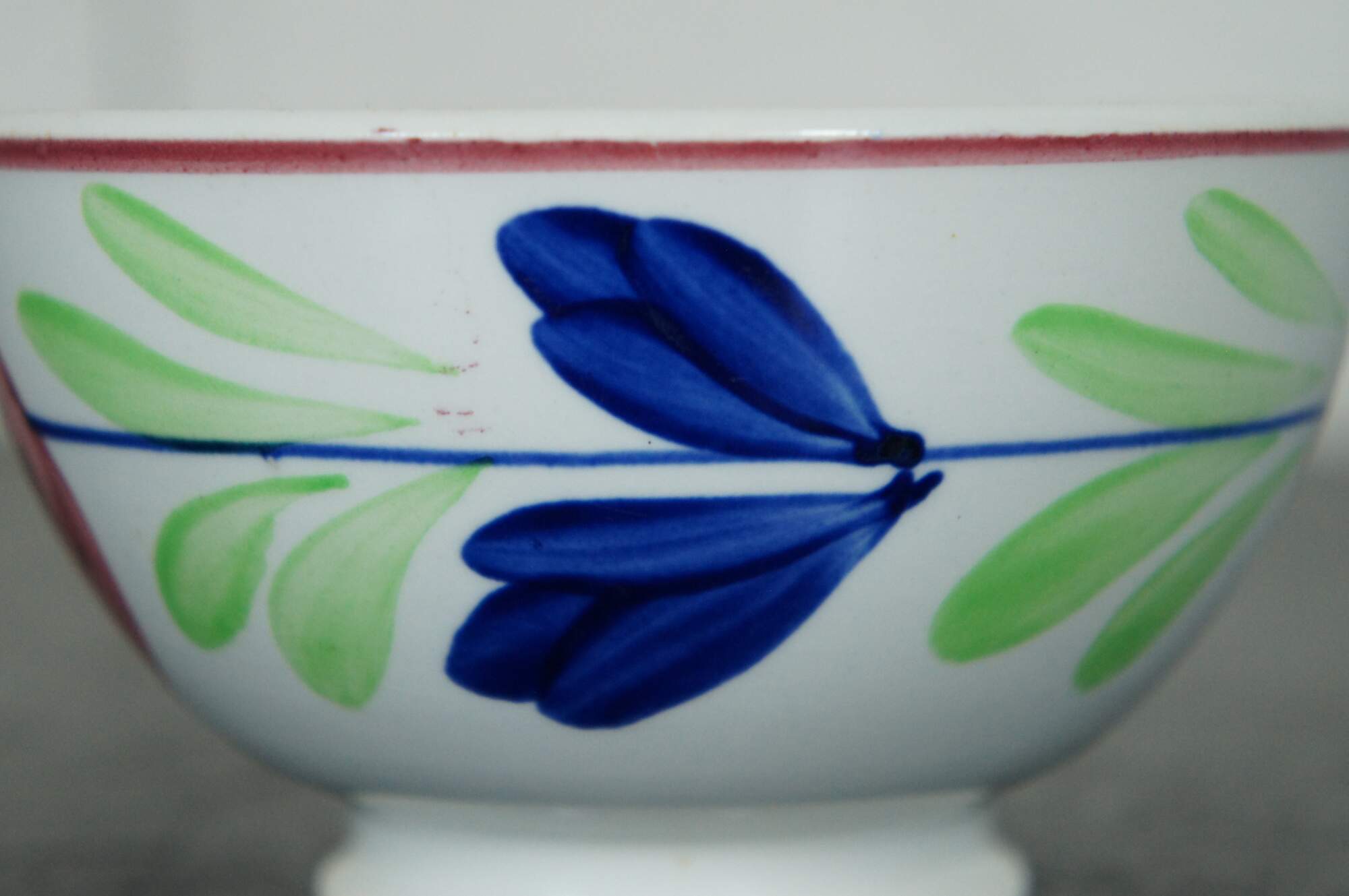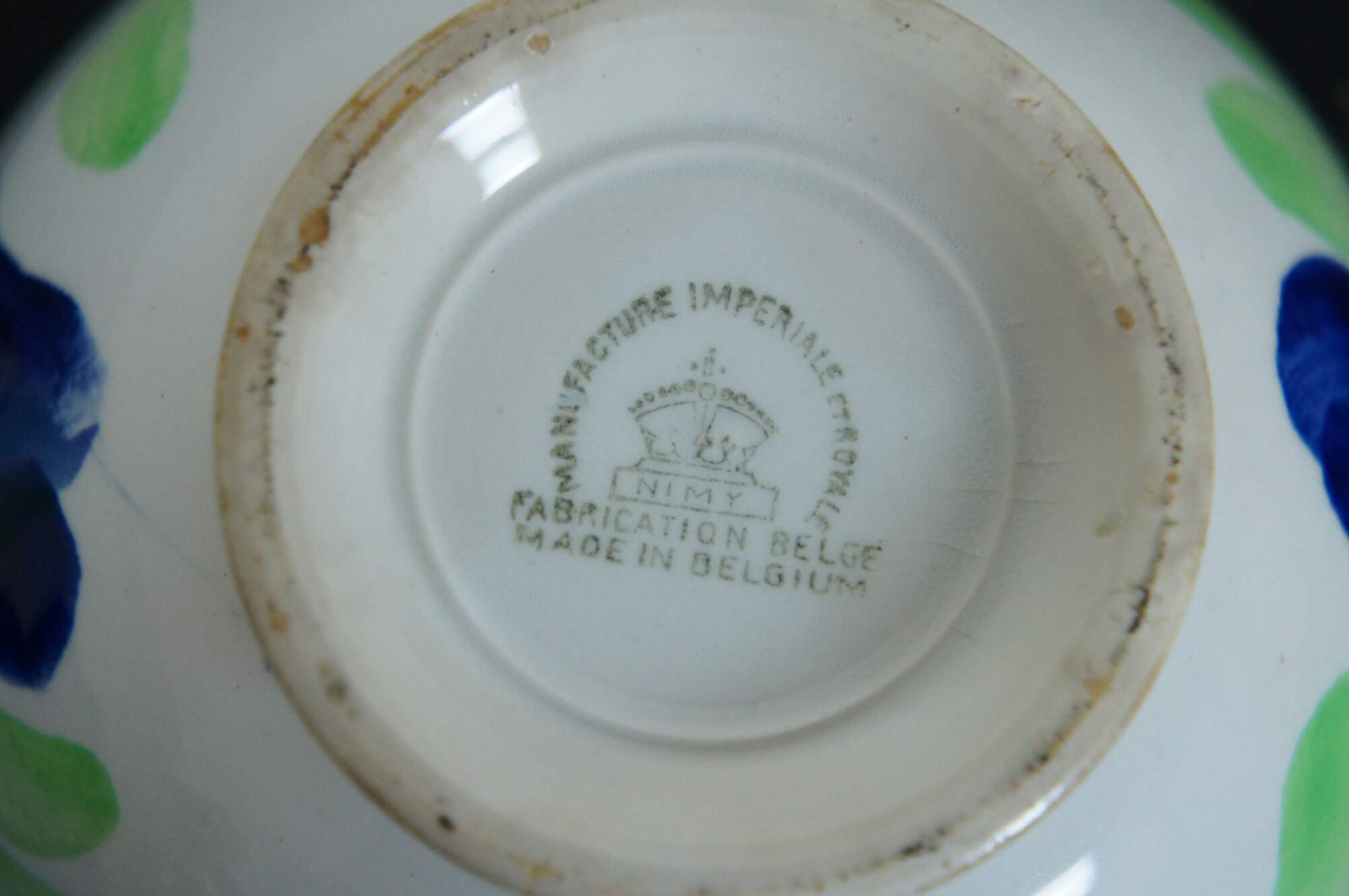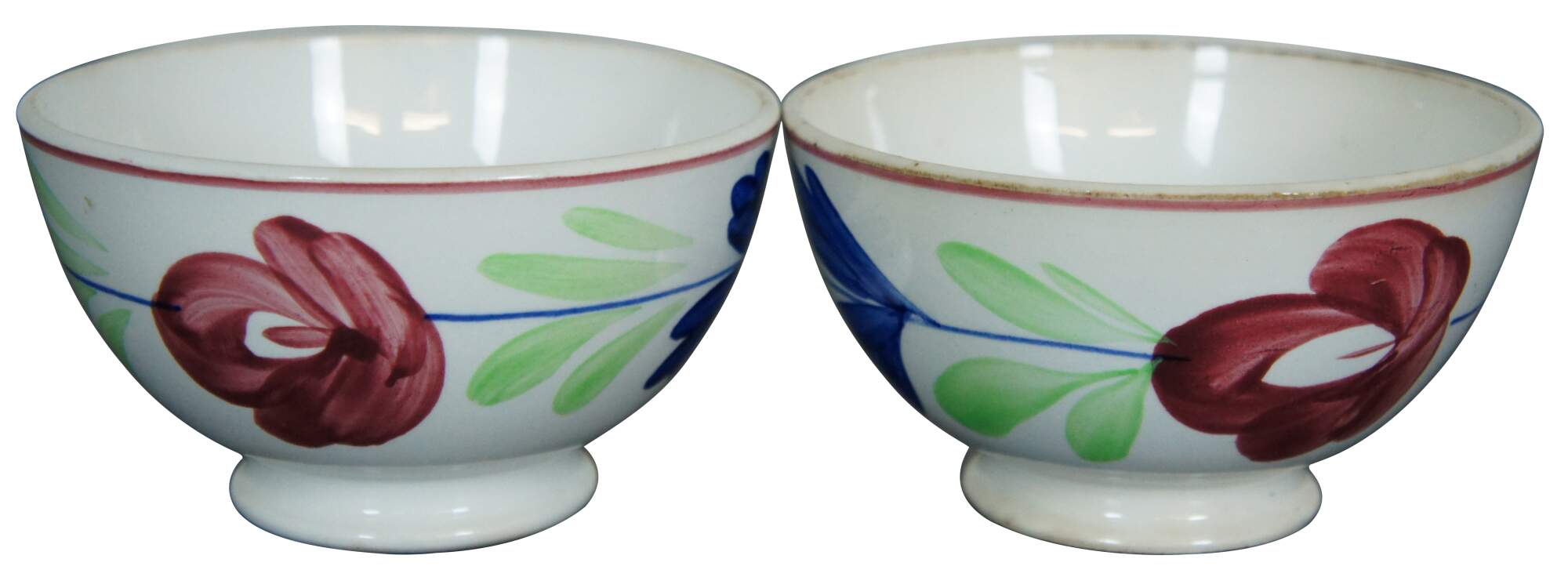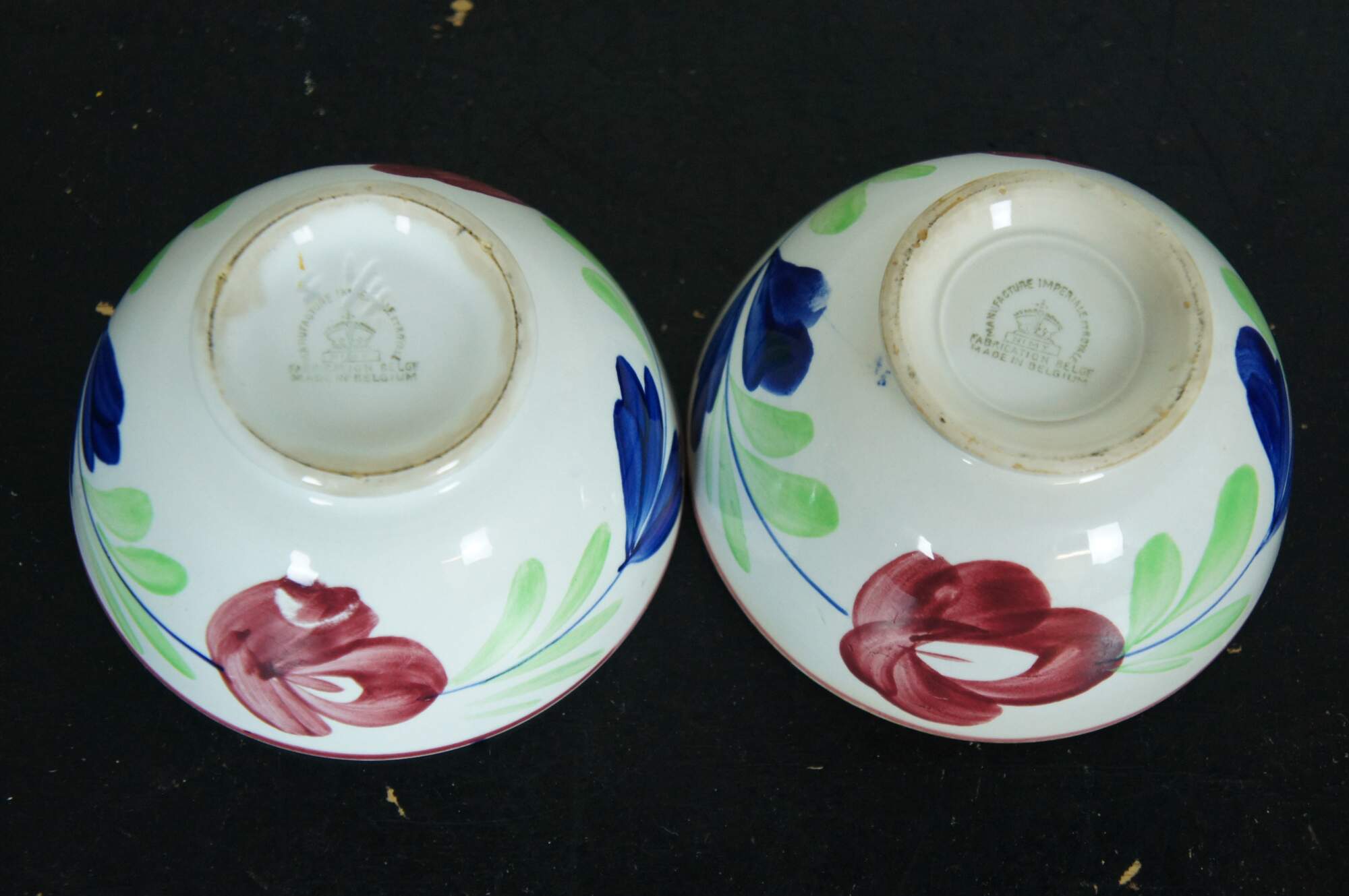 Antique pair of porcelain bowls hand painted with red roses and blue and green leaves, made by Nimy, in Belgium.
