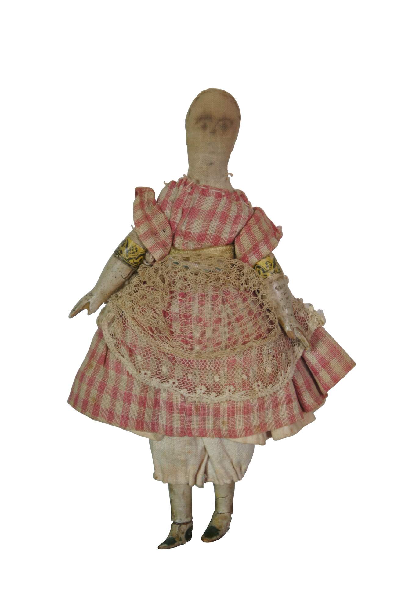 Early to mid 20th century assorted lot of seven dolls including one early American rag doll, Greek folk costume cloth souvenir pair, German / European folk costume composition pair, one chalkware/ceramic Skookum papoose, and one Chinese folk costume bisque.