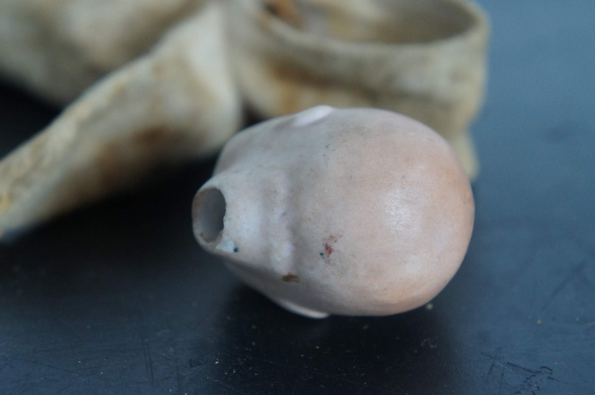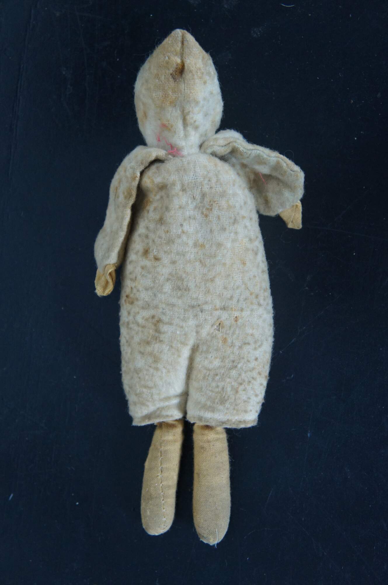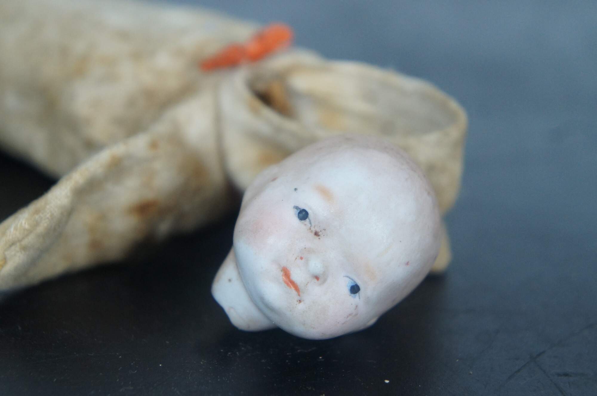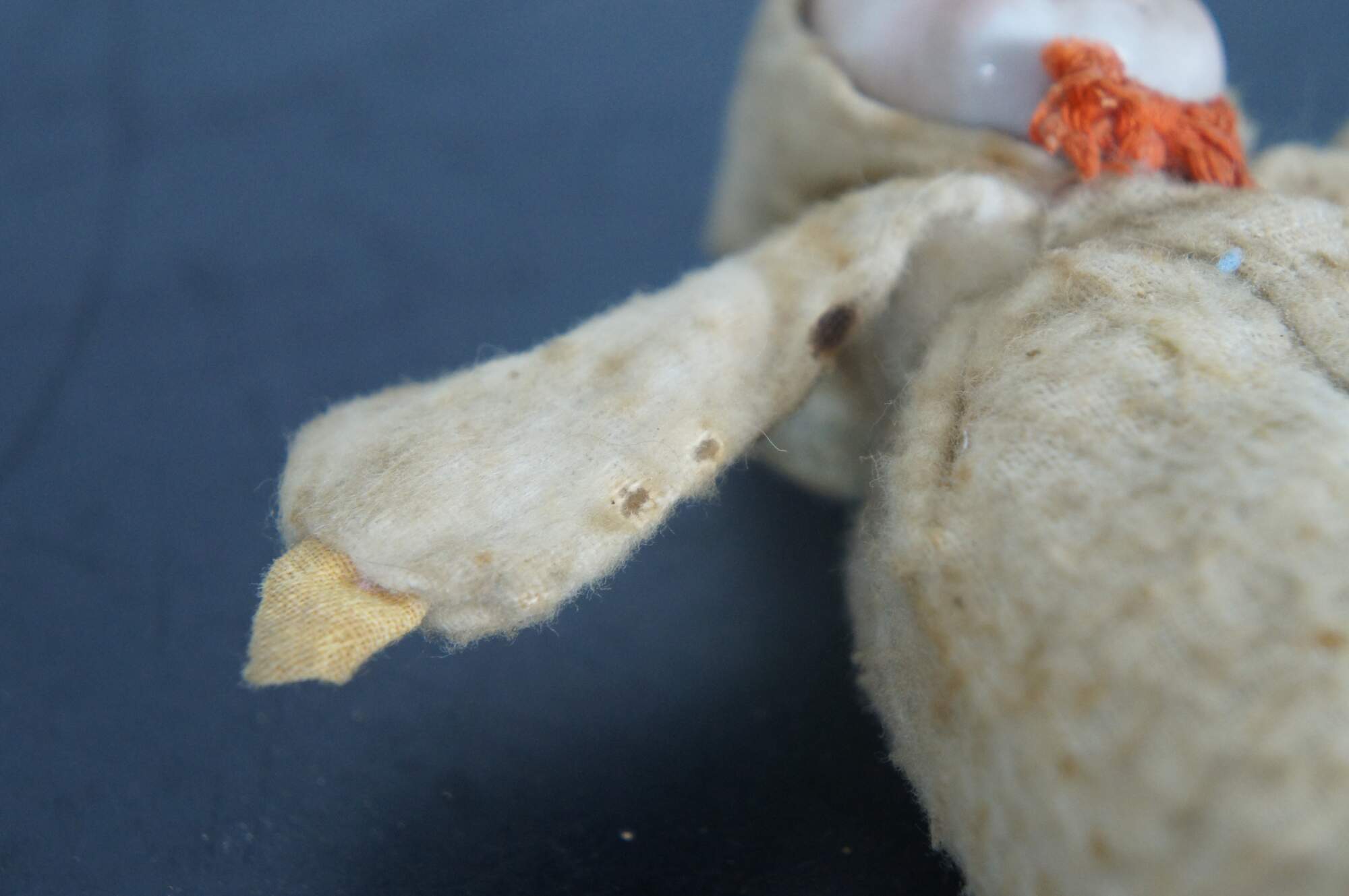 Antique bisqe doll. Features painted features, flannel and linen body stuffed with straw