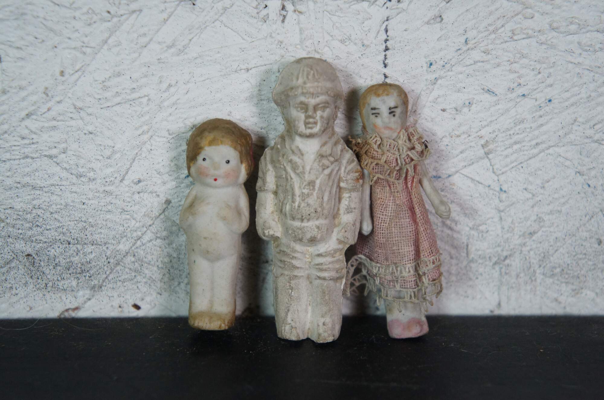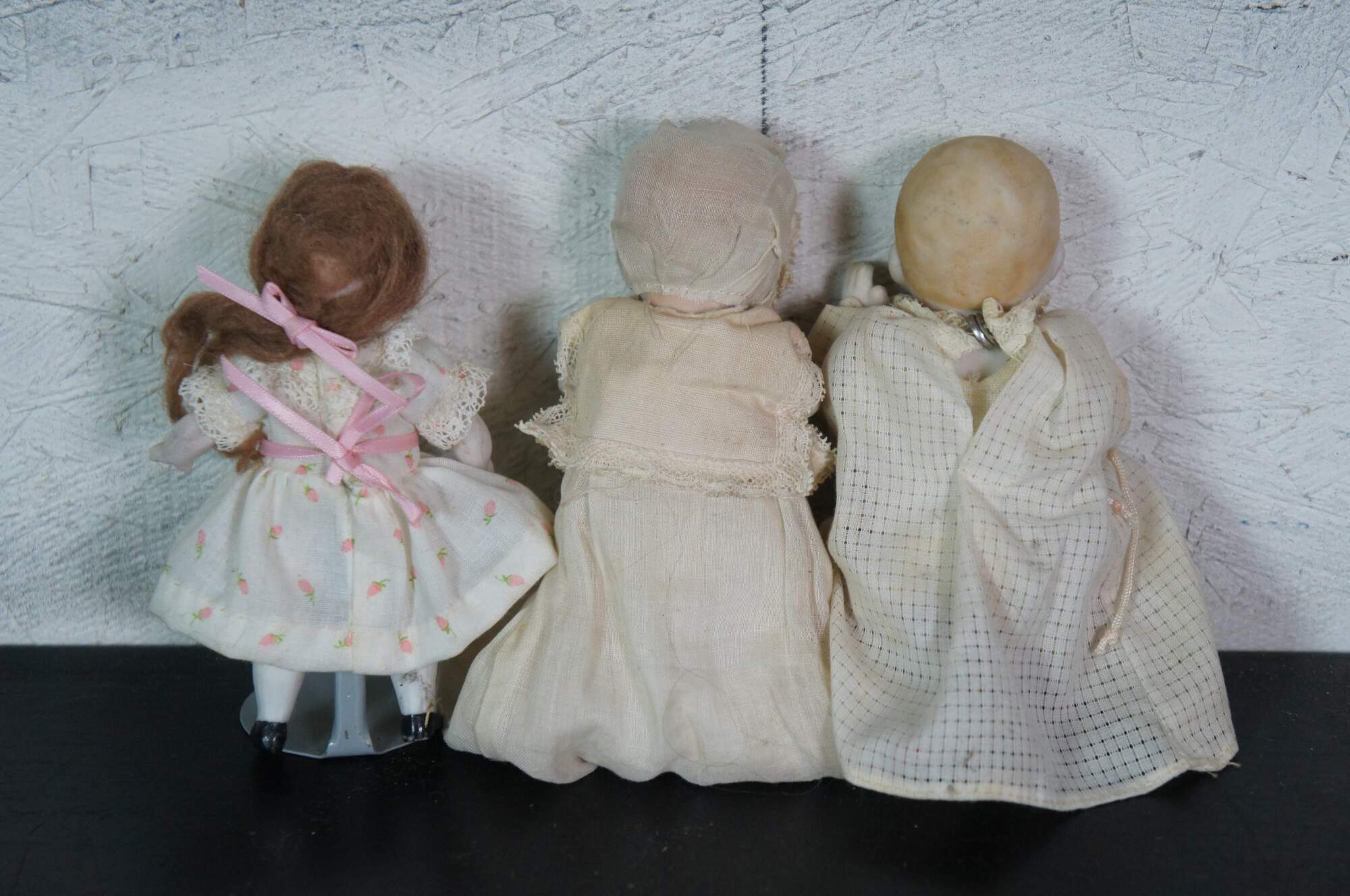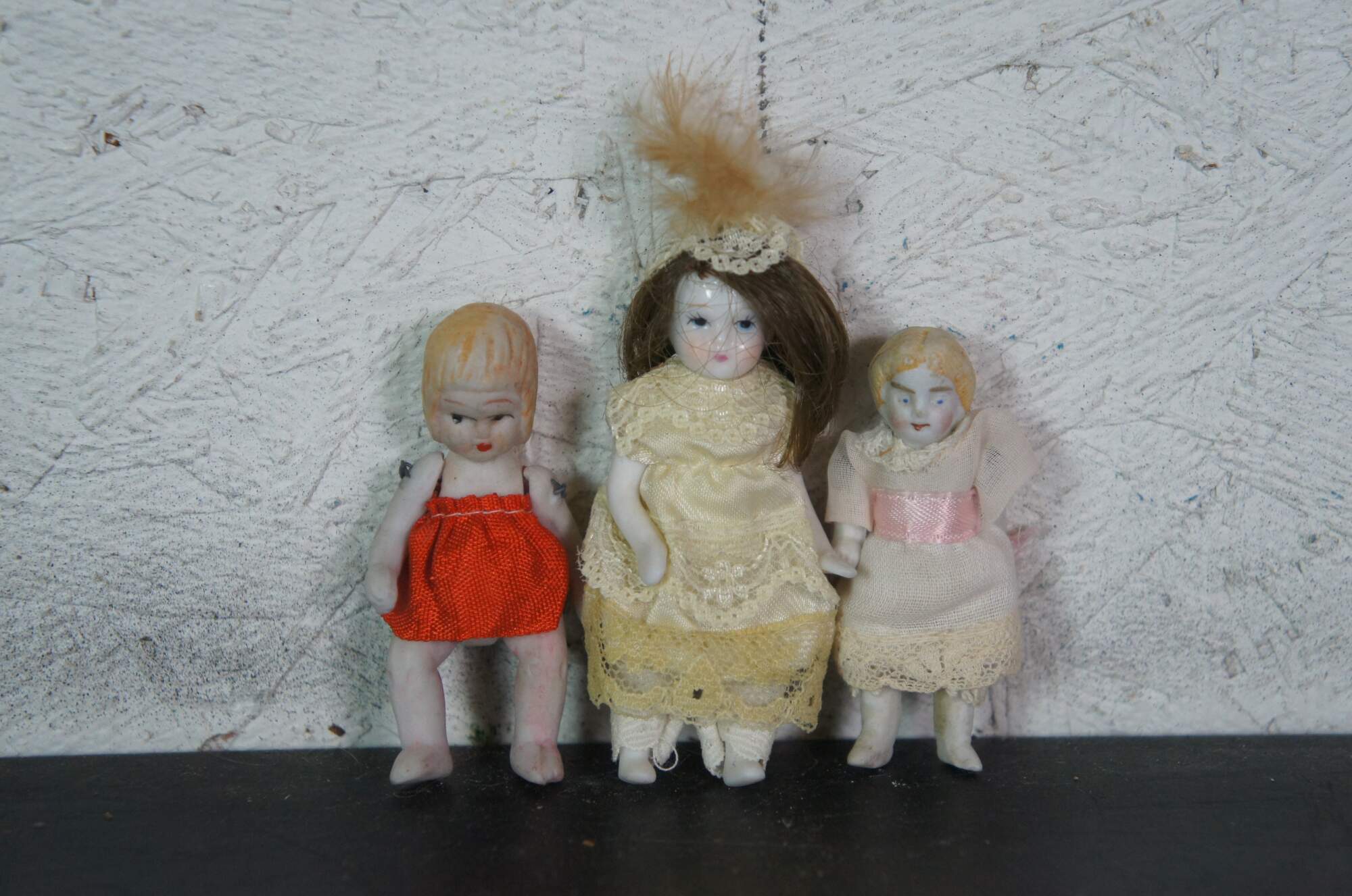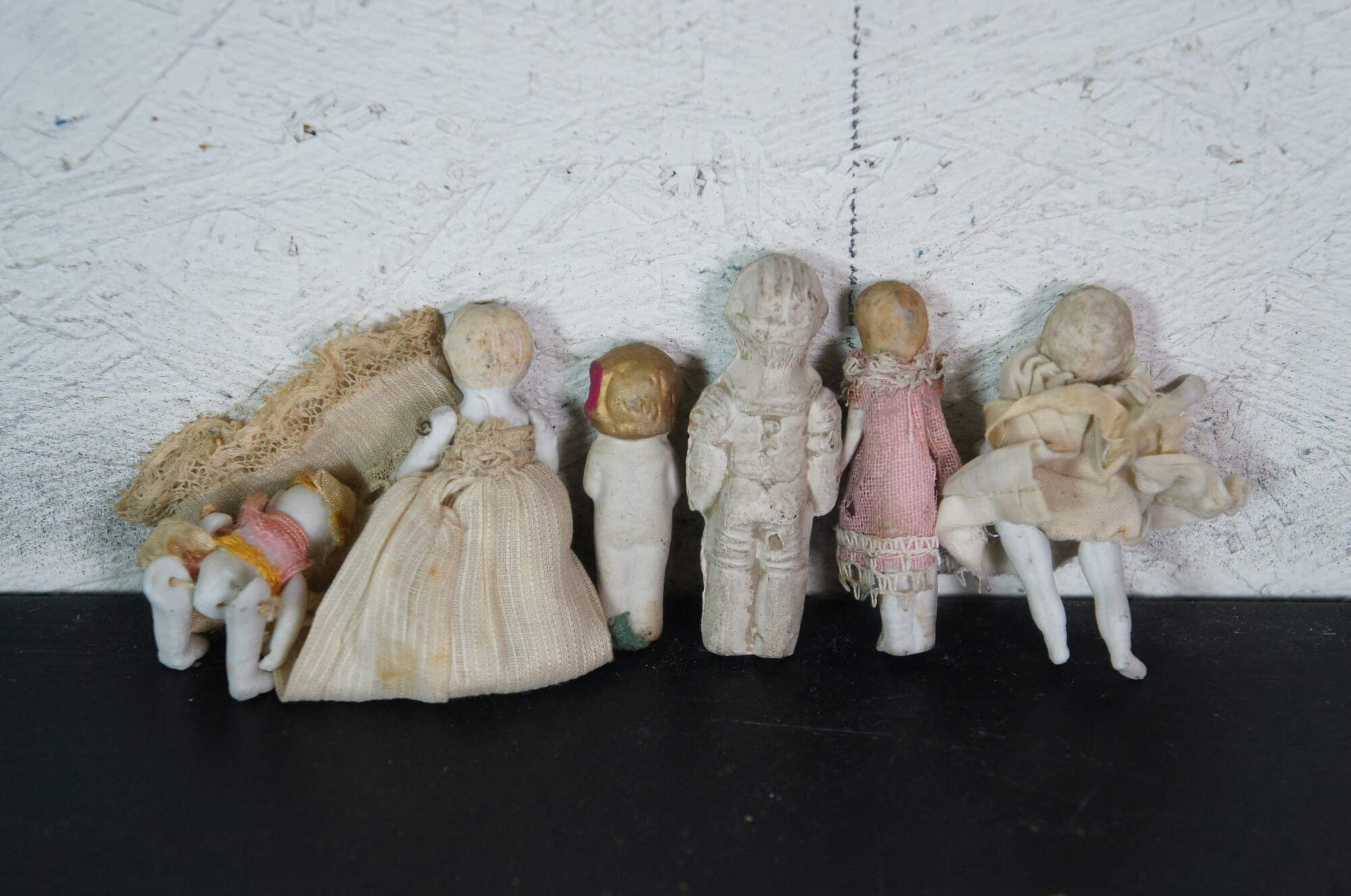 Lot of 19 late 19th to early 20th century bisque and porcelain miniature china dolls. Some with fully painted features; some with hair; jointed limbs; majority include clothing. Germany, Japan and unmarked.