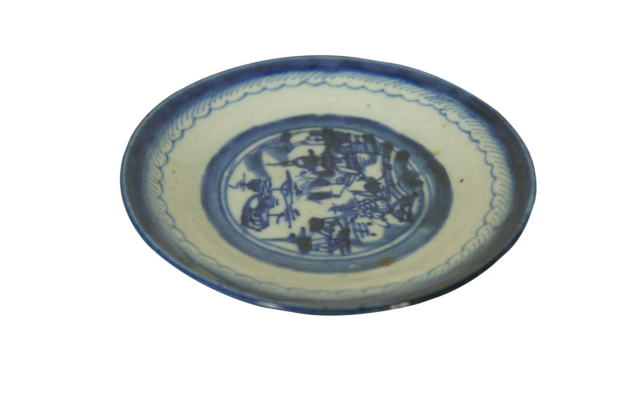 Charming hand painted cantonware blue and white porcelain plate from last half of the 19th century.
