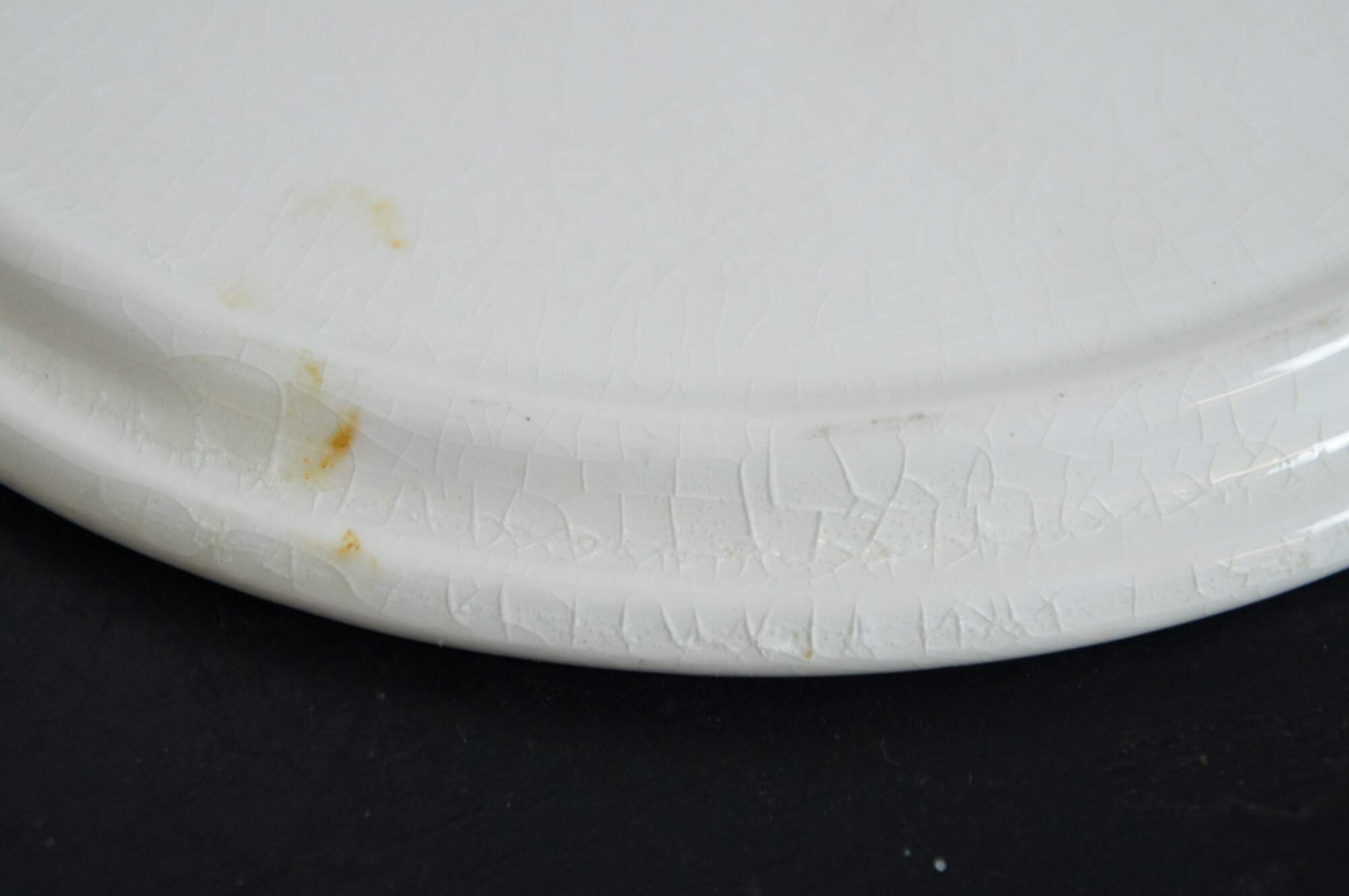 Antique early 20th century porcelain child’s divided dinner plate featuring a variety of transferware scenes of children – driving a little hot rod car, in a motorcycle and sidecar, and wheeling a baby carriage with balloon – made by Thompson.