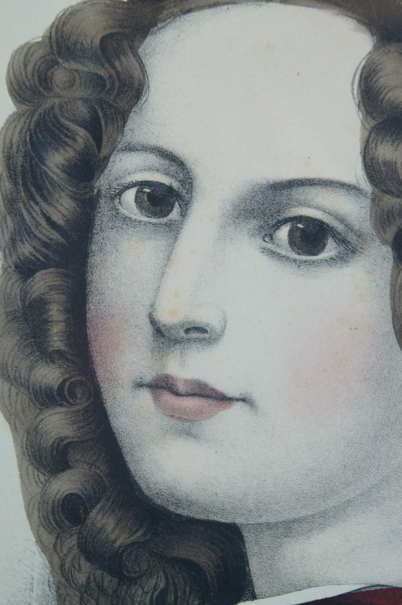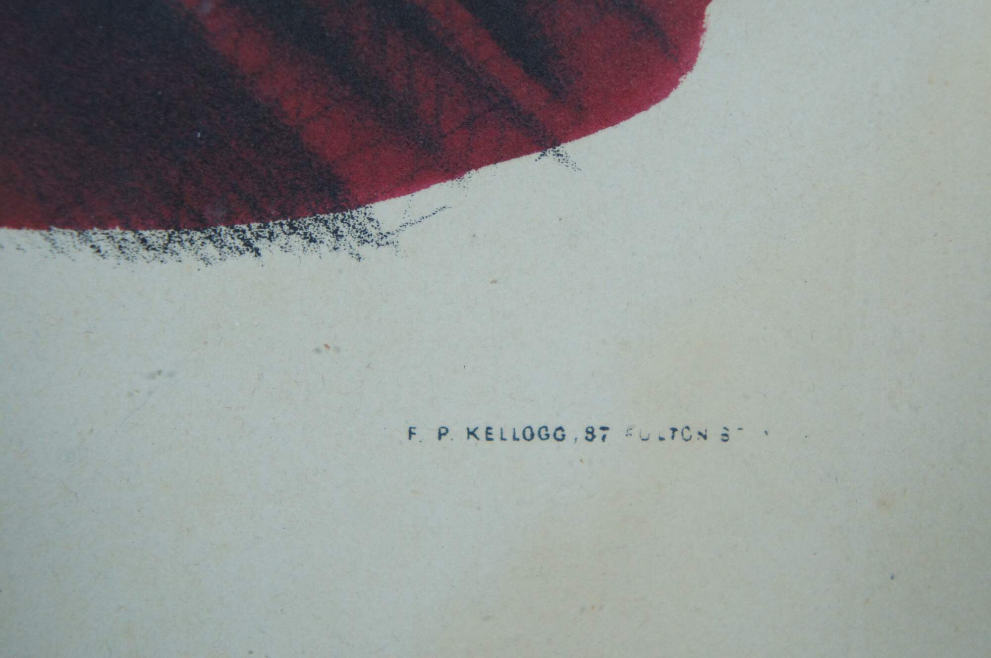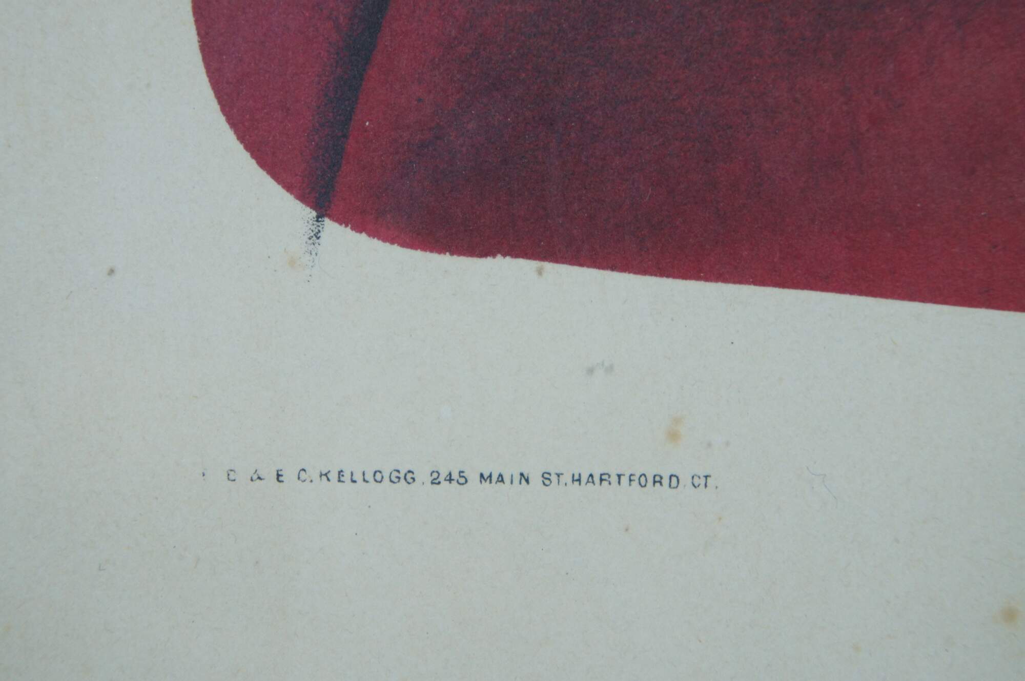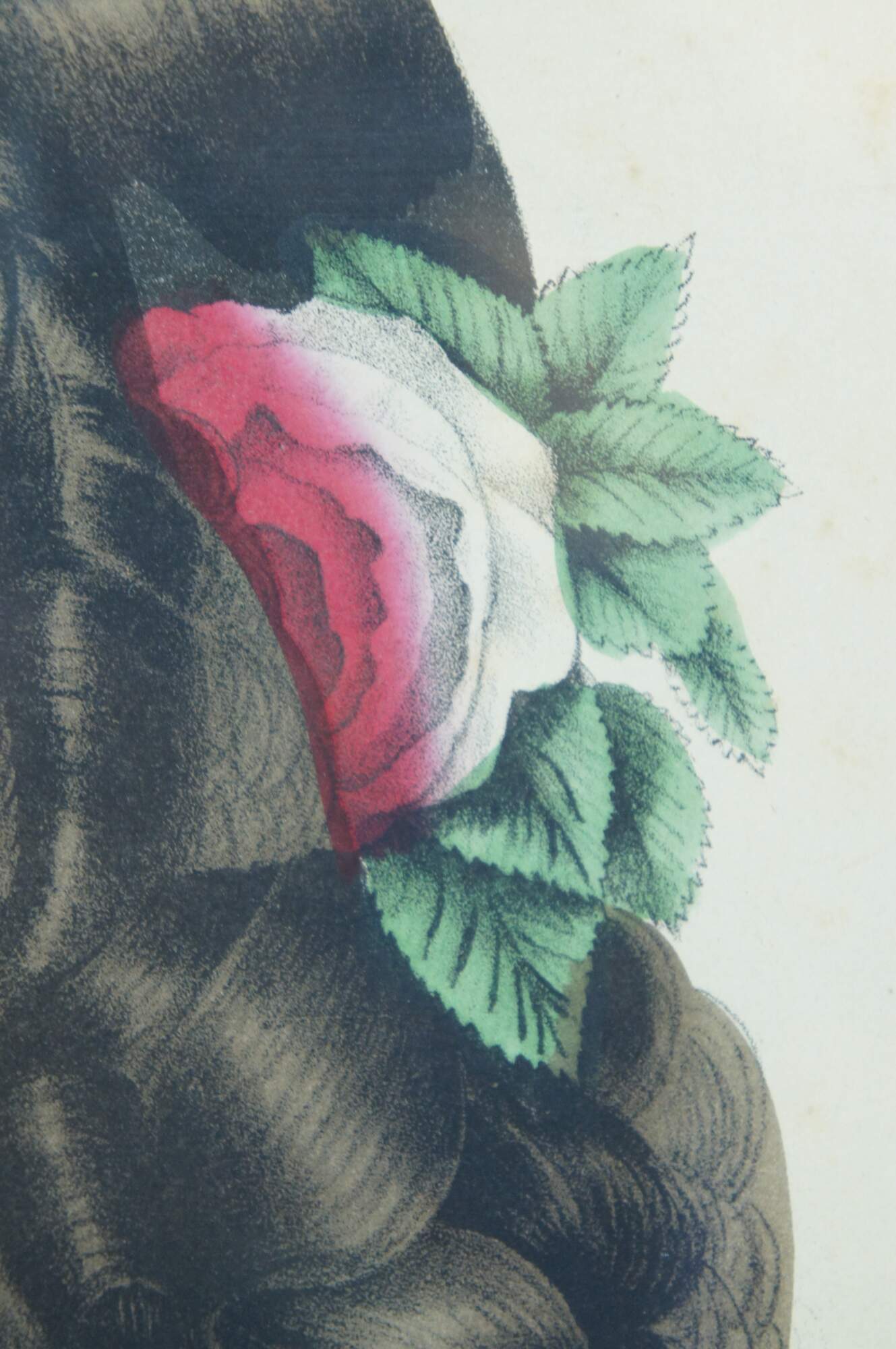 Antique 19th century hand colored lithograph print by E.B.E.C. Kellogg and F.P. Kellogg, titled “Mary,” showing a young woman wearing a red dress and a red and white rose in her brown hair. “The Kellogg brothers were Hartford's most important 19th-century print-publishing firm. Between about 1830 and 1880, they produced thousands of brightly colored popular prints for use in homes and businesses throughout the United States.