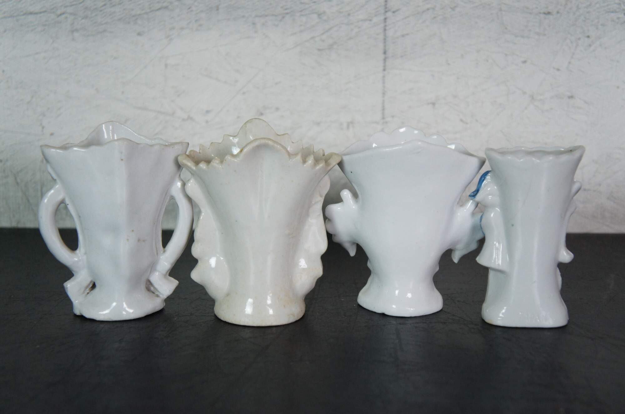 Lot of 15 late 19th to early 20th century white porcelain flower / bud vases in a variety of shapes and sizes. Hand decorated with gilt details and floral motifs.