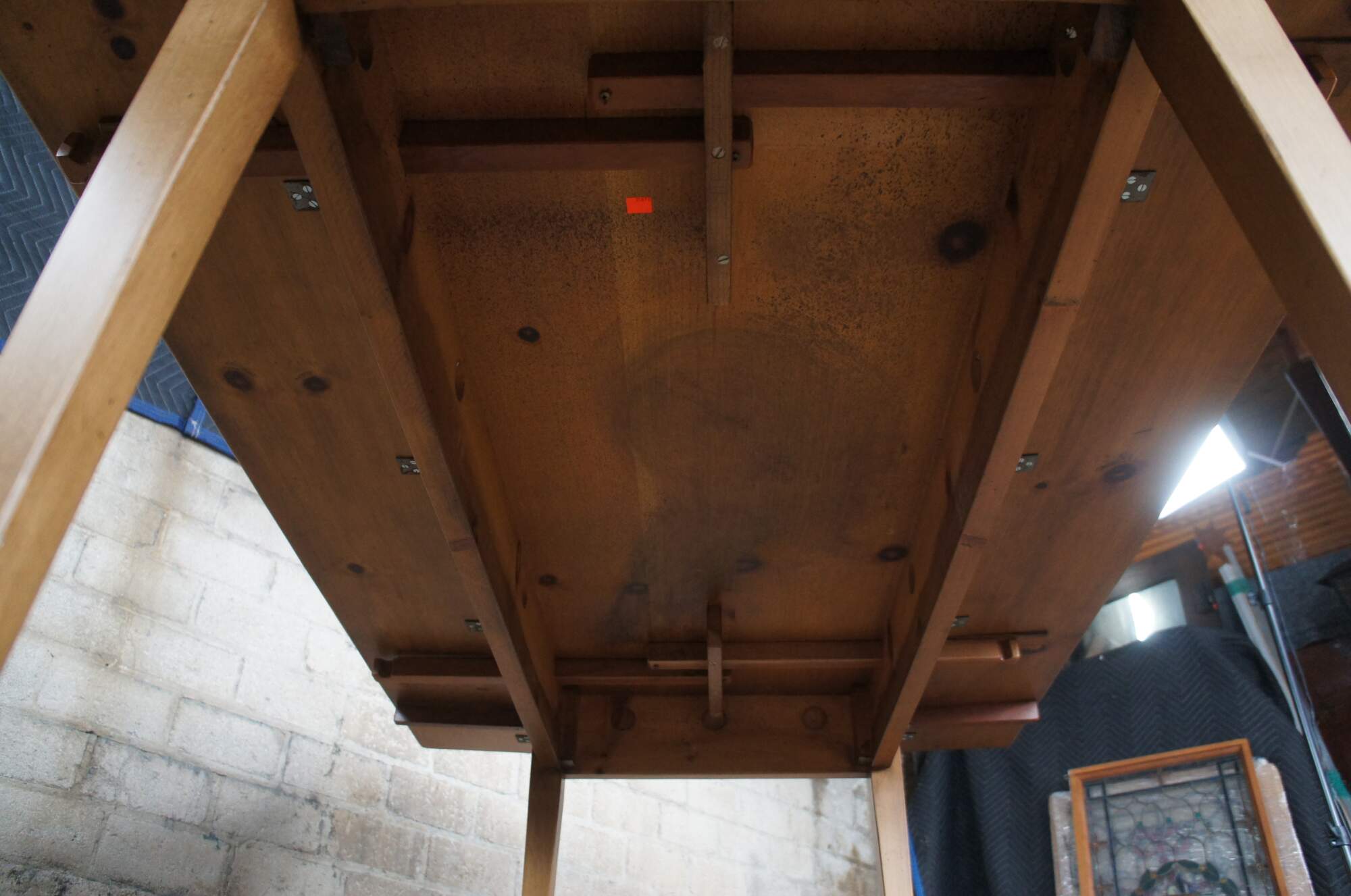 Circa 1970s early american style harvest table.. Handmade by Jay Albers of the Early American Shop in Kettering Ohio. Jay was born in Cincinnati and moved to Dayton in the 1960s to open the Early American Shop. His primitive American styling was very popular regionally and built along the same quality and standards of David T Smith.