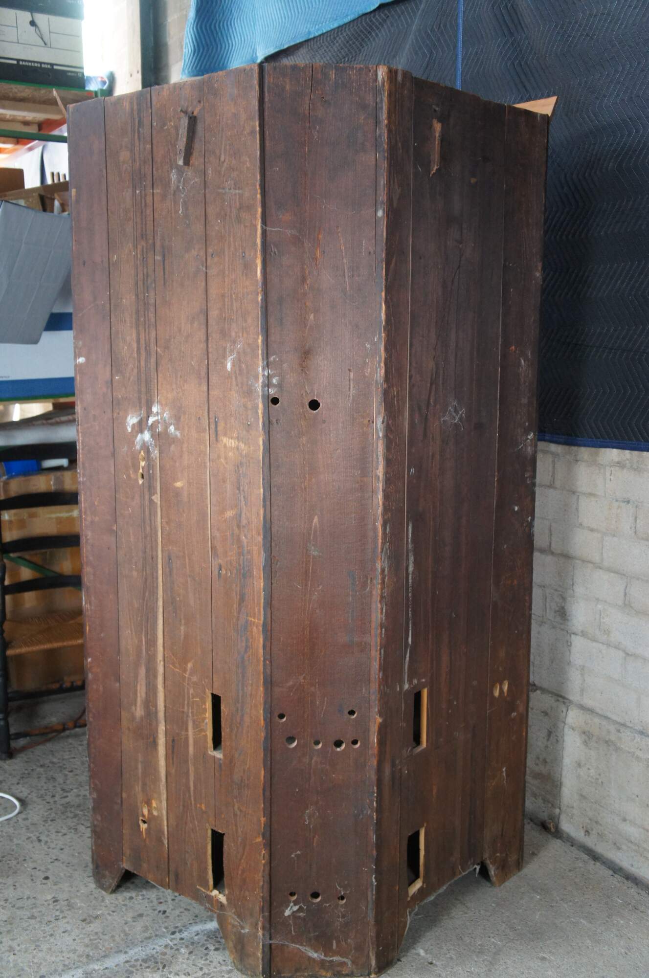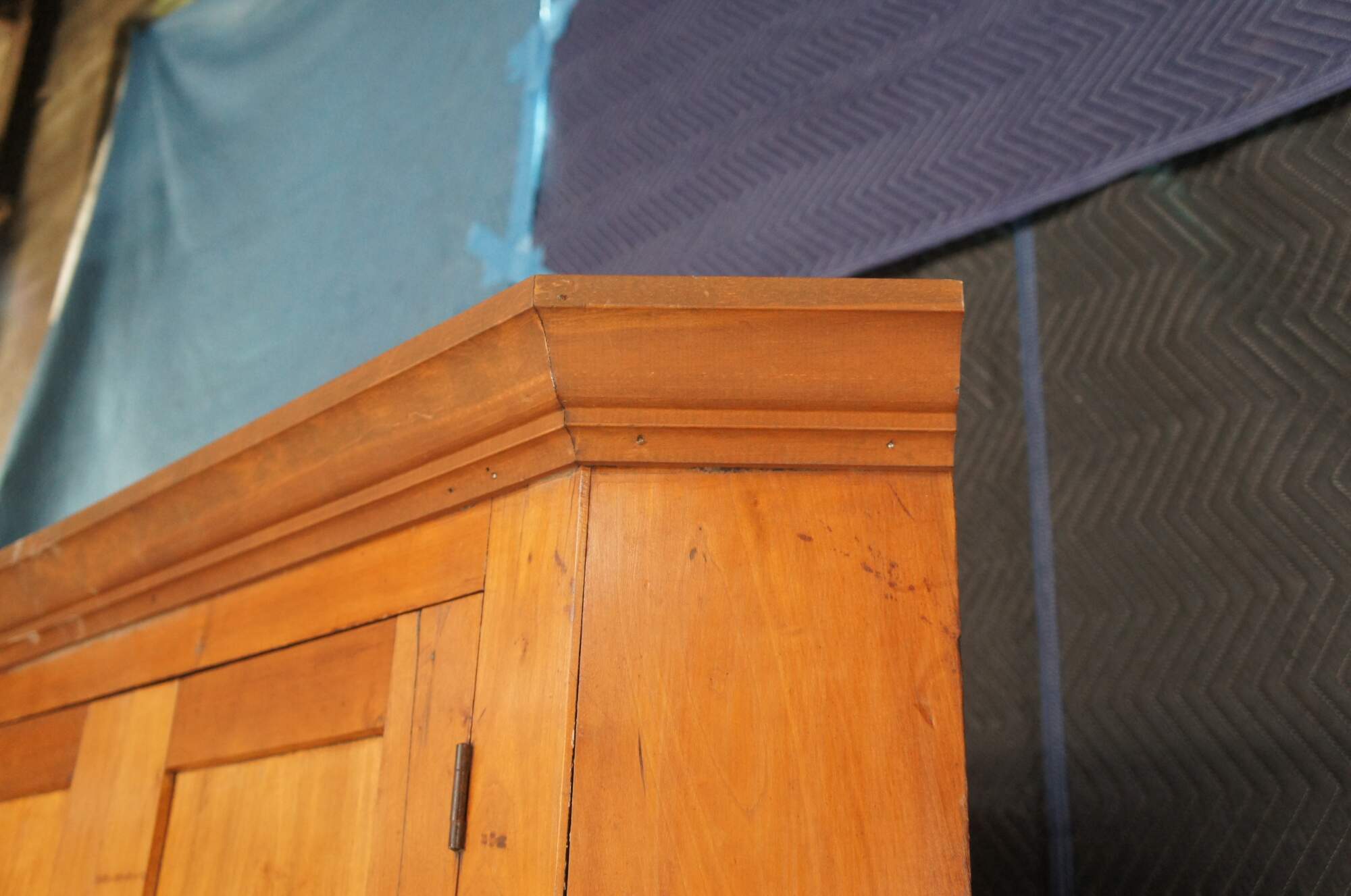 Good Antique Condition; distressing and wear commensurate with age. Brackets added to interior of right door from past repairs. The cabinet was has holes in the backing from where electronics were stored as well as a cutout in the lower shelf of the upper section from an old cathode ray televishion. Shelf can be replaced for an additional cost.