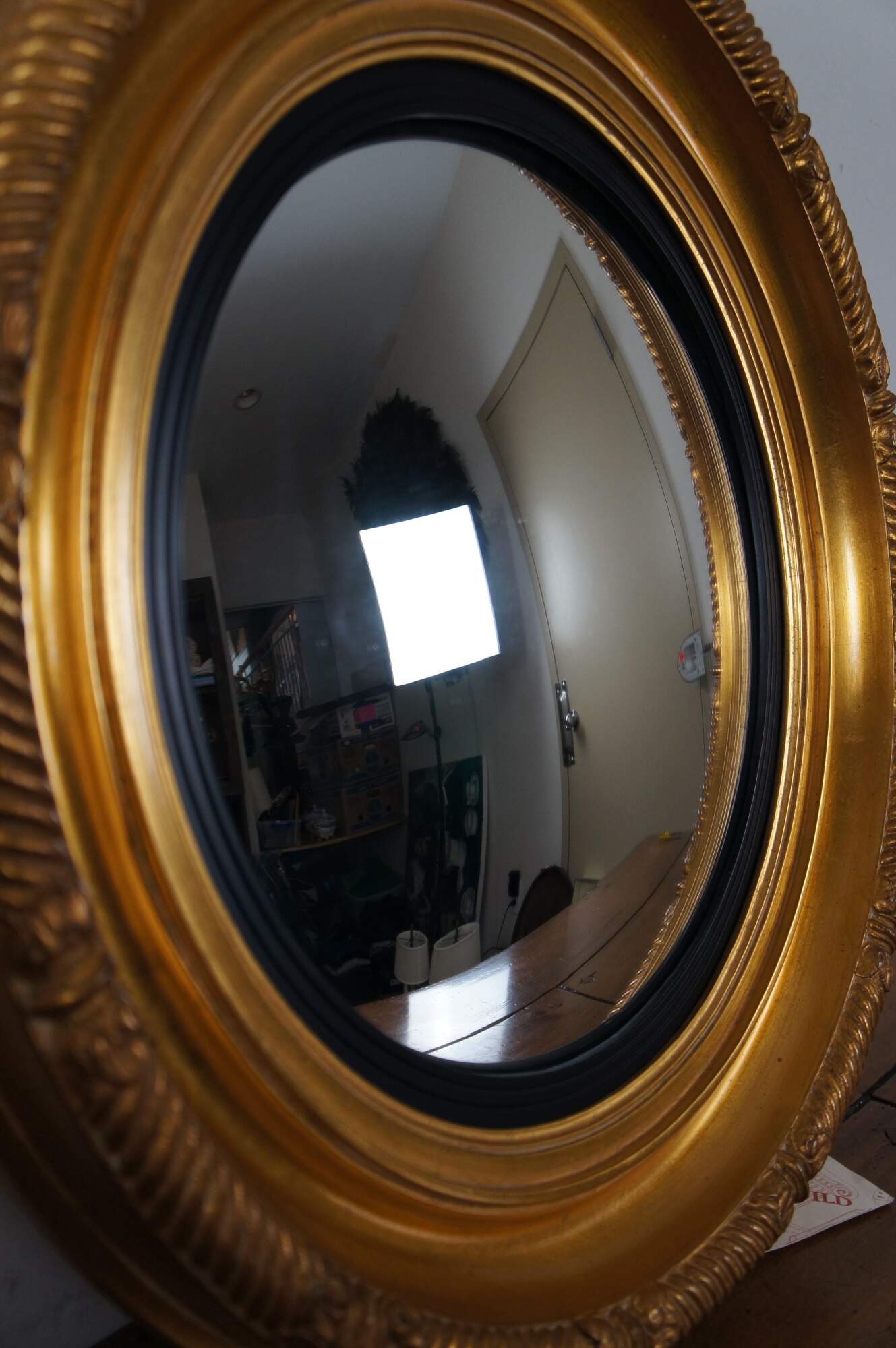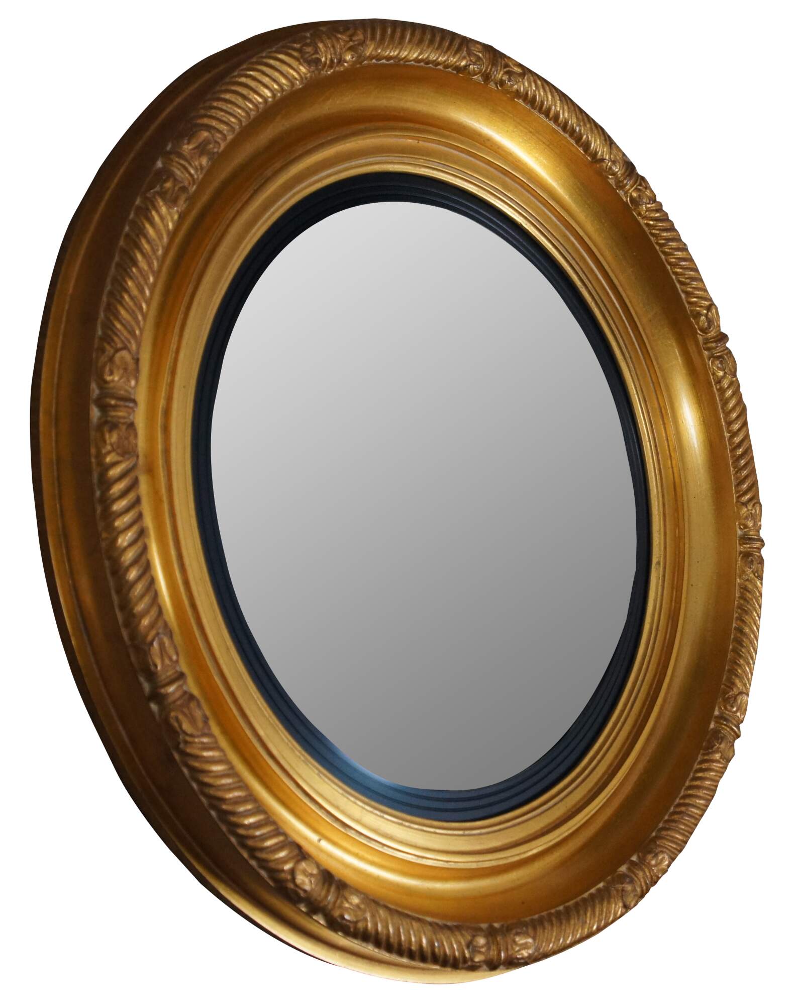 Vintage Regency style Carvers’ Guild of West Groton, MA – Martime Nautical Rondel round convex wall / hall / vanity mirror #5931, finished in antique gold leaf.
