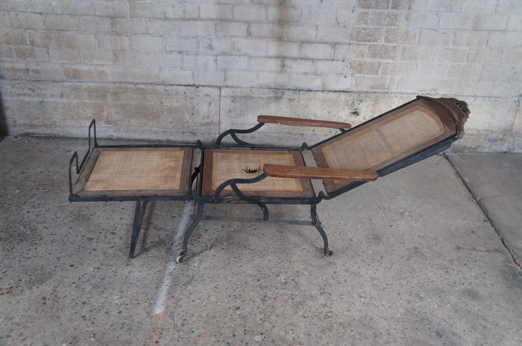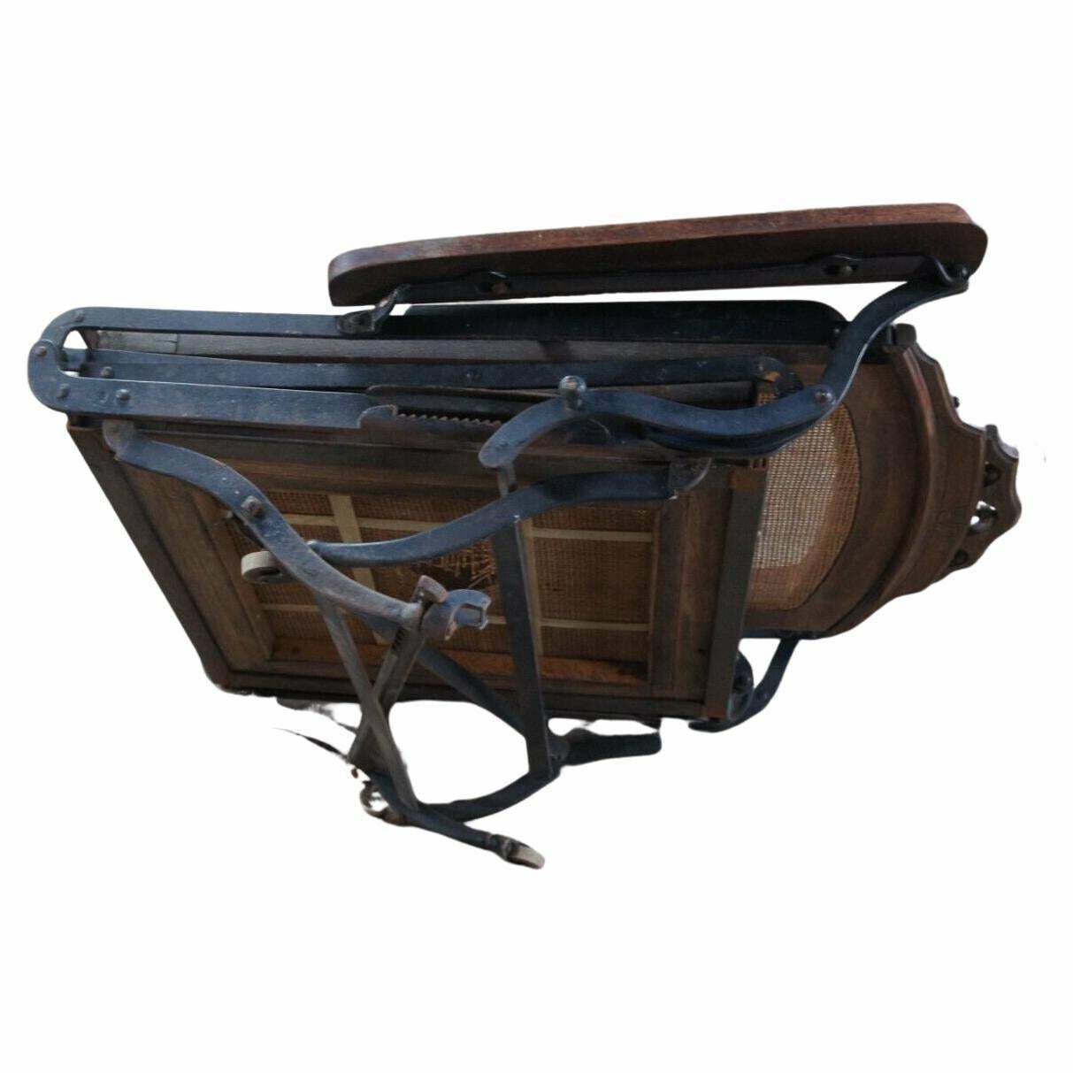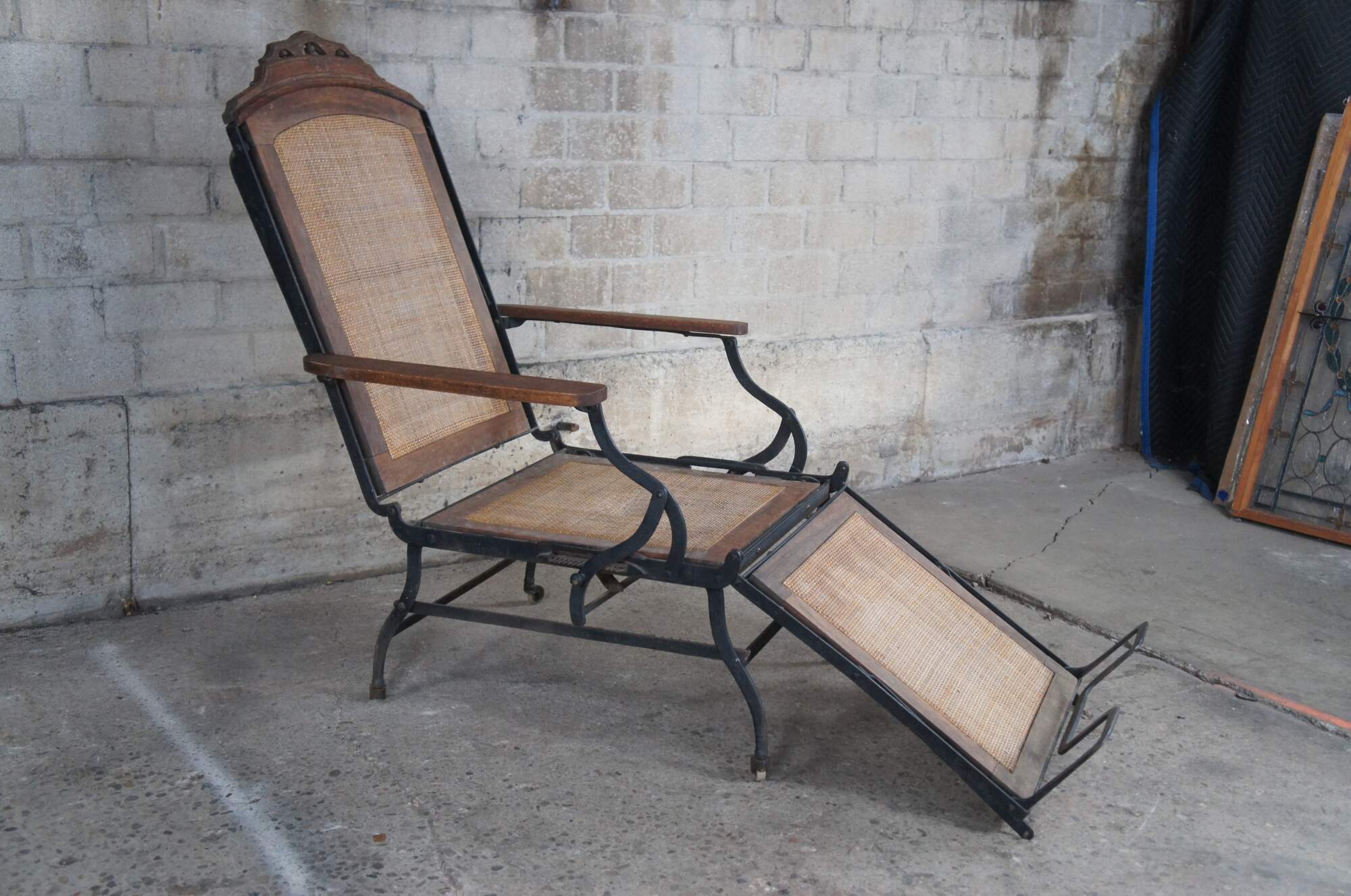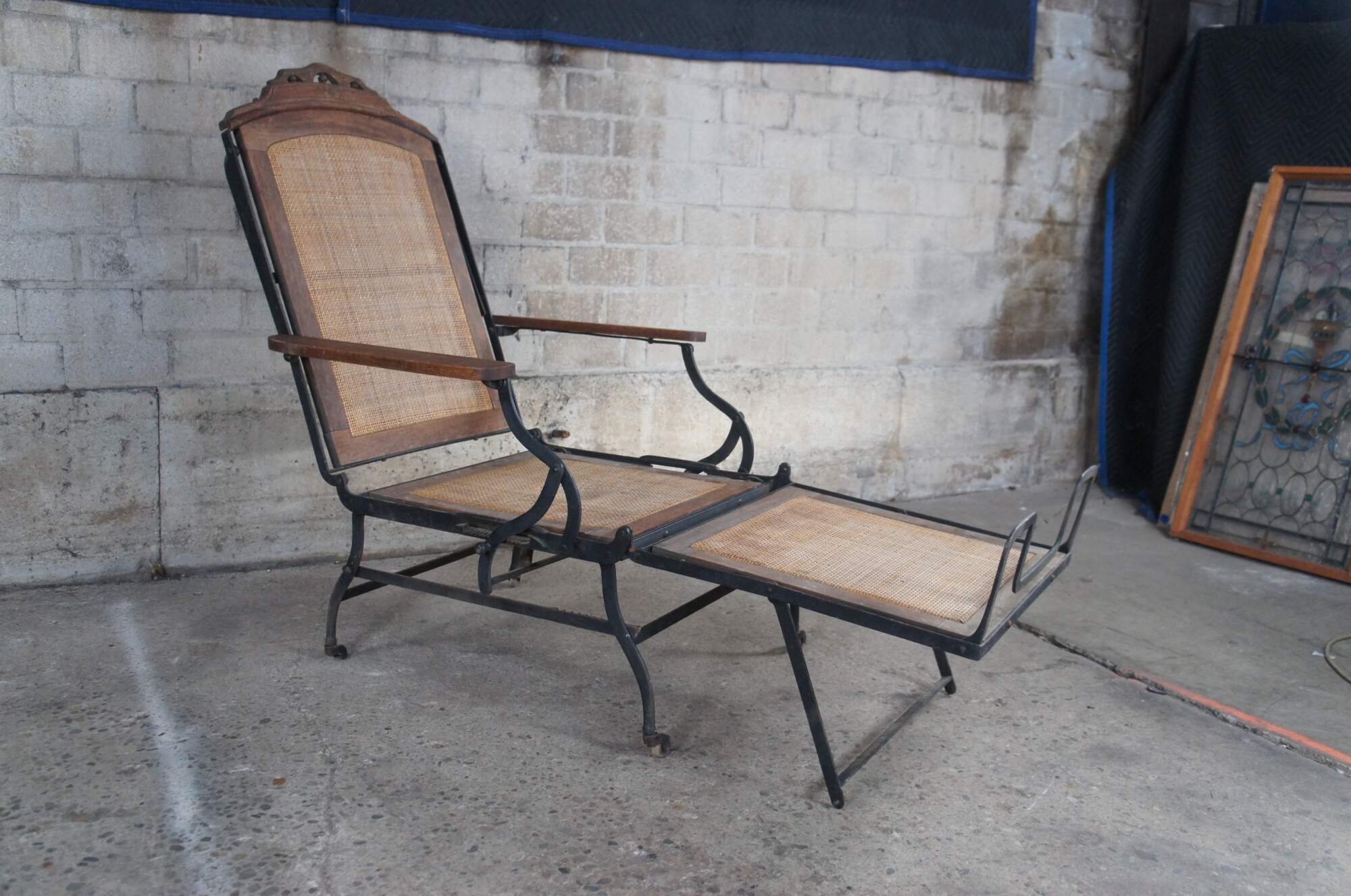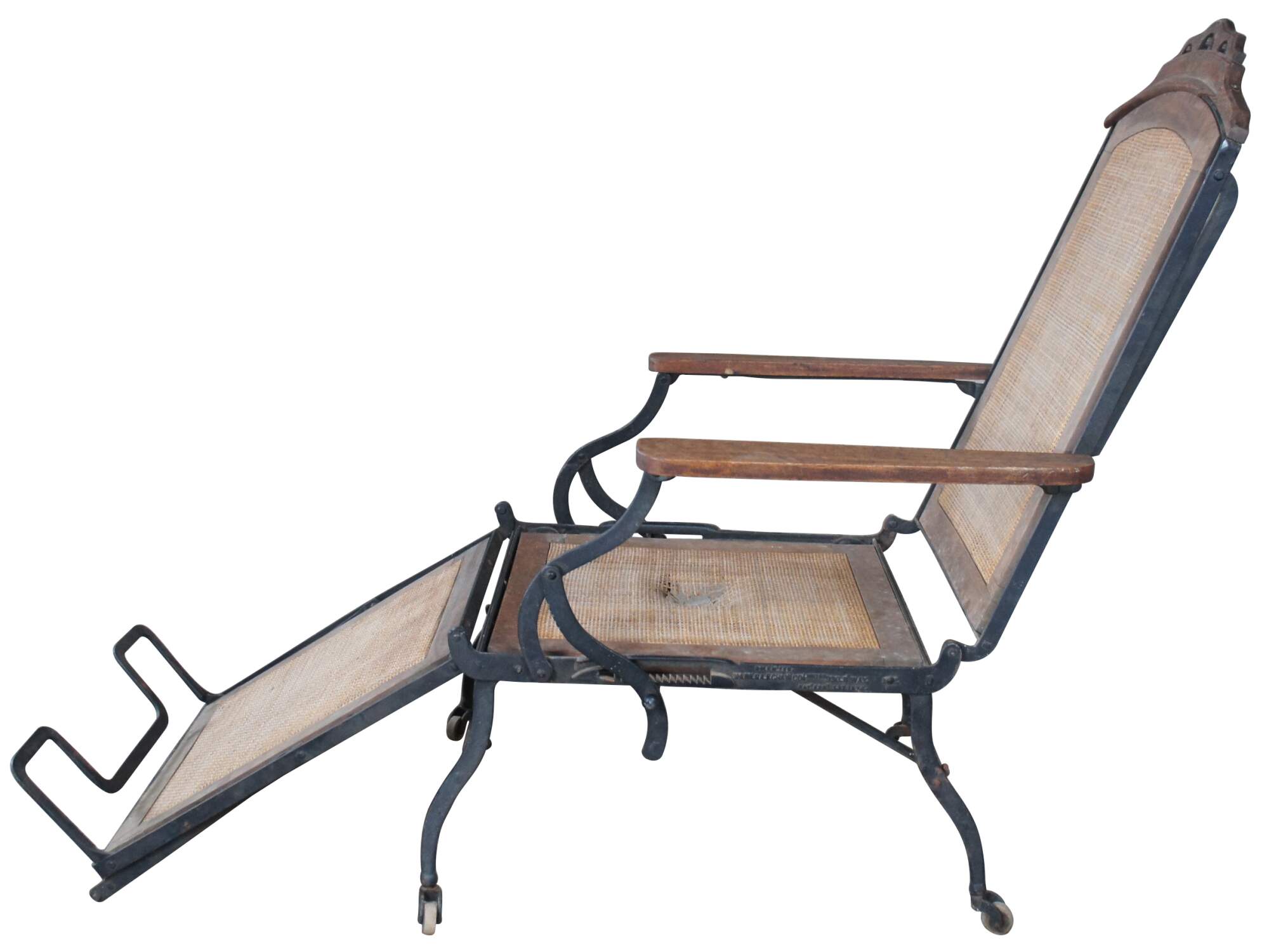Marks Adjustable Folding Chair Company, campaign folding arm or lounge chair, circa 1877-97. Made in Newyork from walnut and iron.