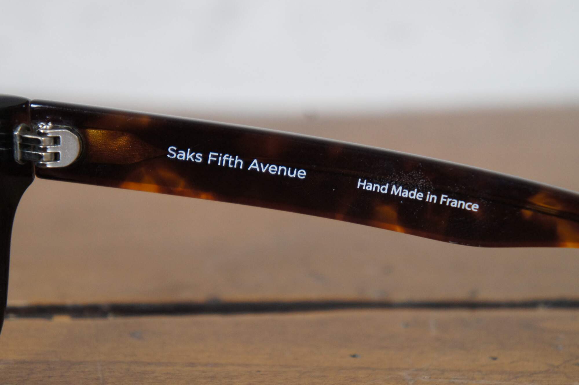Vuarnet & Saks Fifth Avenue tortoiseshell sunglasses, drawstring dust cover, and leather case; made in France.