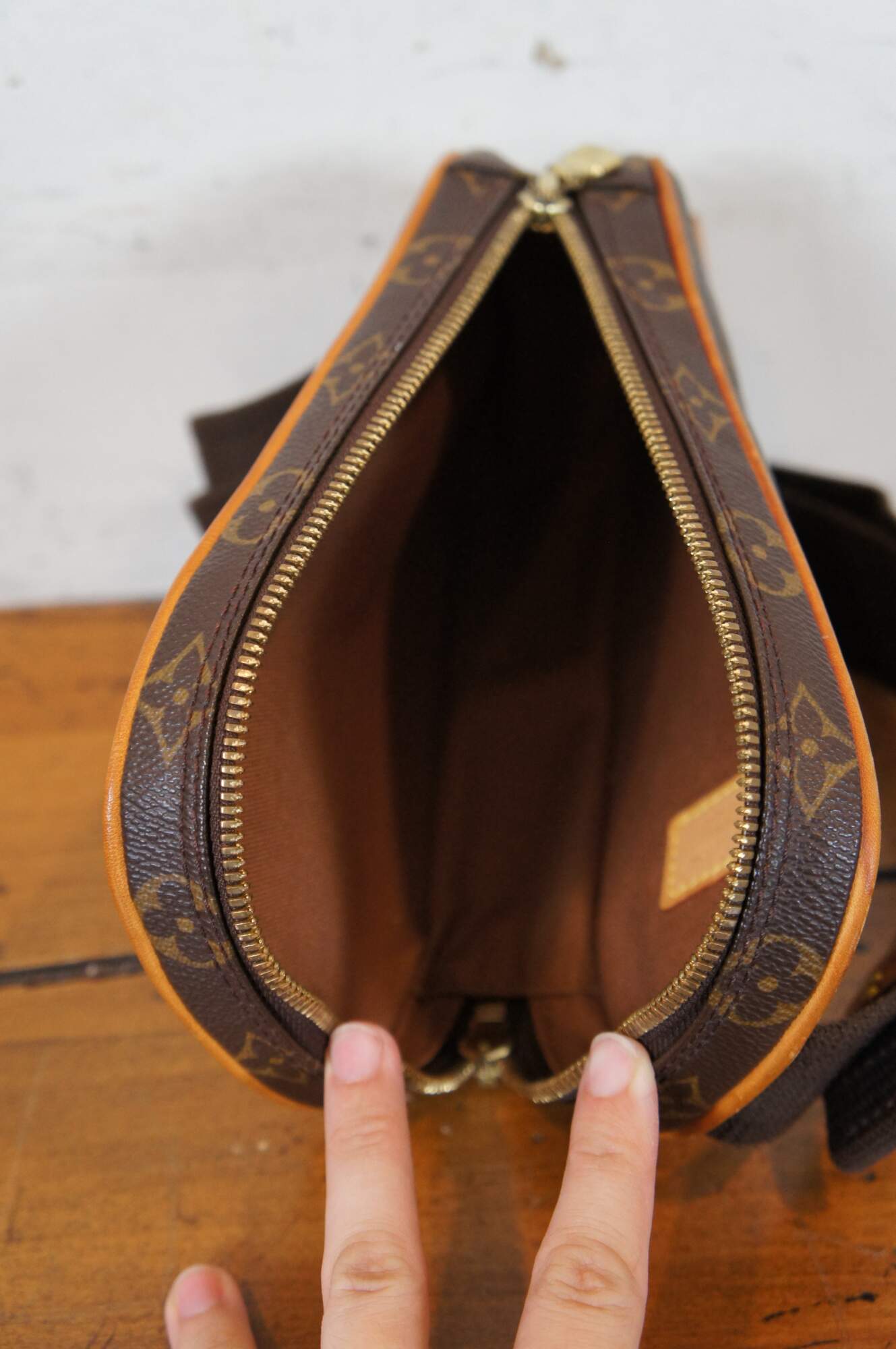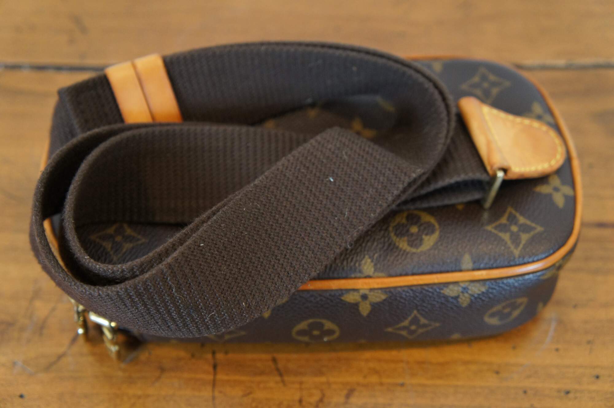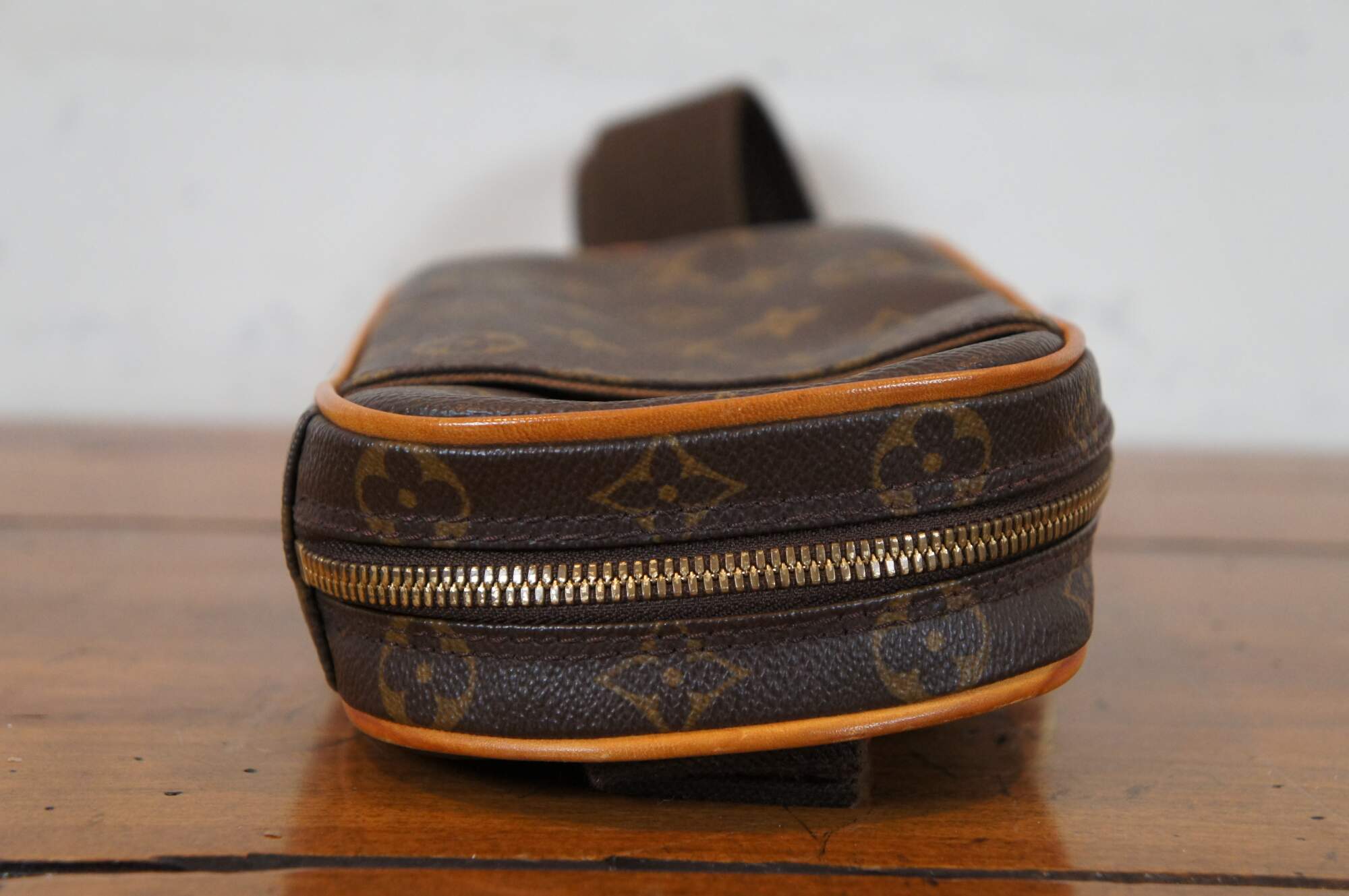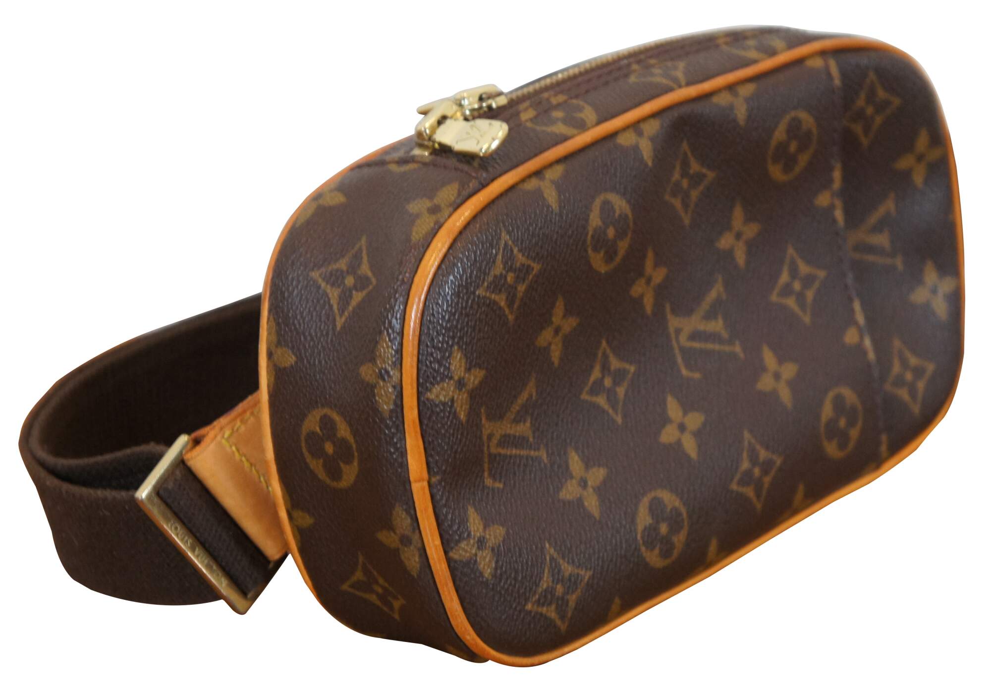 Louis Vuitton Paris Pochette Gange brown monogram crossbody or bum bag, featuring one main zippered compartment, single exterior slip pocket, and adjustable strap.
