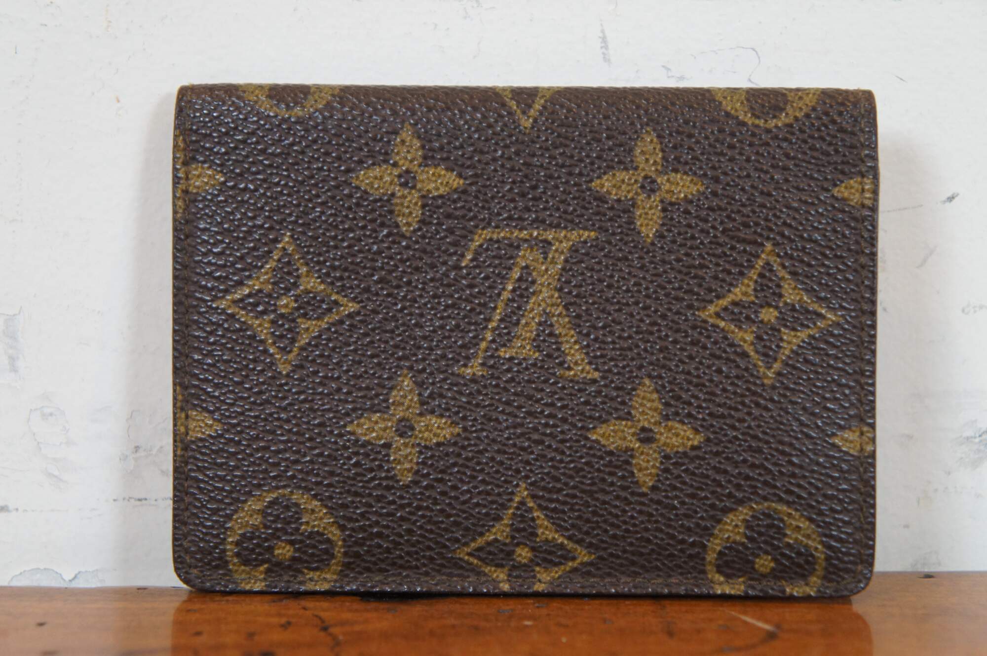 Louis Vuitton Paris brown monogram (Porte 2 Cartes) bi-fold ID holder with two clear plastic card slots. Serial No. - MI883, Made in France, March of 1988