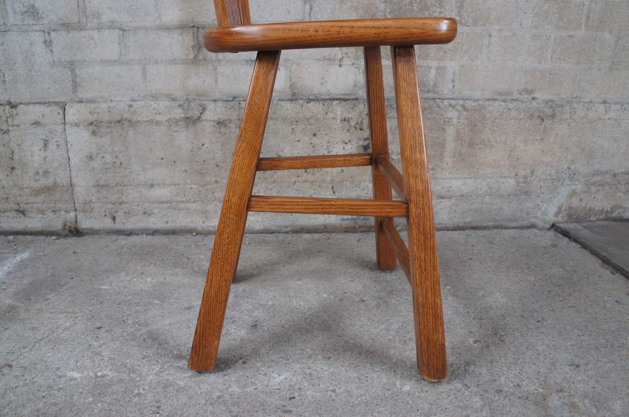 Four vintage Romweber Viking Oak barstools. Made of oak featuring tapered form with horsehead accents and pierced back.