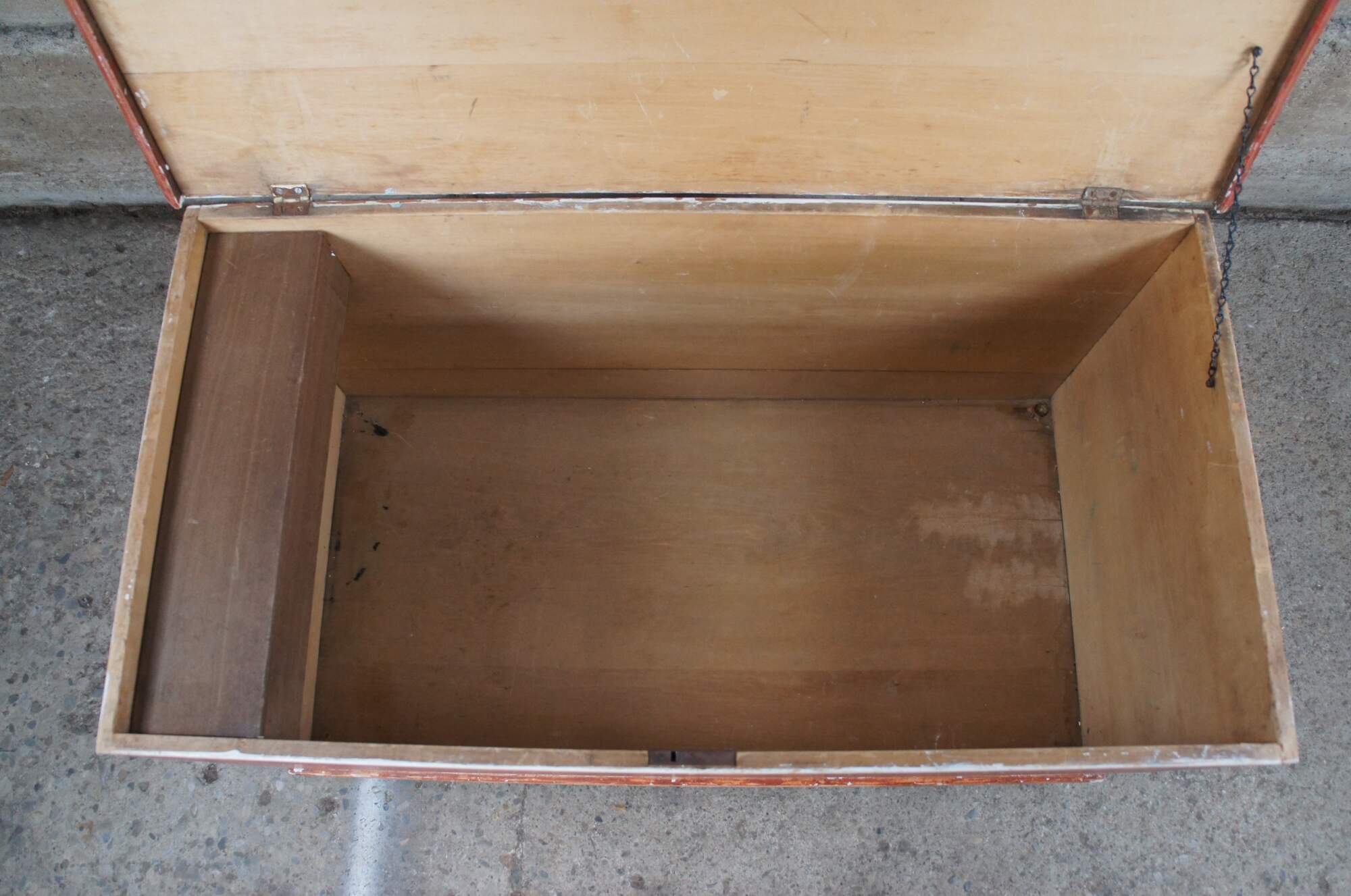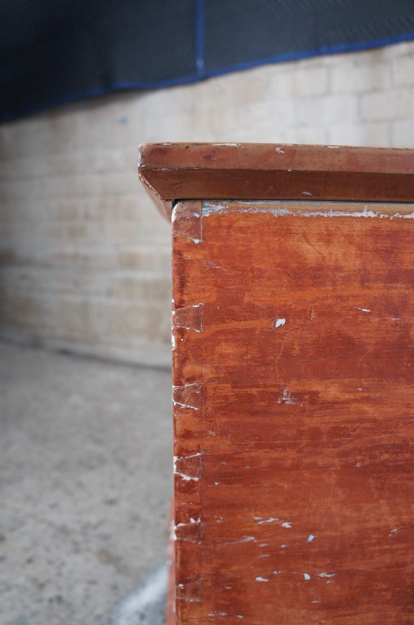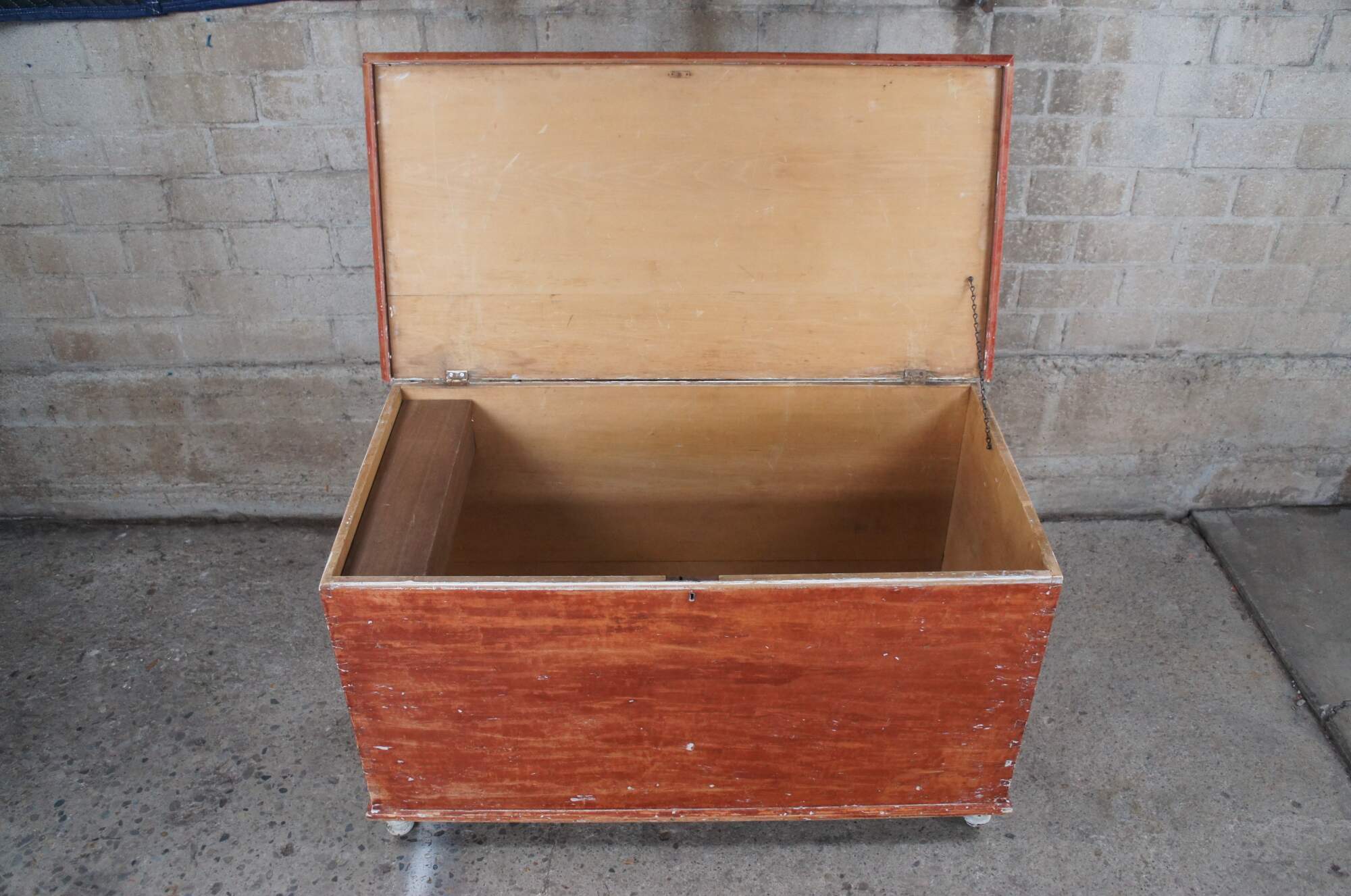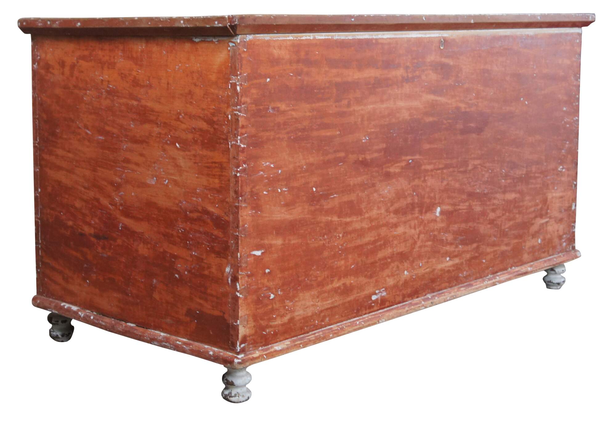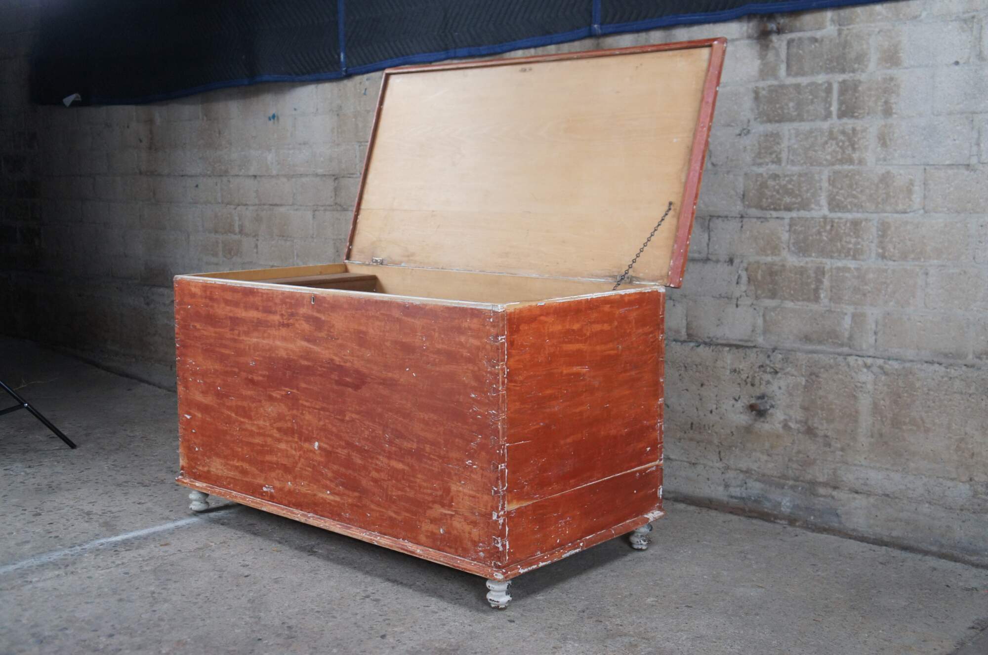 Late 19th century primitive pine farmhouse blanket / hope chest or storage trunk. Made of pine featuring rectangular form painted exterior, hand dovetailing and one interior compartment.
