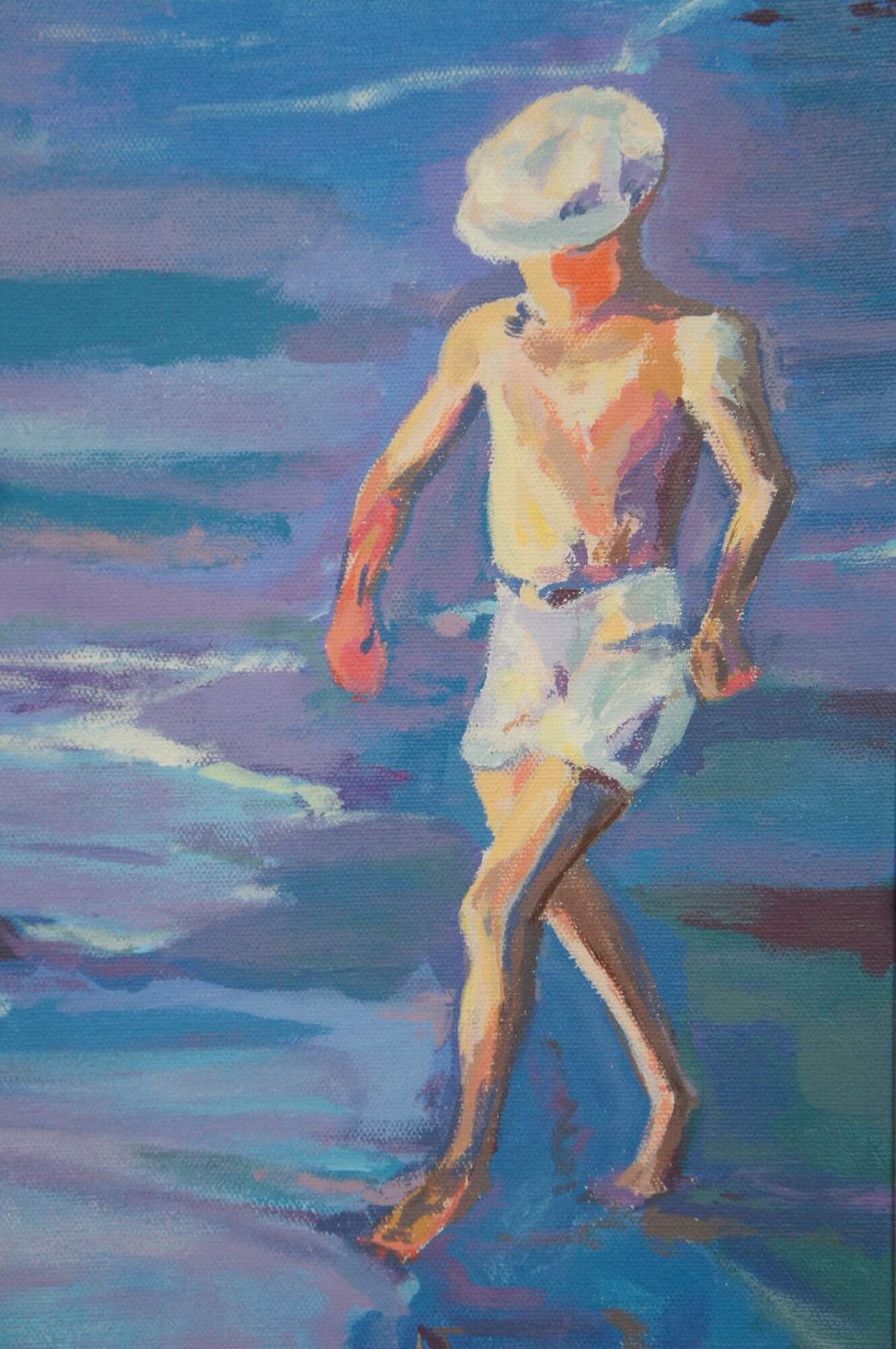 In his development as an artist, Hatfield had the added influence of modern cinematic interpretation. Affected by the new mastery of color on film, in advertising and television, he felt a need for a more intoxicating light, another dimension to the beach attraction. Seeking a truth in the paint itself, he documented that fleeting essence of the tender, the humorous, the enchantment of a special moment in time.
