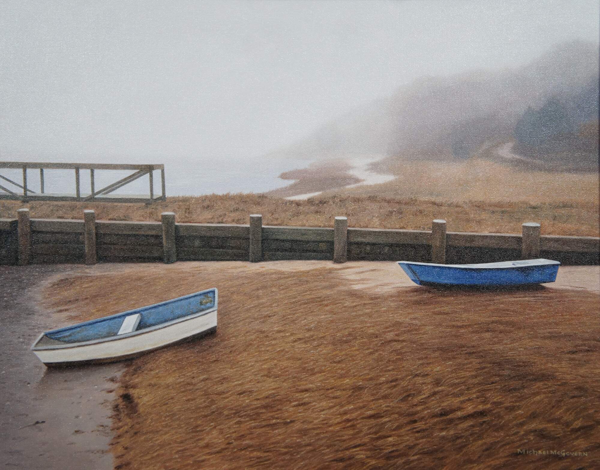 Though Michael's style is often described as photo-realistic, its minute detail never compromises the overall mood or ""gestalt"" of the work. A master of realistic illusion, Michael displays his technical virtuosity in all of his chosen subjects. Whether it is a deserted beach at sunrise, a solemn sunset over an expanse of marshland or a winter's evening in the mountains of New England, Michael creates in each painting a visual harmony which deeply echo's the viewer's own awareness. Employing a subtle and sophisticated palette, Michael pays particular attention to the element of light in his compositions. The resulting works resonate with an atmosphere of peace, dignity and profound tranquility.