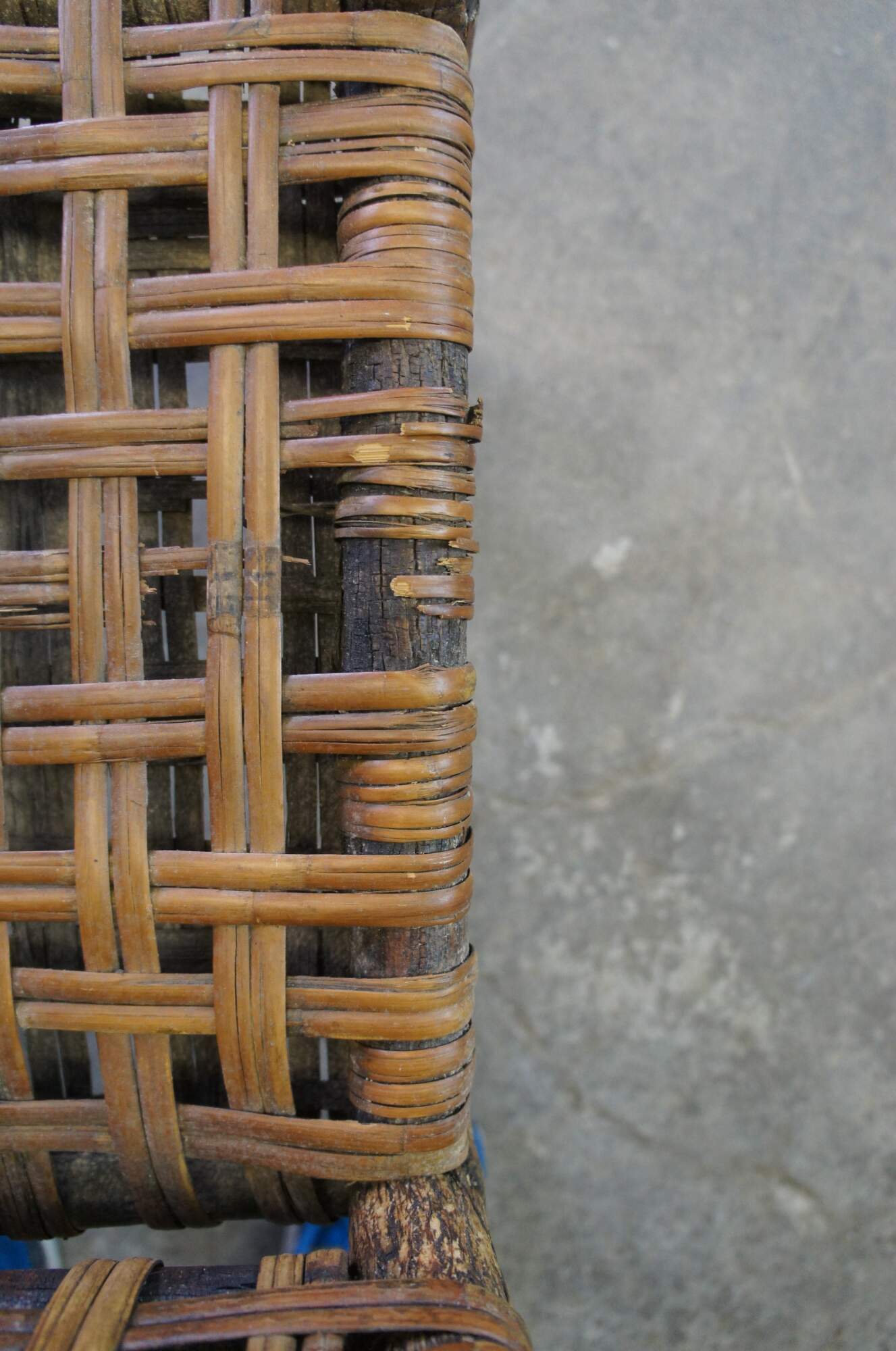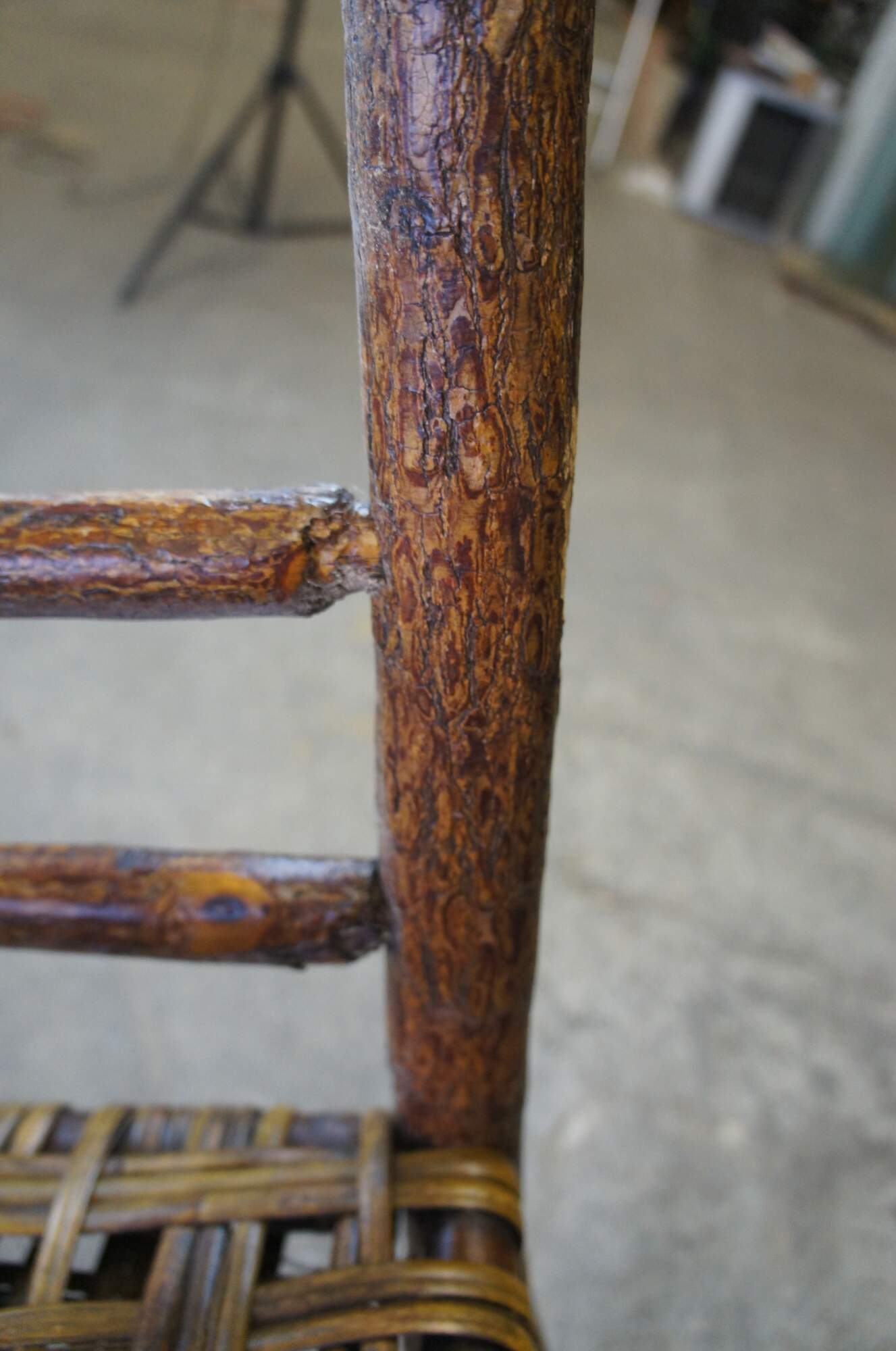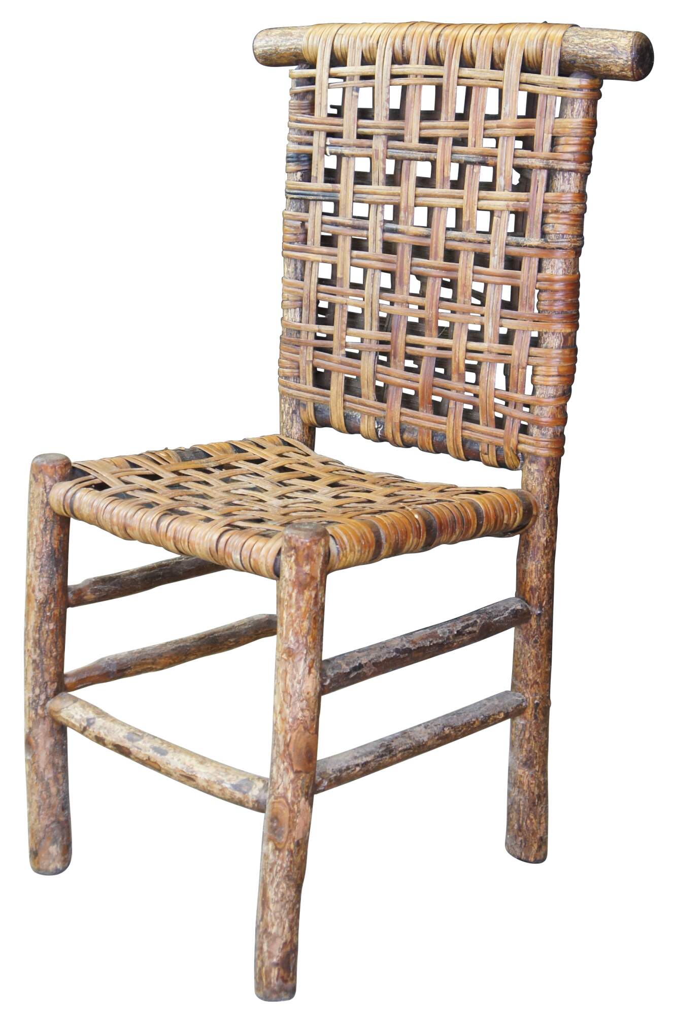 Antique Hickory side chair with woven rattan seat and back. Rustic design that has a great cabin or lodge feel.