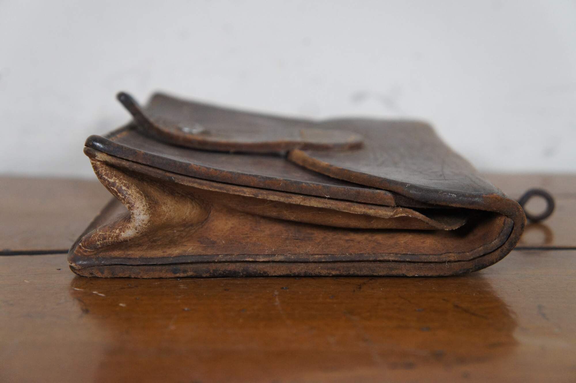 Antique early 20th century / World War I French leather ammunition / artillery officer / military gendarmerie pouch / cartridge box. Tobacco.