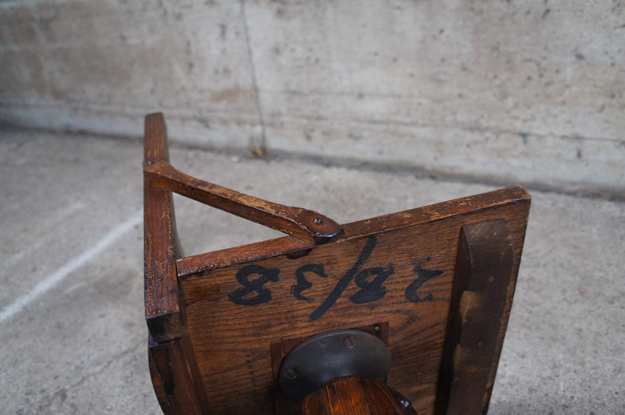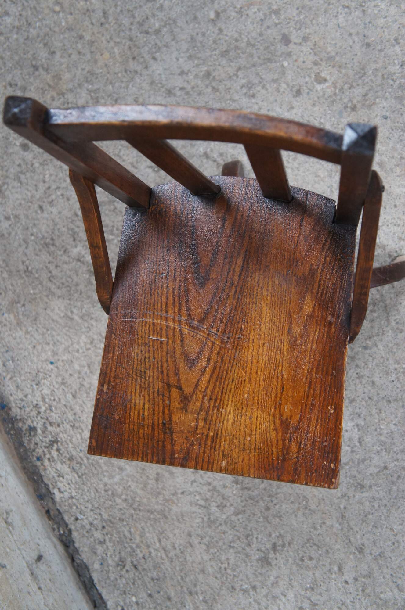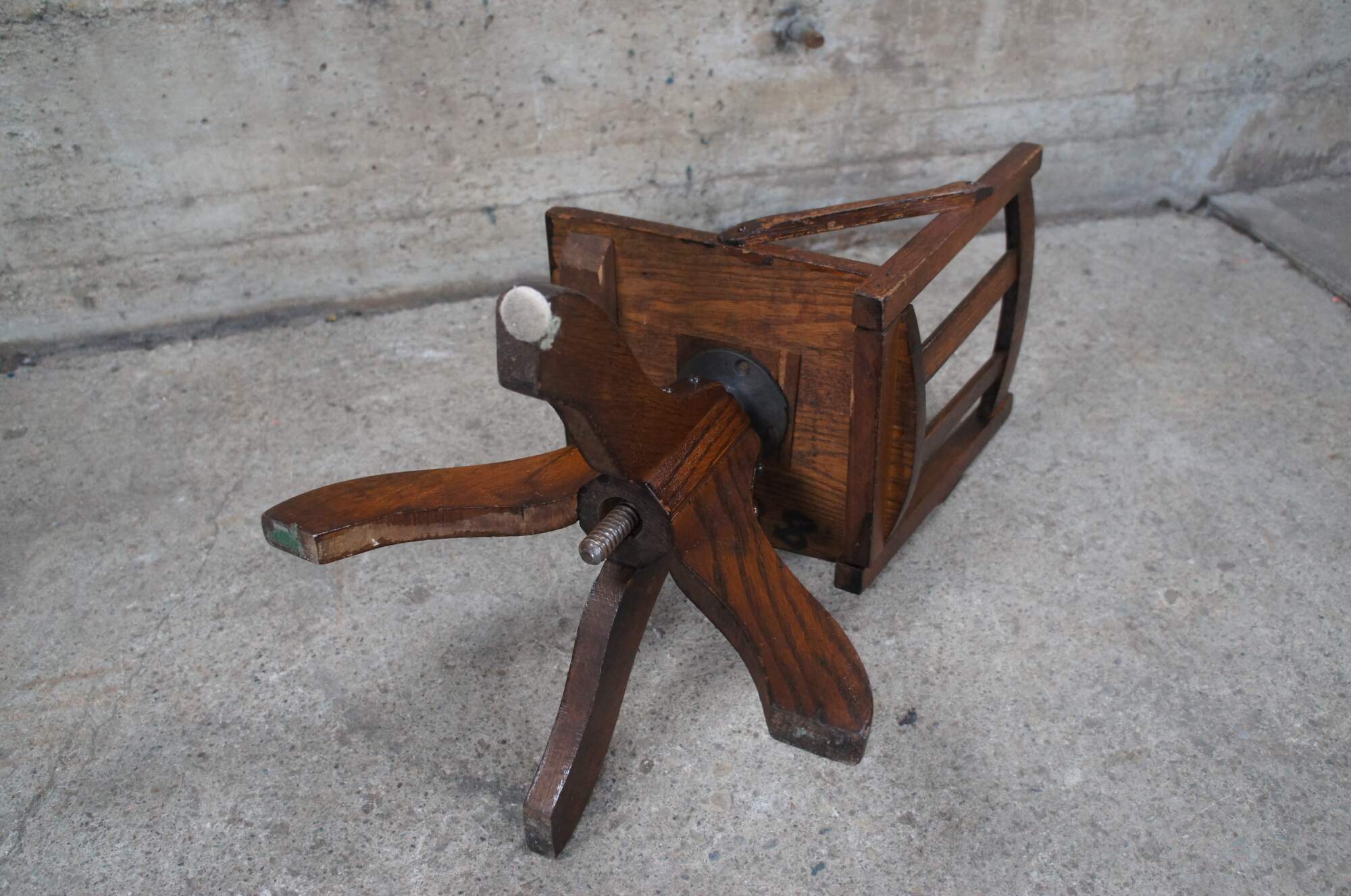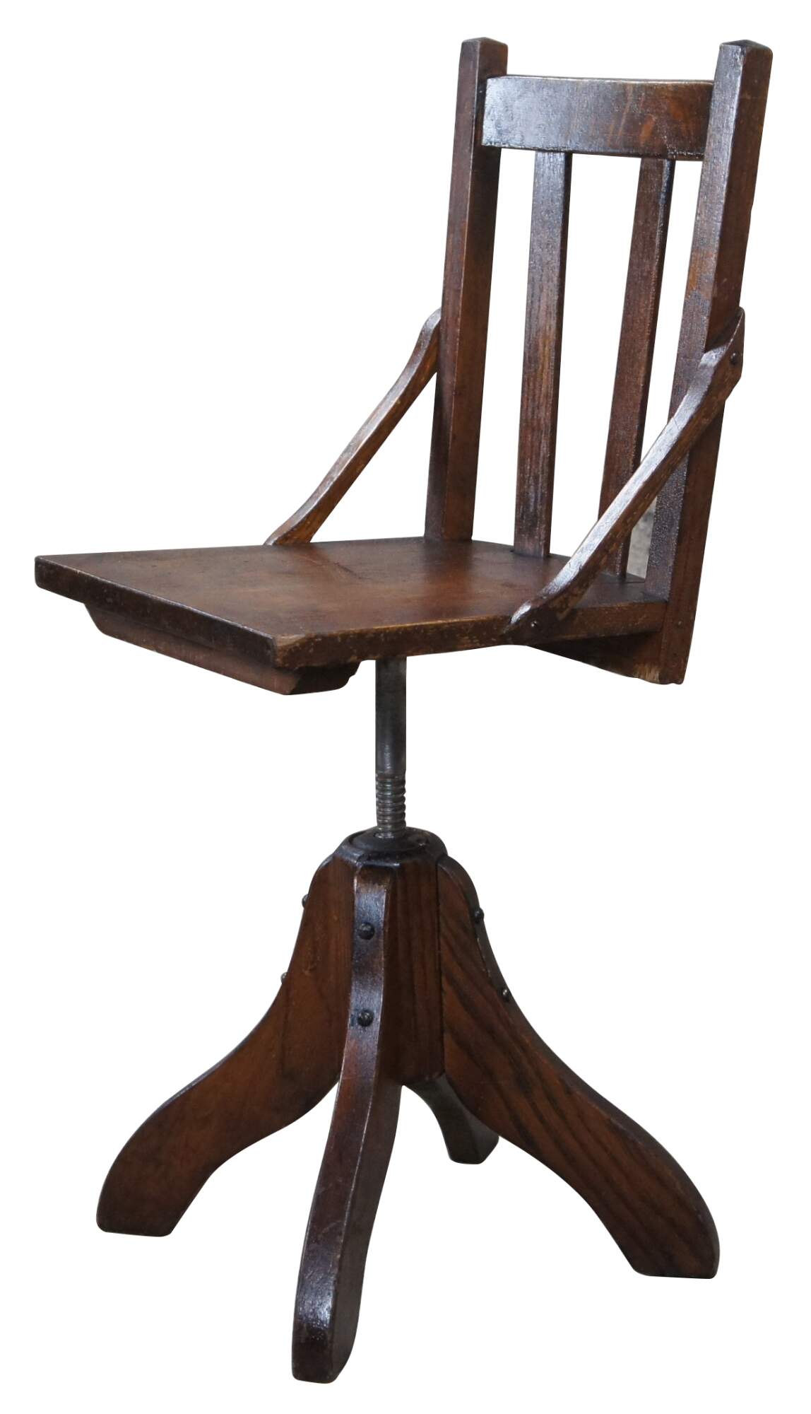 Late Victorian oak childs chair. A braced slat back over 4 legged adjustable swiveling base. A fun addition to any space.