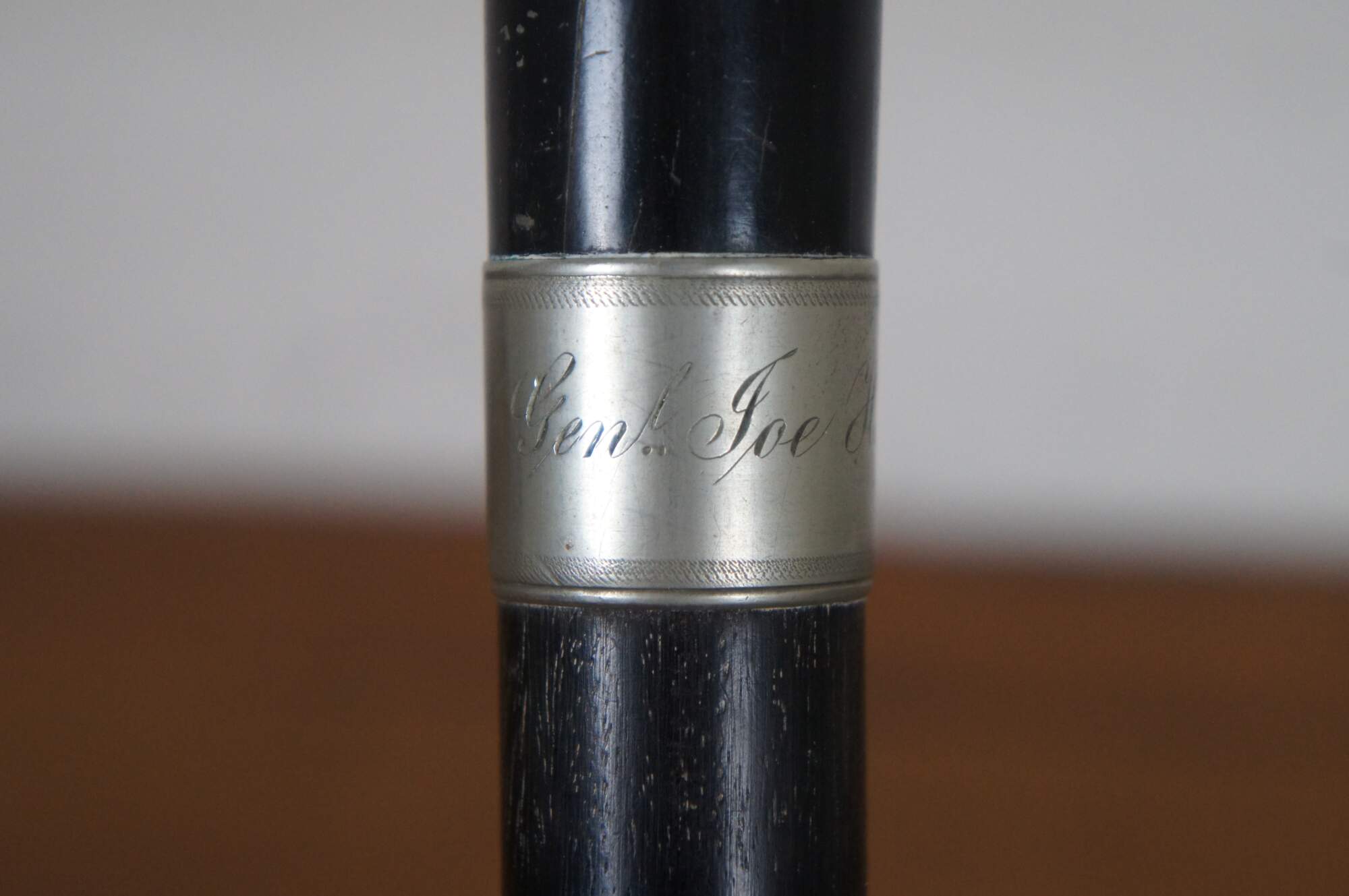 Very rare antique 18th Century wood walking stick, staff or cane once owned by General Joe Hooker. Engraved silver band reads Gen. Joe Hooker.