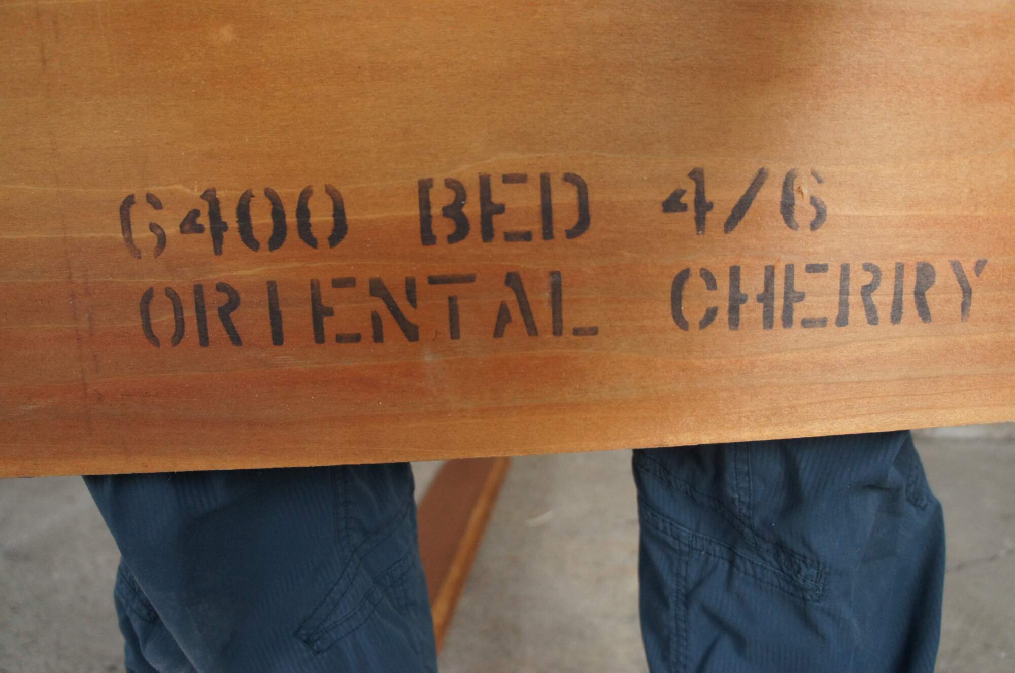 A beautiful mid century full size bed from ""The Lotus"" collection by Kent Coffey. Made from cherry with brass accents and modern low profile. Finished in Oriental Cherry. Circa 1960s. 6400.