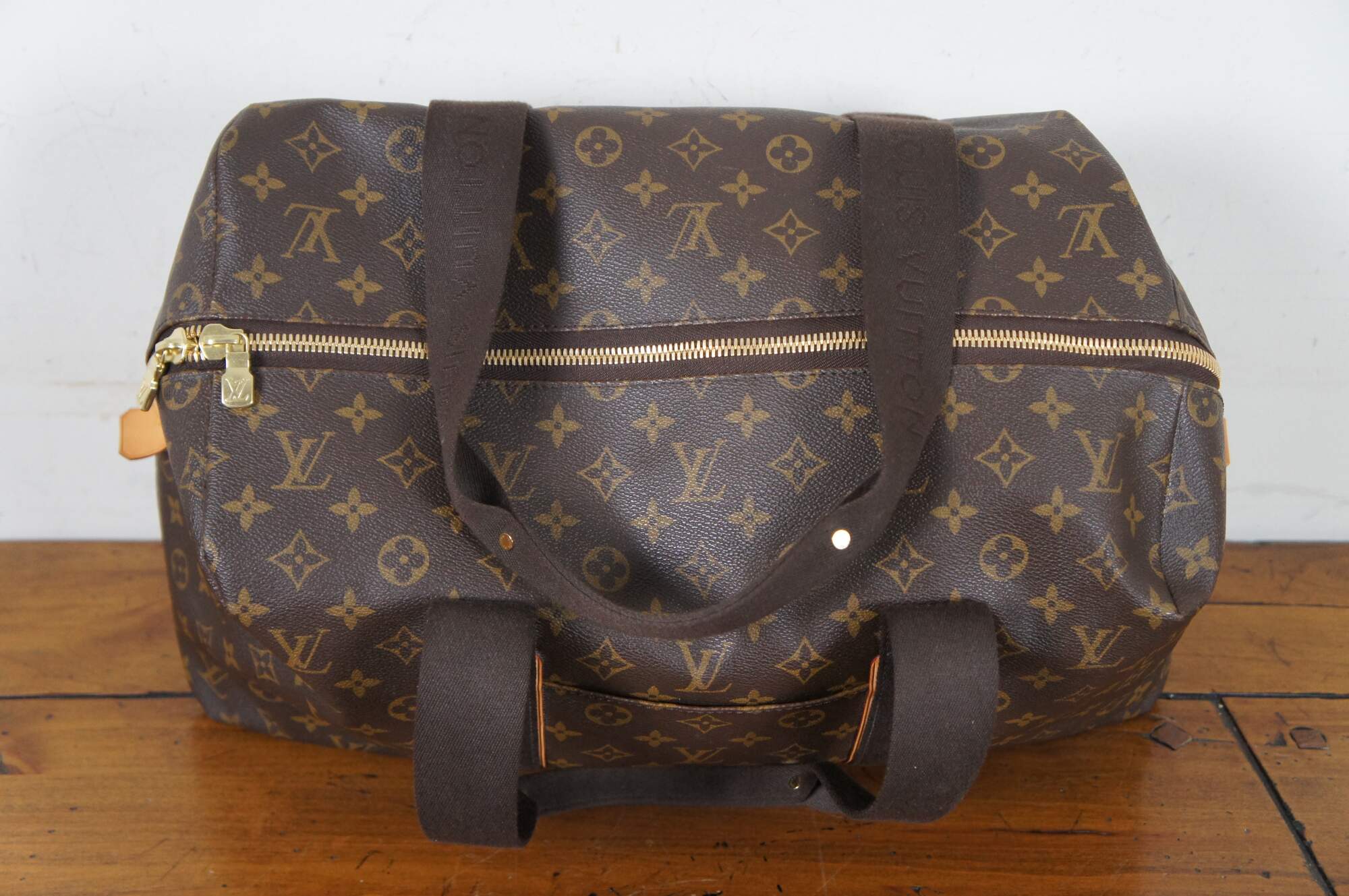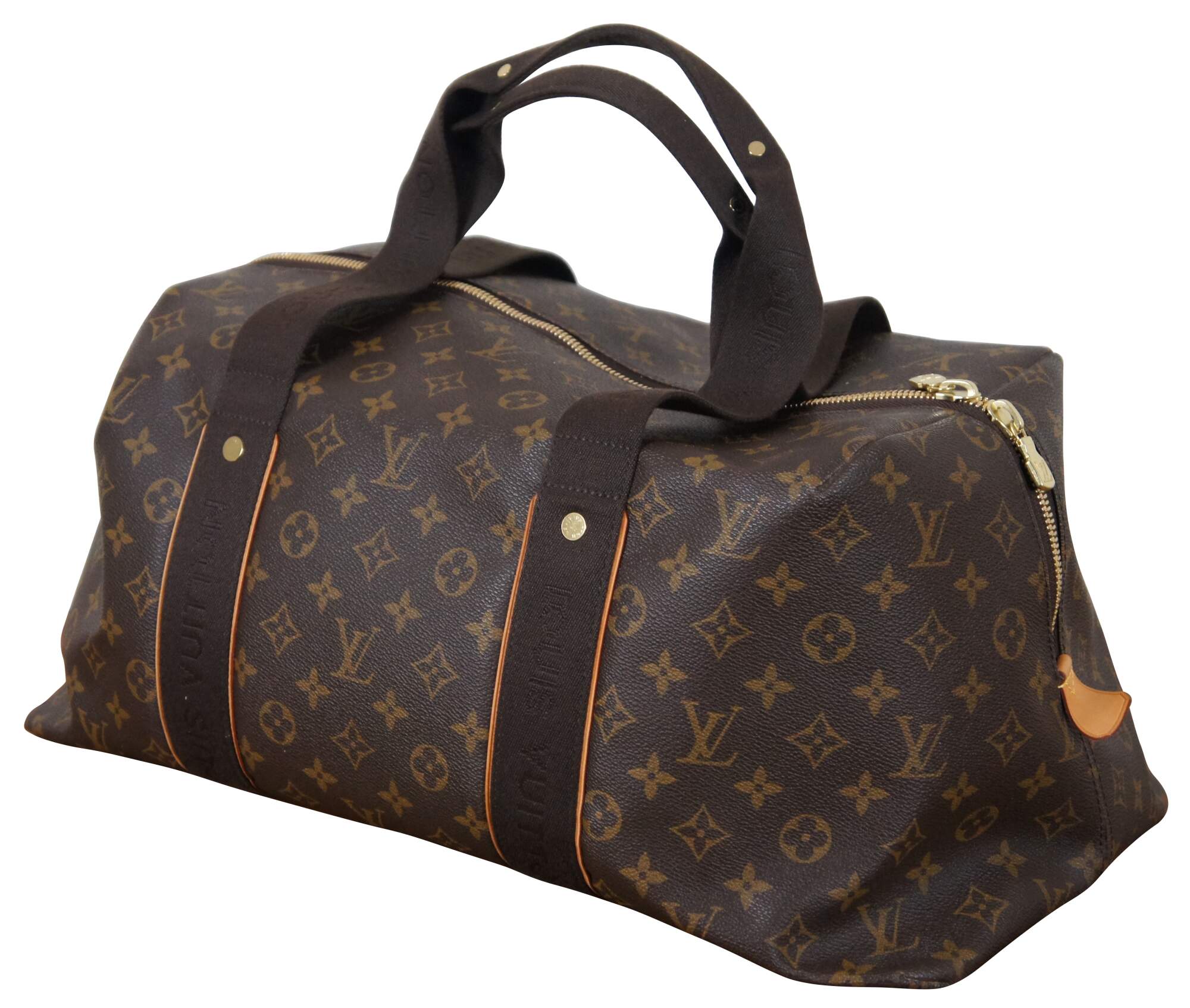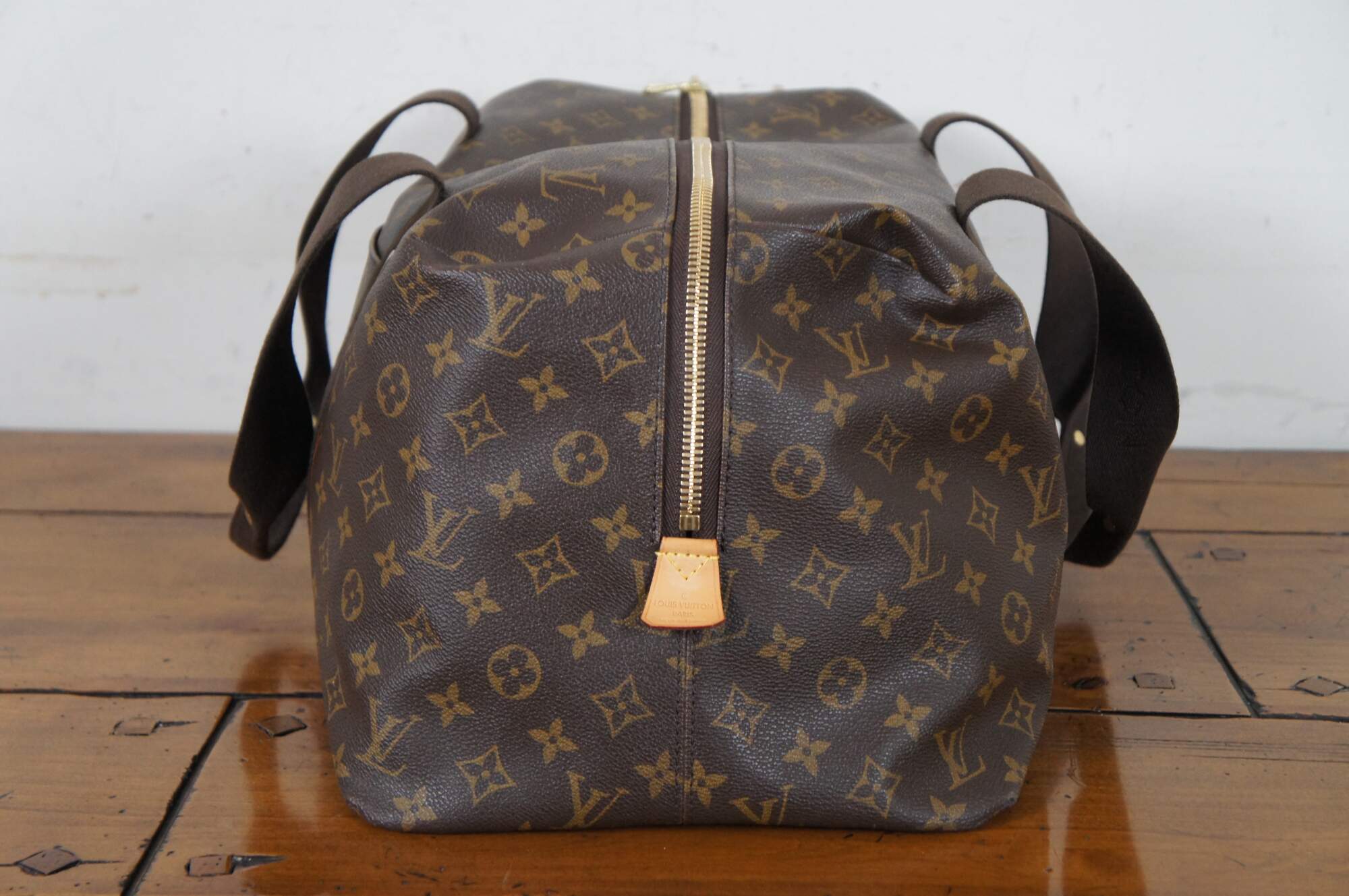 Vintage Louis Vuitton Beaubourg Weekender duffle bag crafted from brown monogram canvas with cowhide leather trim, canvas straps, and gold tone brass hardware. One slip pocket on front and six interior organizational pockets. Serial Number DU2161. Made in France between June 27th-July 3rd of 2011.