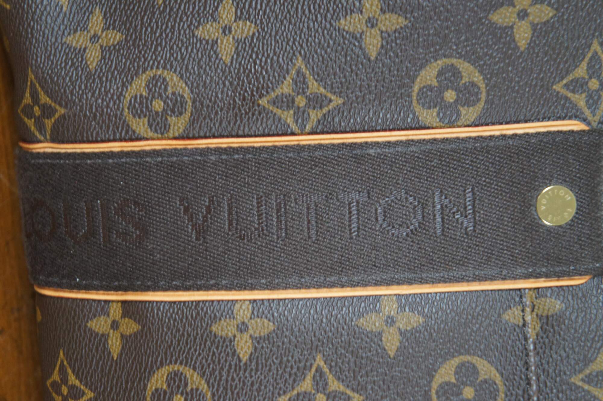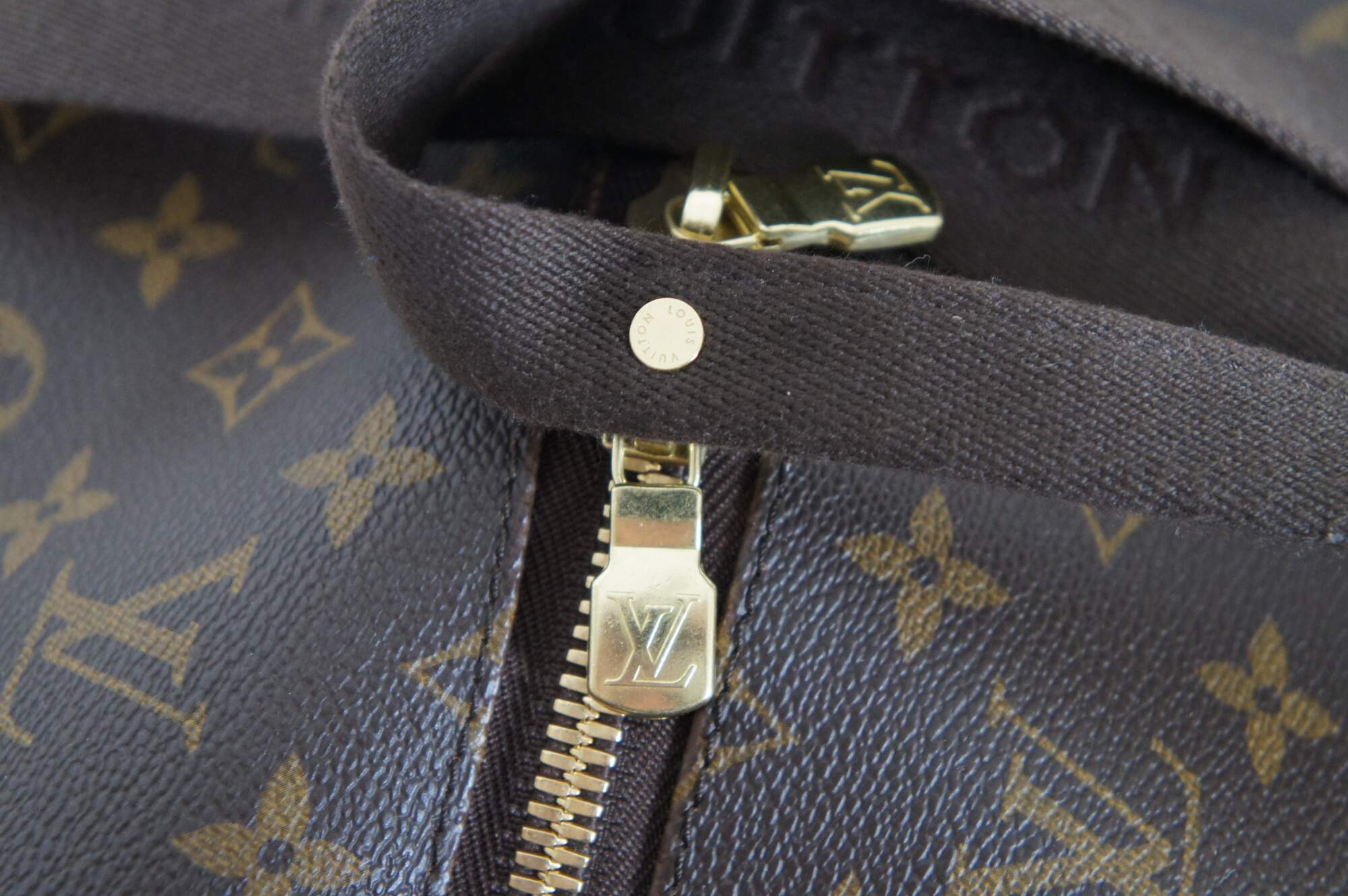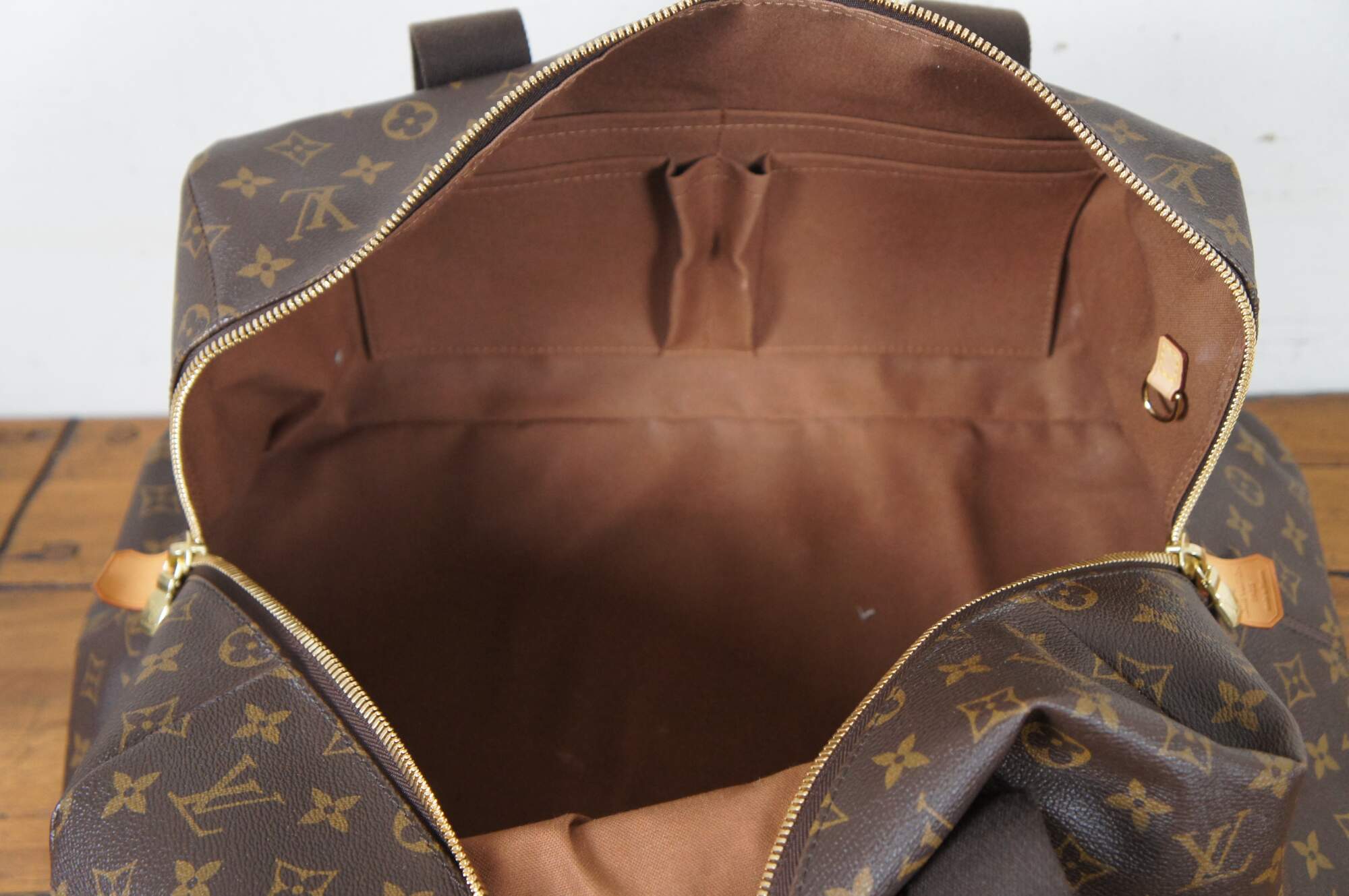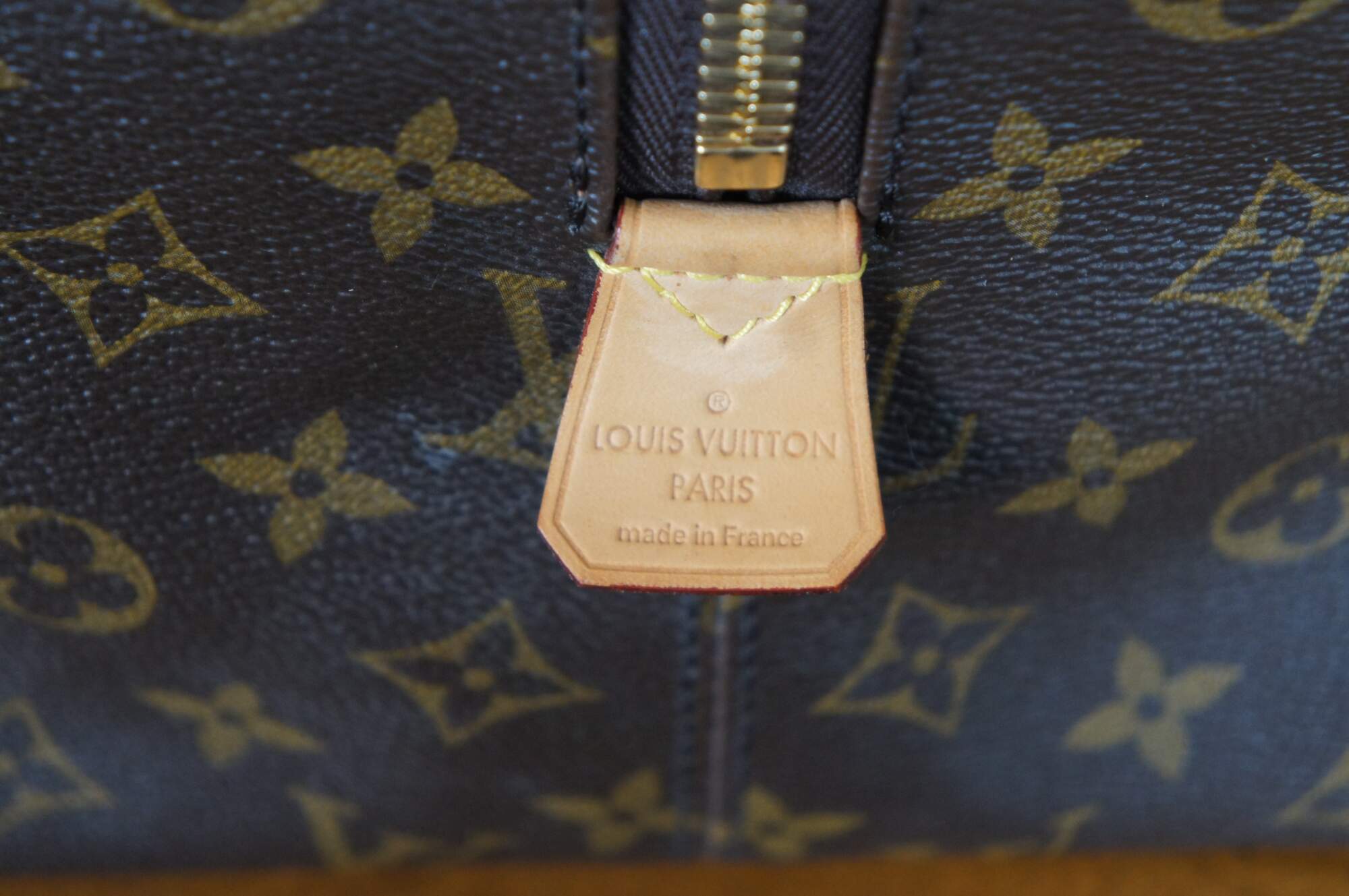 Vintage Louis Vuitton Beaubourg Weekender duffle bag crafted from brown monogram canvas with cowhide leather trim, canvas straps, and gold tone brass hardware. One slip pocket on front and six interior organizational pockets. Serial Number DU2161. Made in France between June 27th-July 3rd of 2011.