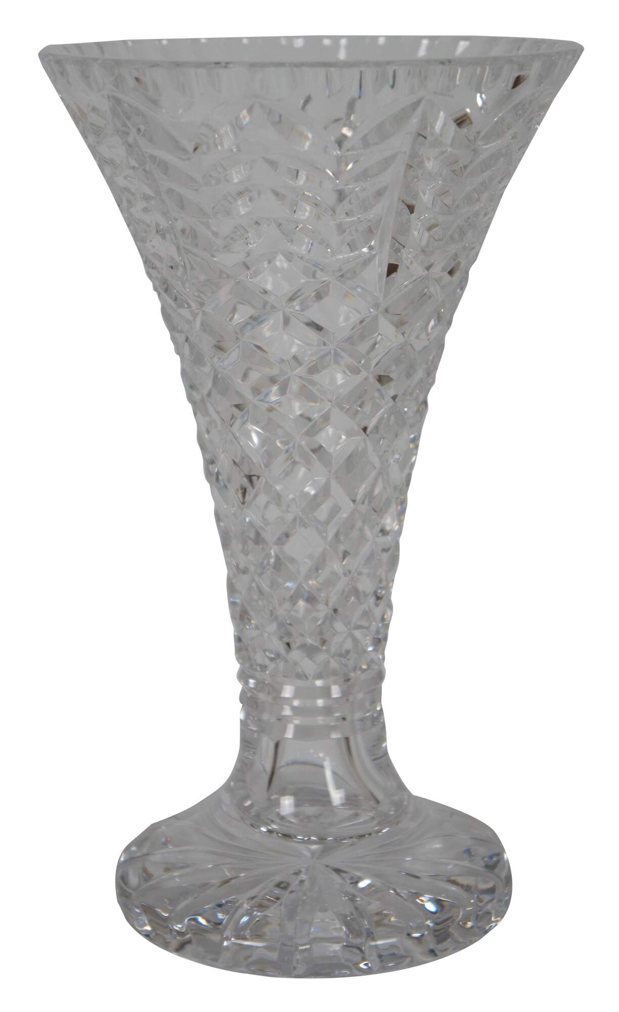 Waterford Crystal Lismore pattern 206-021 footed trumpet or trophy shaped vase with a flared tapered form. Includes original box and Certificate of Authenticity number 78084.