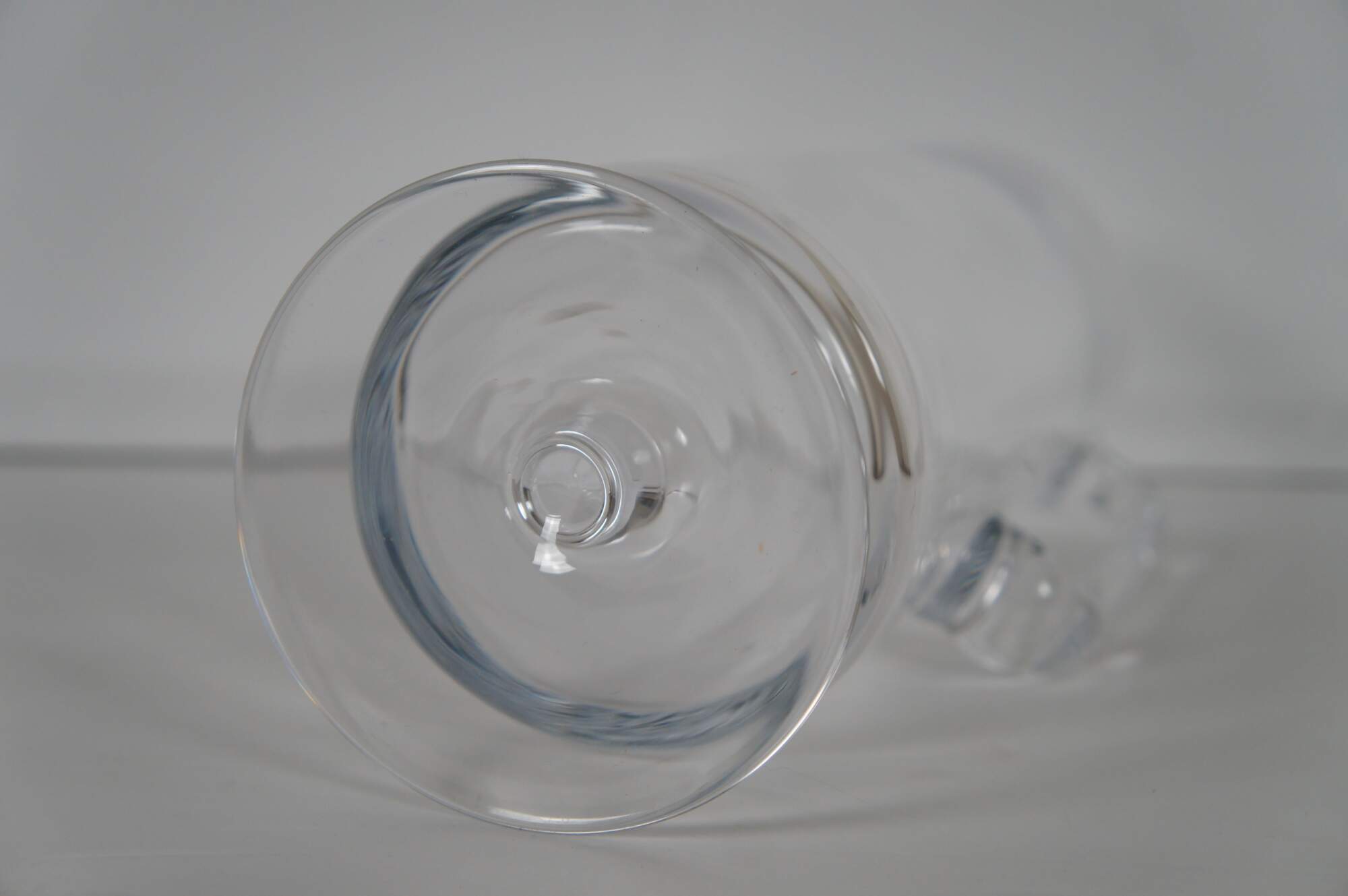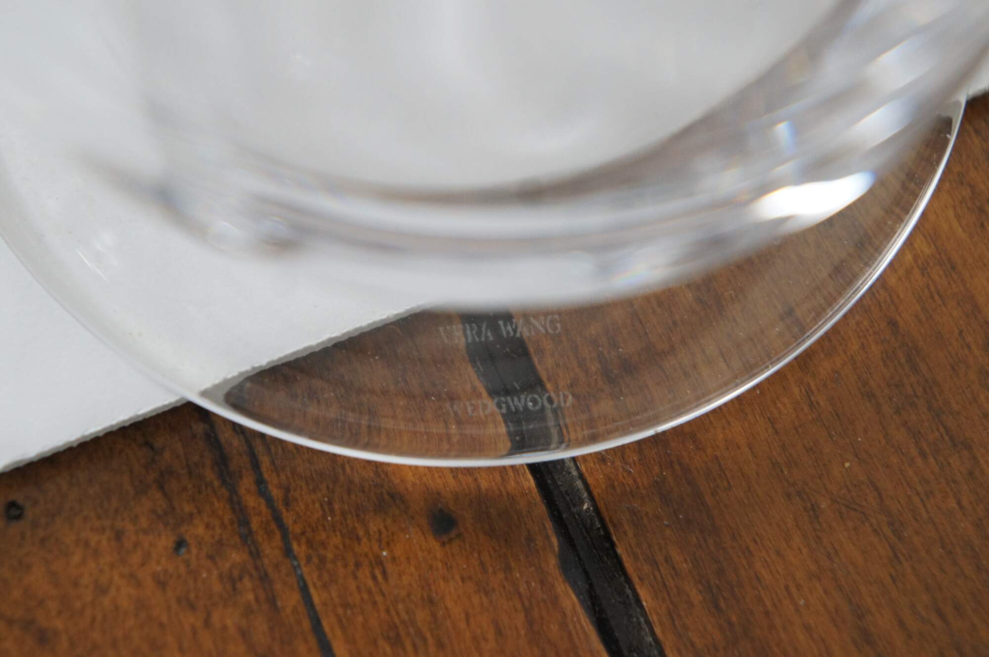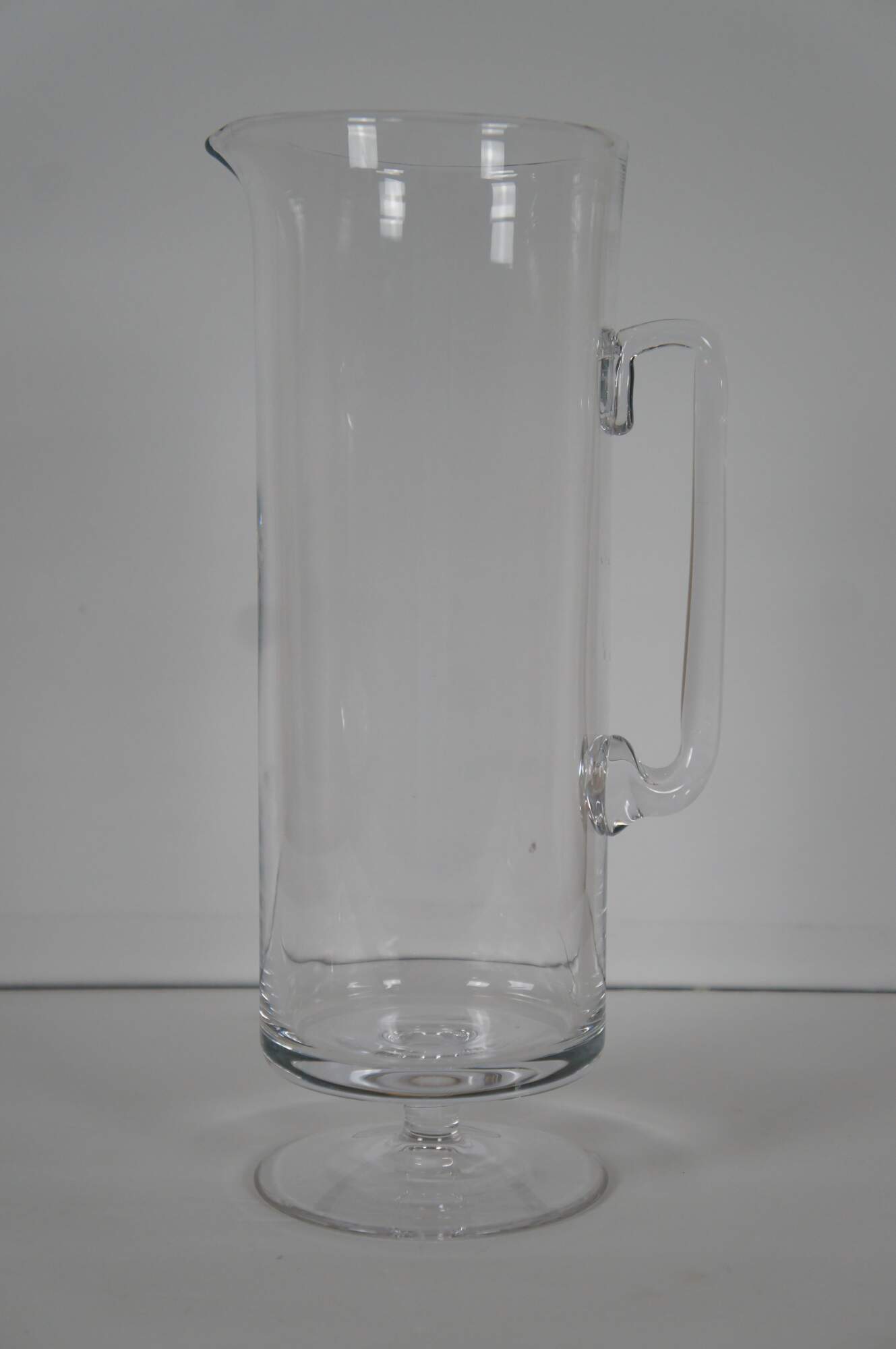 Vera Wang Wedgwood Stiletto Pitcher with Swizzle Stick – clear crystal martini or cocktail pitcher with footed base, capacity 48 oz, and drop shaped stirring / swizzle mix stick. Discontinued 2004. Includes original box. 5-50040-7566. Made in Slovenia.