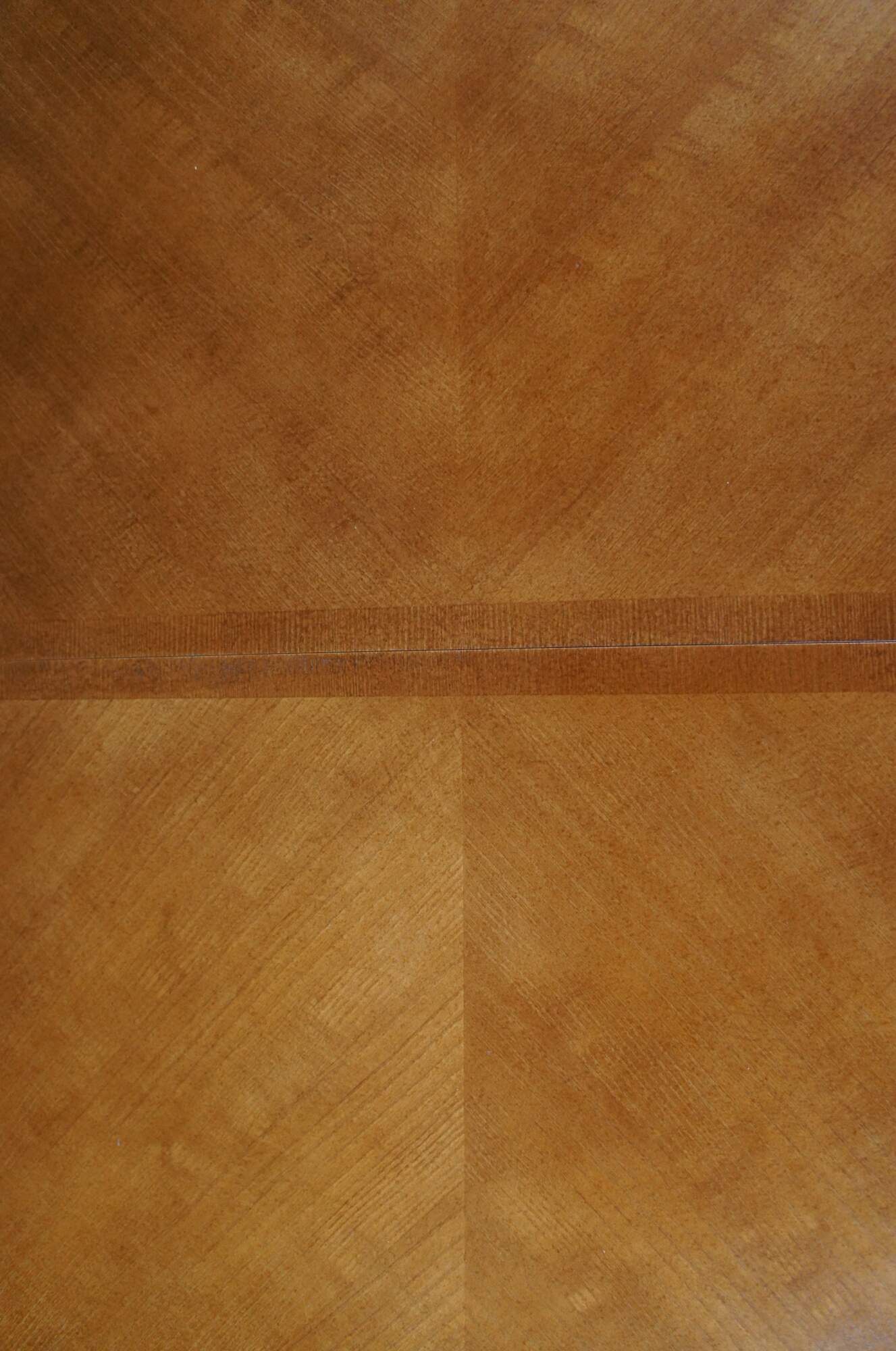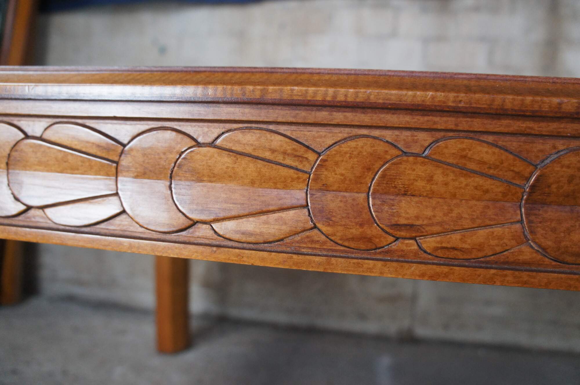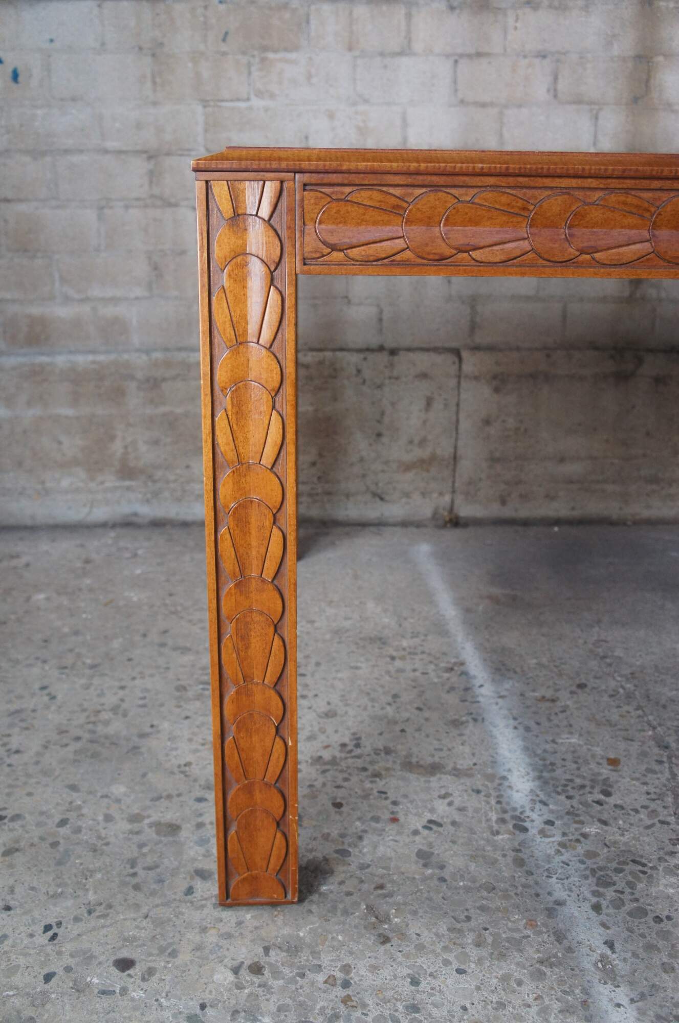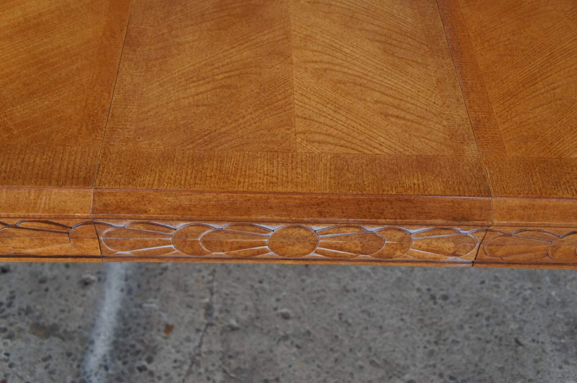 Vintage Century Furniture extendable dining table. Made of maple featuring Parsons style modernist rectangular form with low relief fretwork accents.