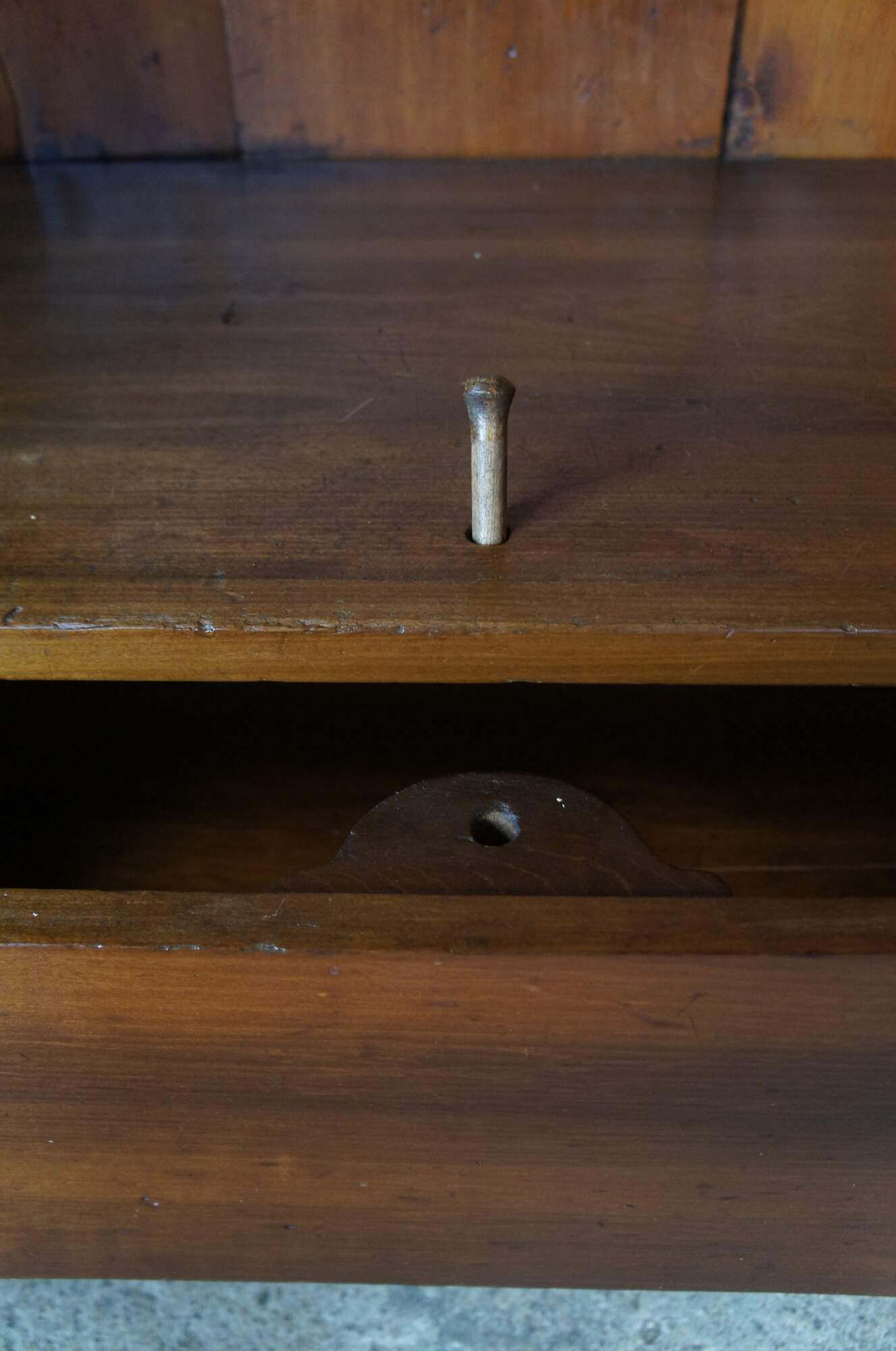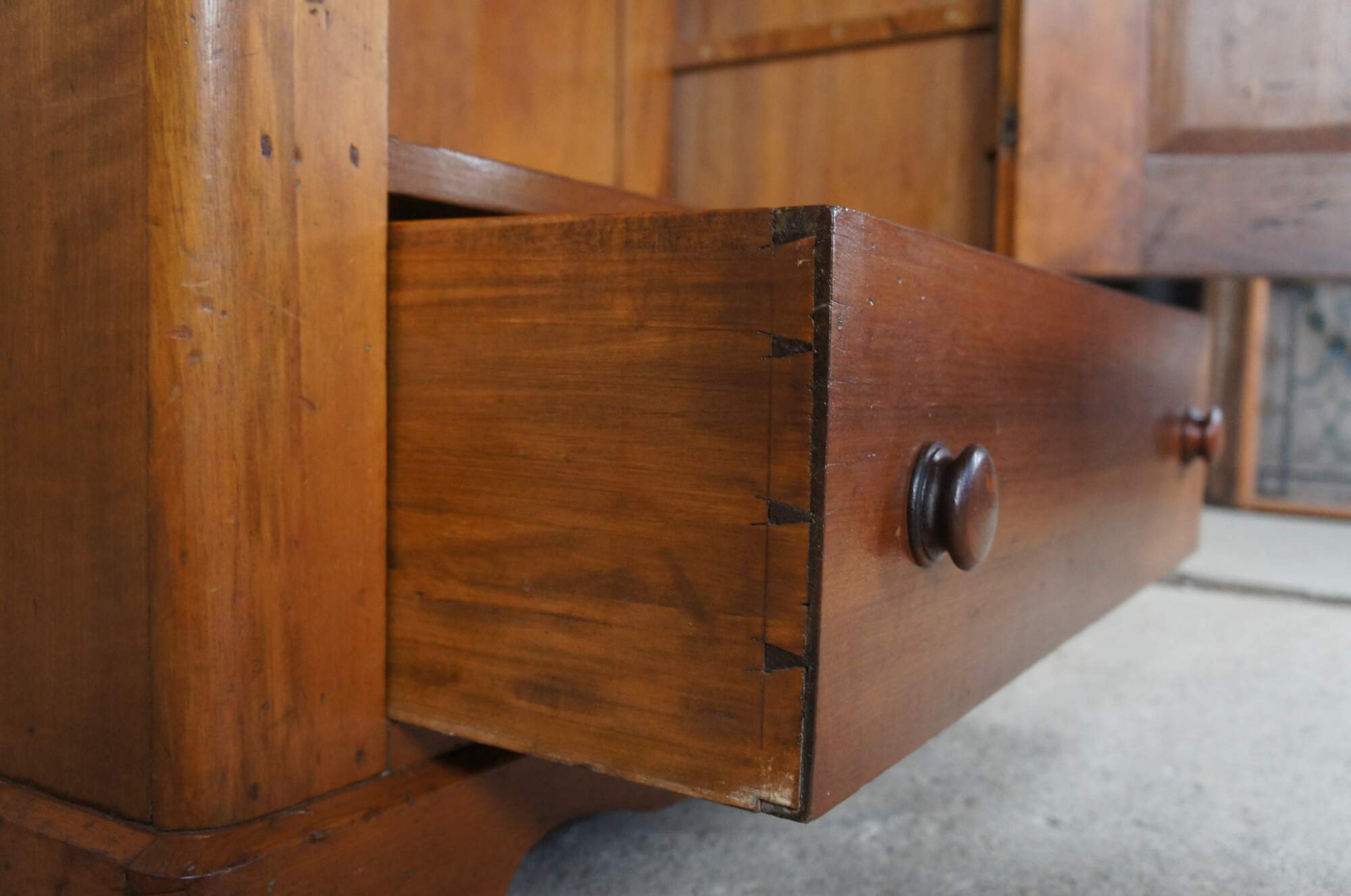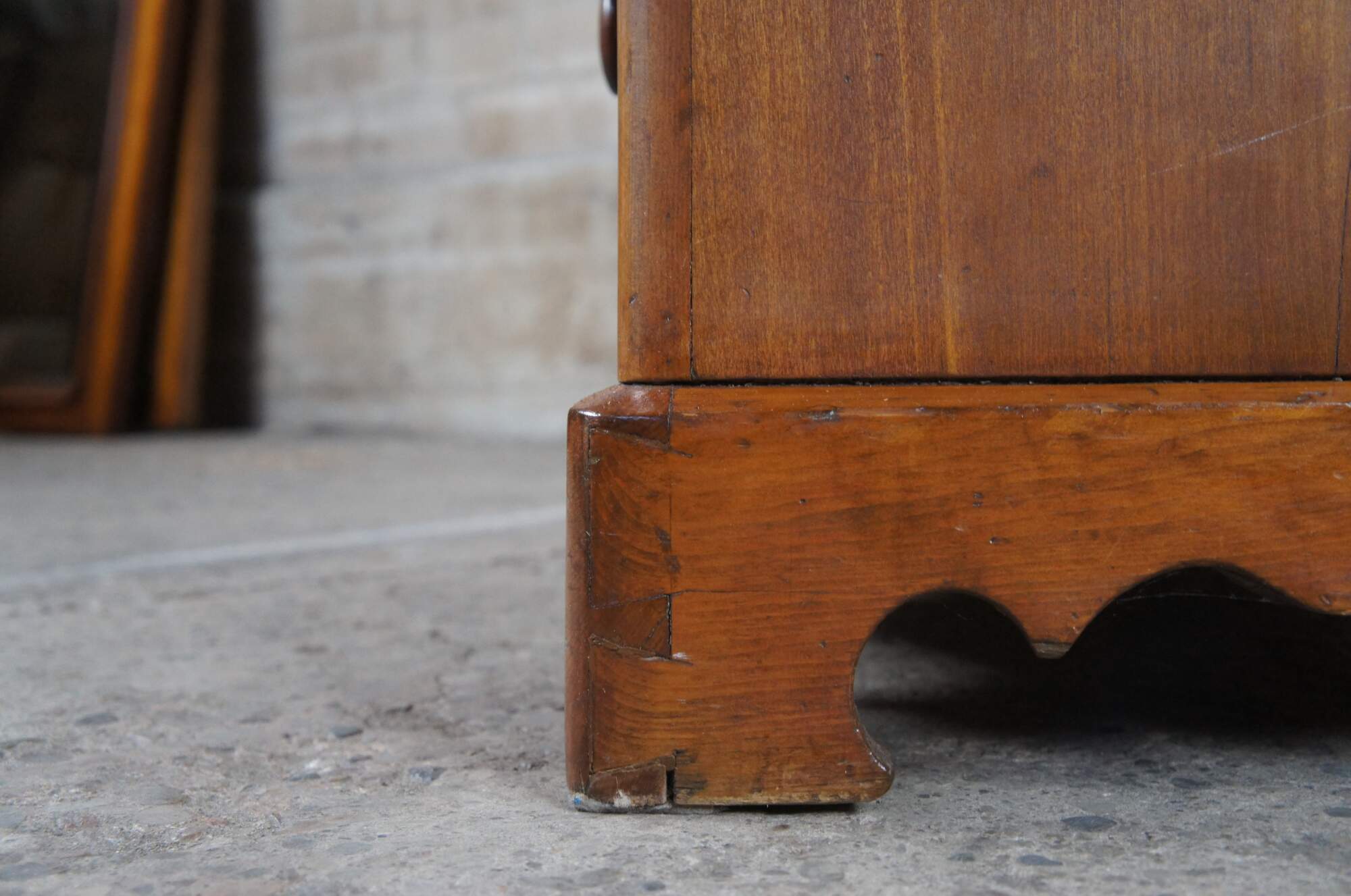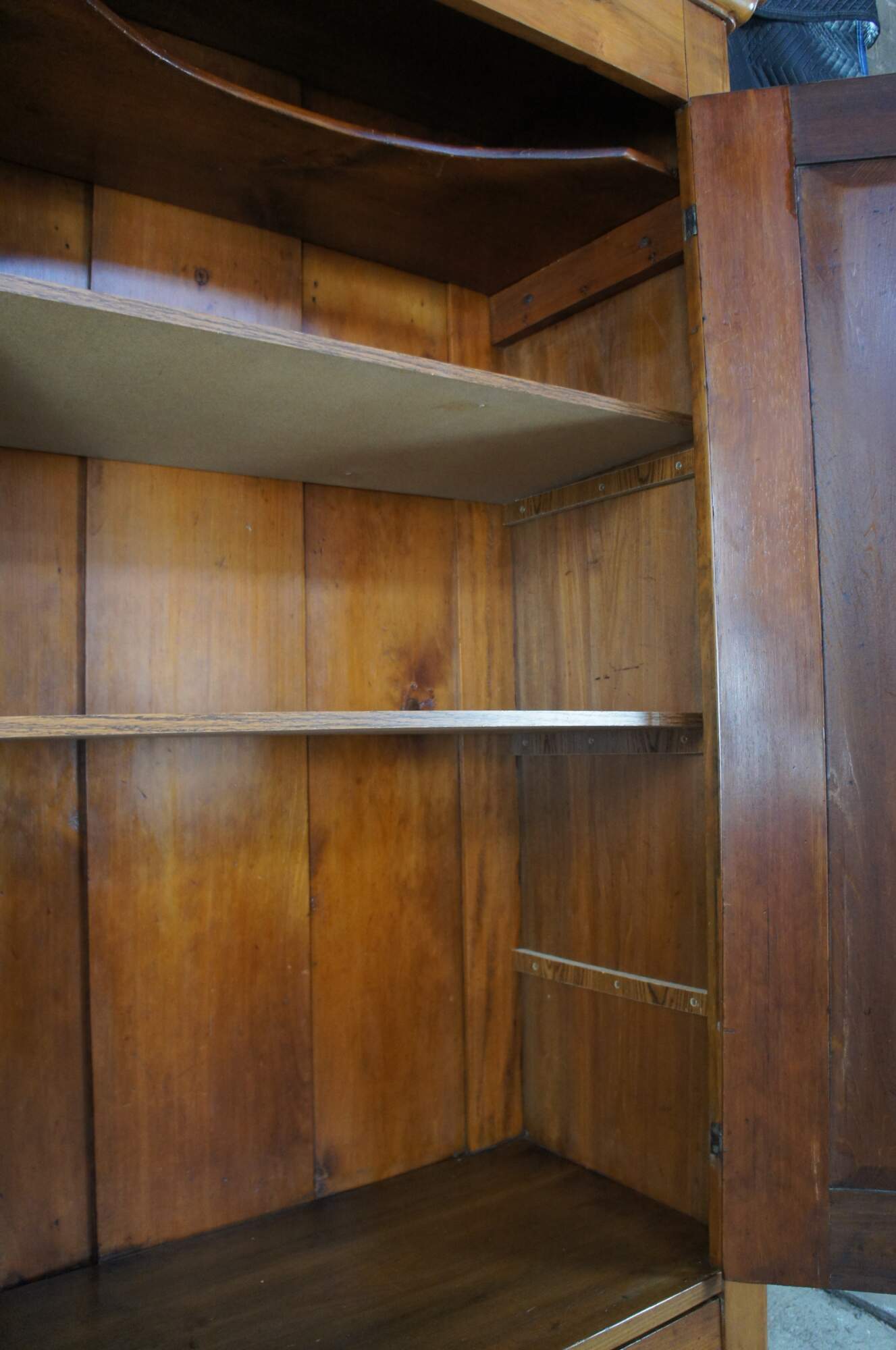 Good Antique Condition; wear and distressing commensurate with age. Some rubbing on door, lower left foot repaired in the past. Interior shelves added at a later date. Missing one interior shelf, can be made for additional if interested. supports