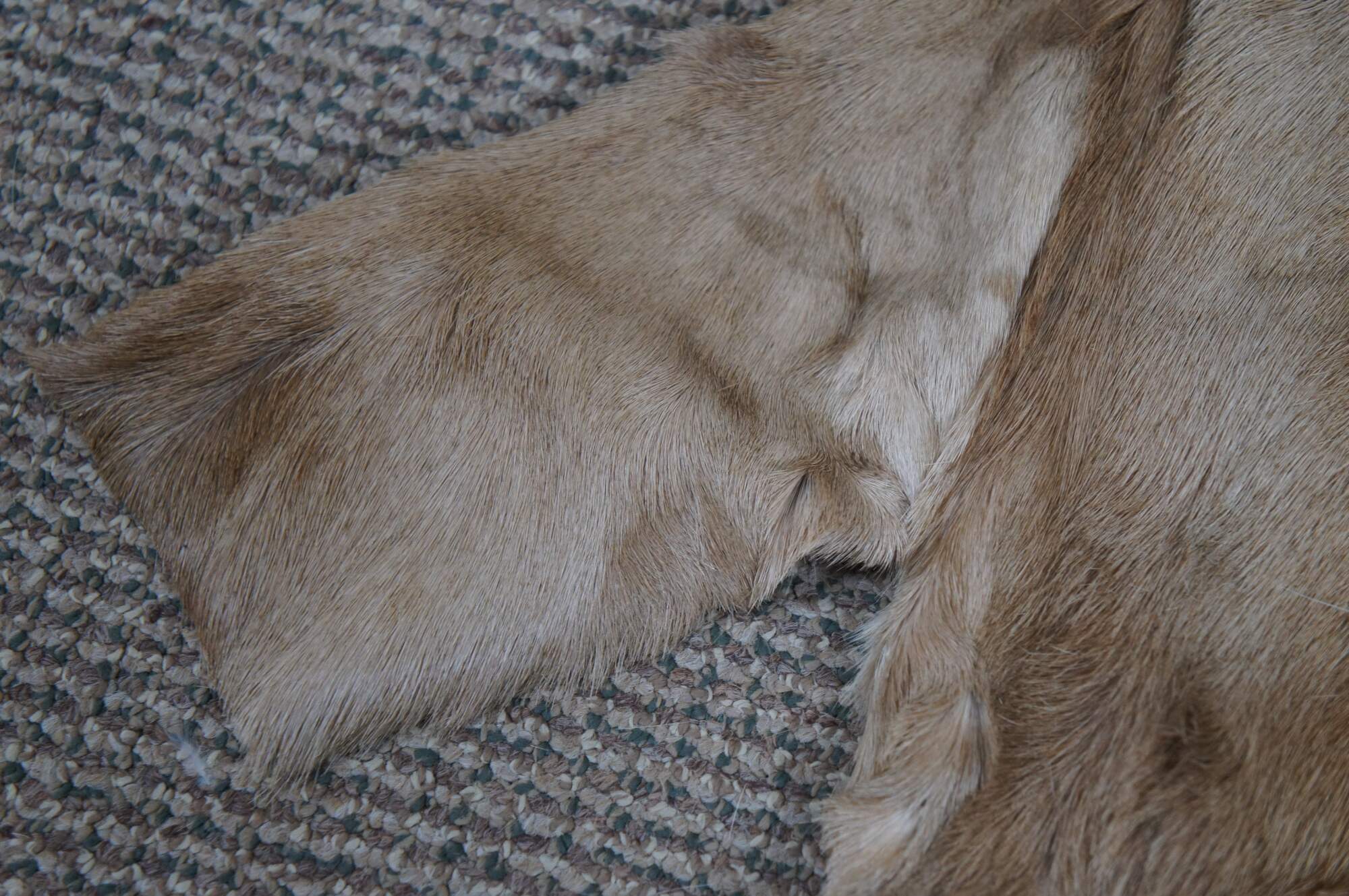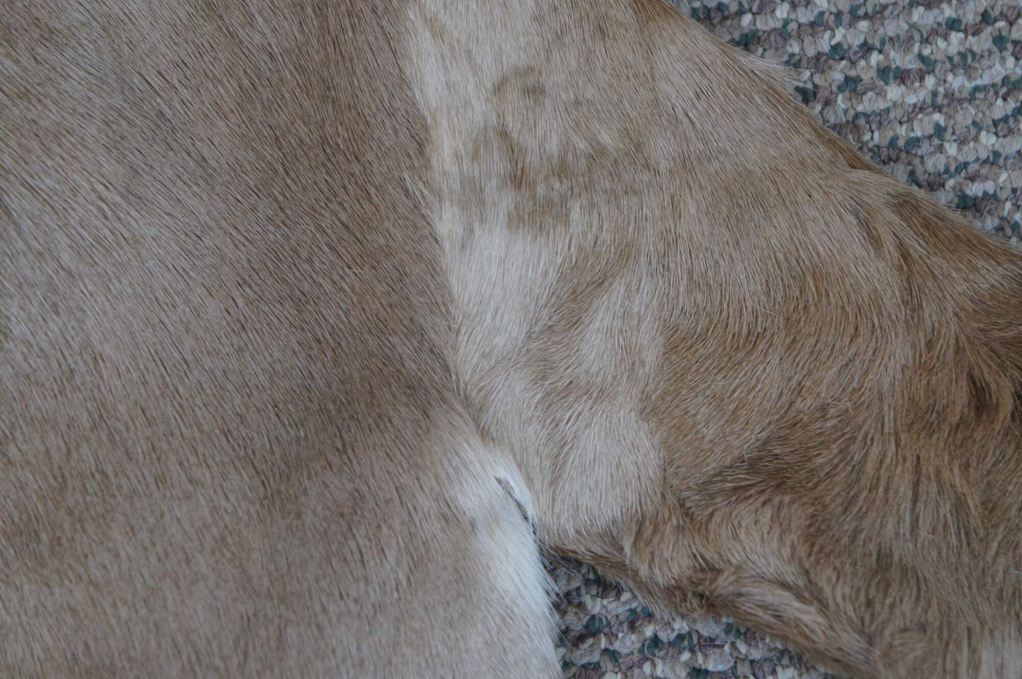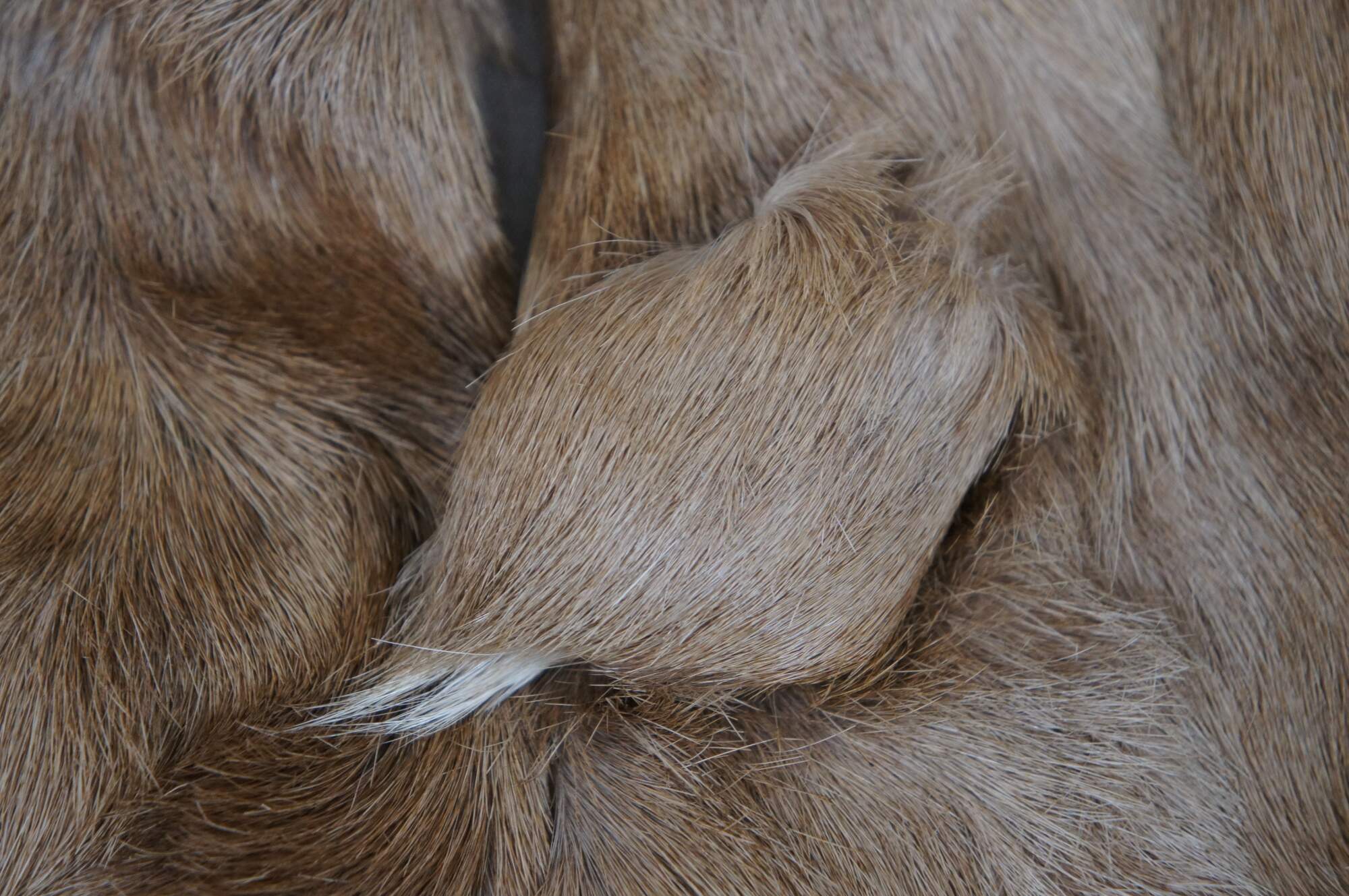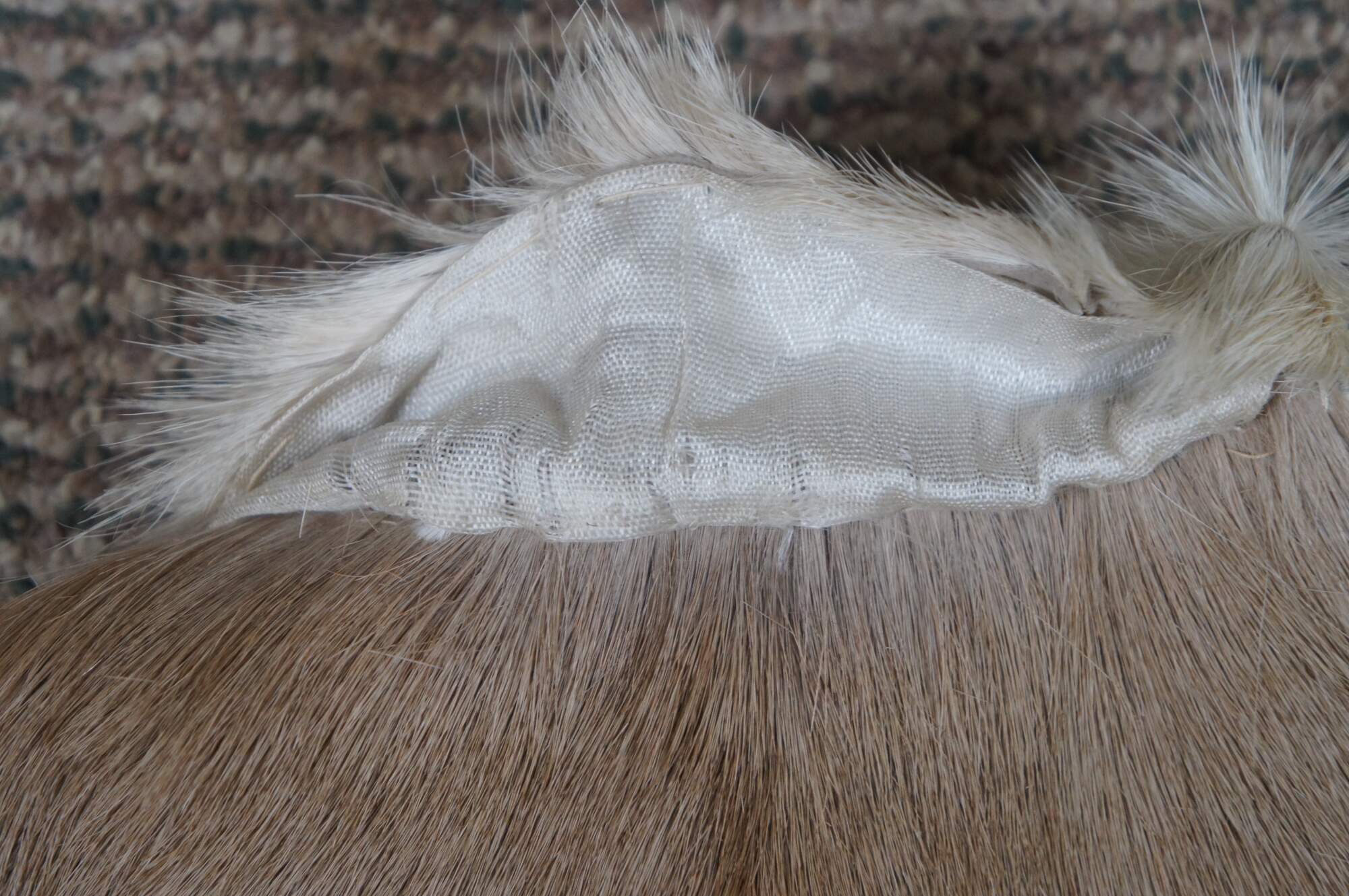 Mid century baby or child sized brown rabbit fur coat or jacket with white collar and white fabric lining.