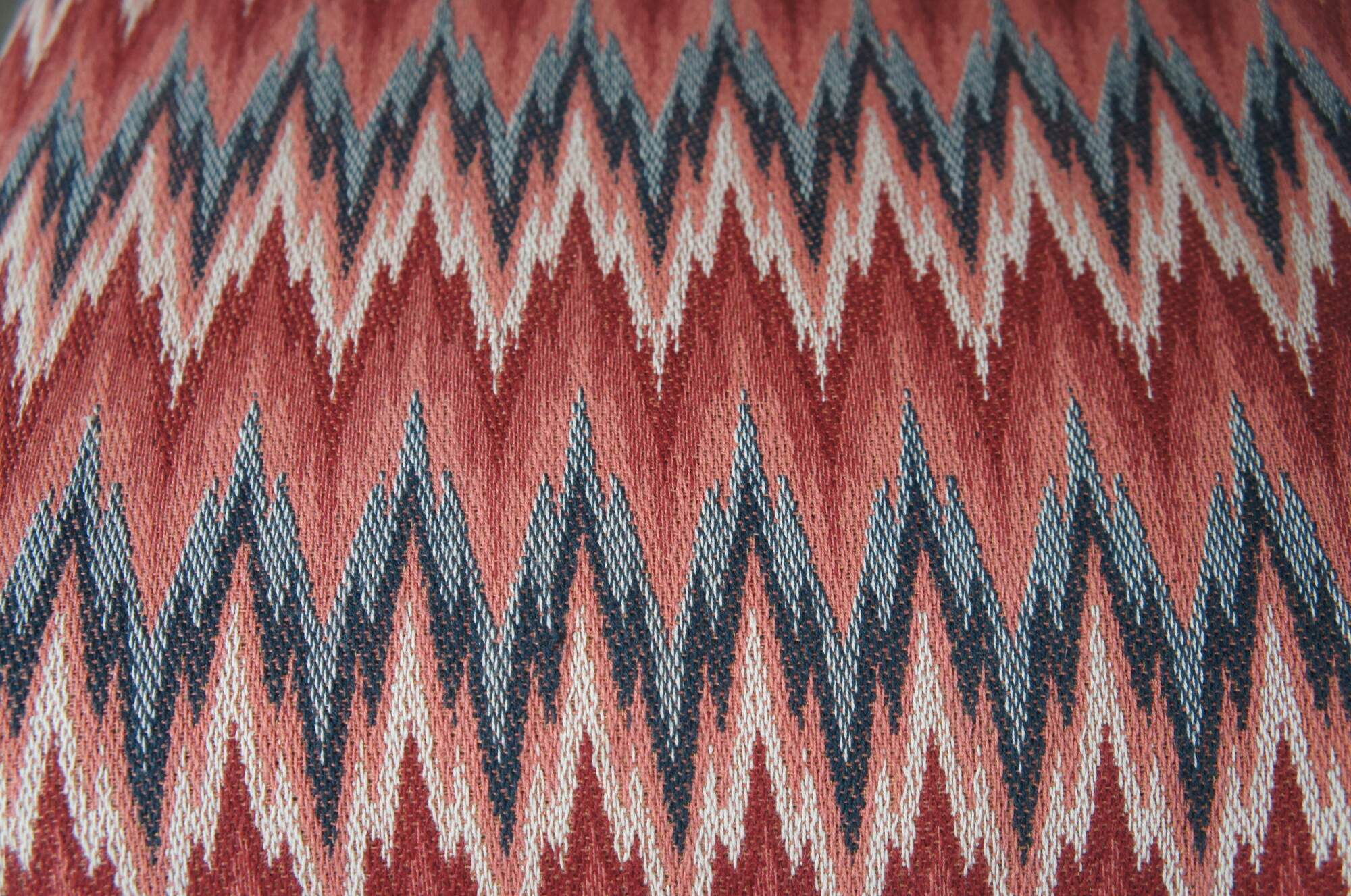 Traditional Chinese Chippendale style ottoman or footstool by Hickory Chair, circa mid 20th century. A rectangular form made from solid mahogany with a chevron upholstered seat and brass nailhead trim. Features beautiful inset carved fretwork molding along each leg, an X stretcher and marlborough feet.