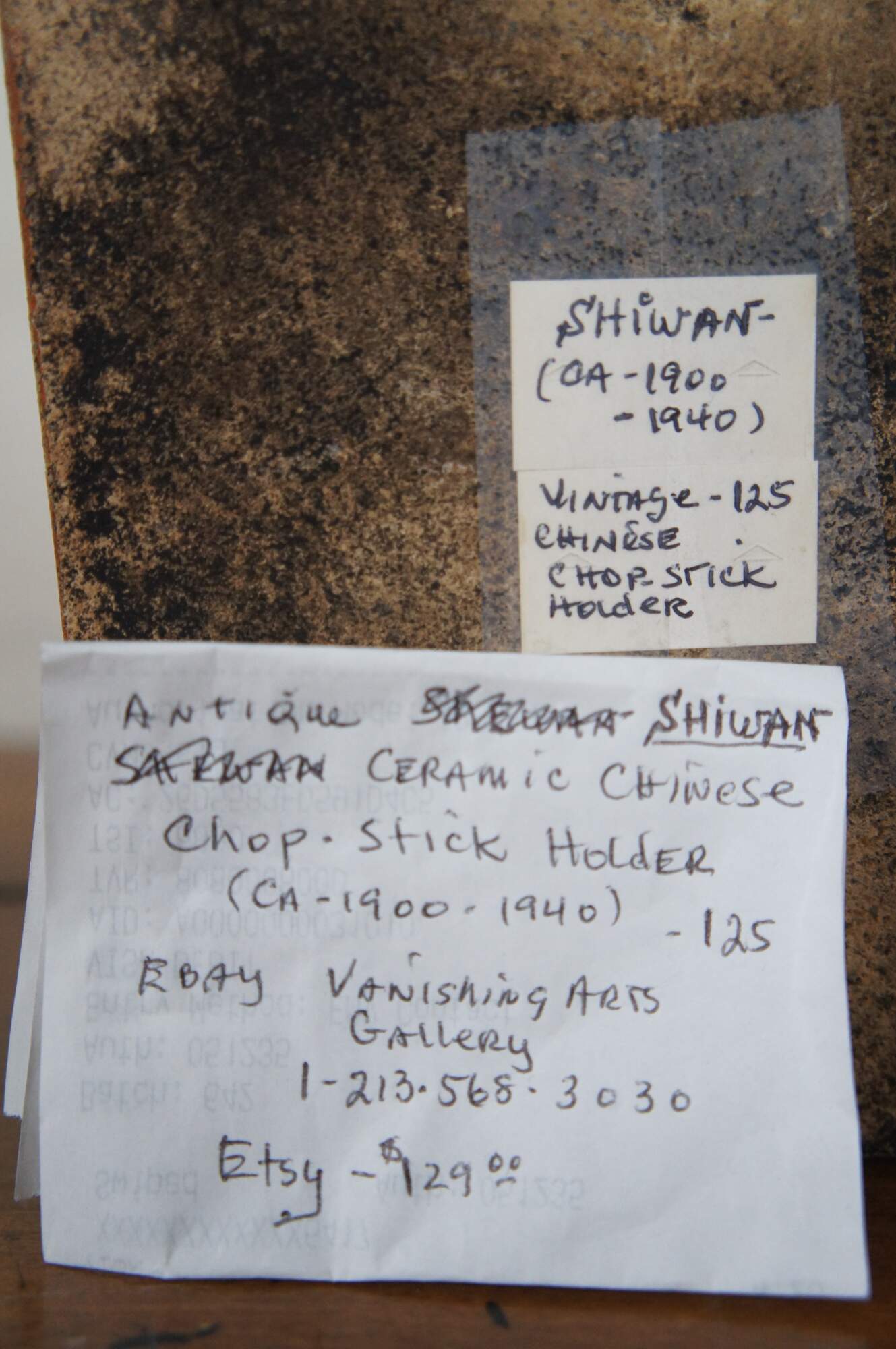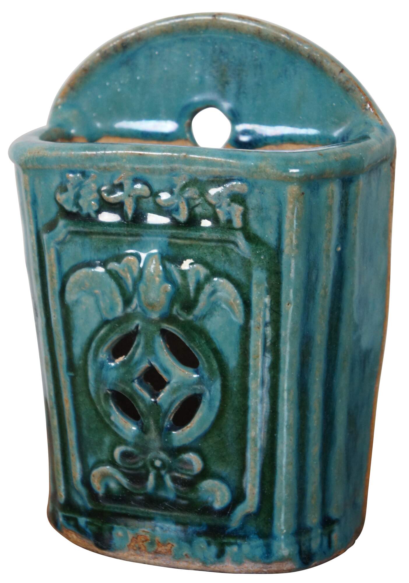 Pair of antique circa 1900-1940, green glazed Shiwan ceramic wall pocket chopstick holders.