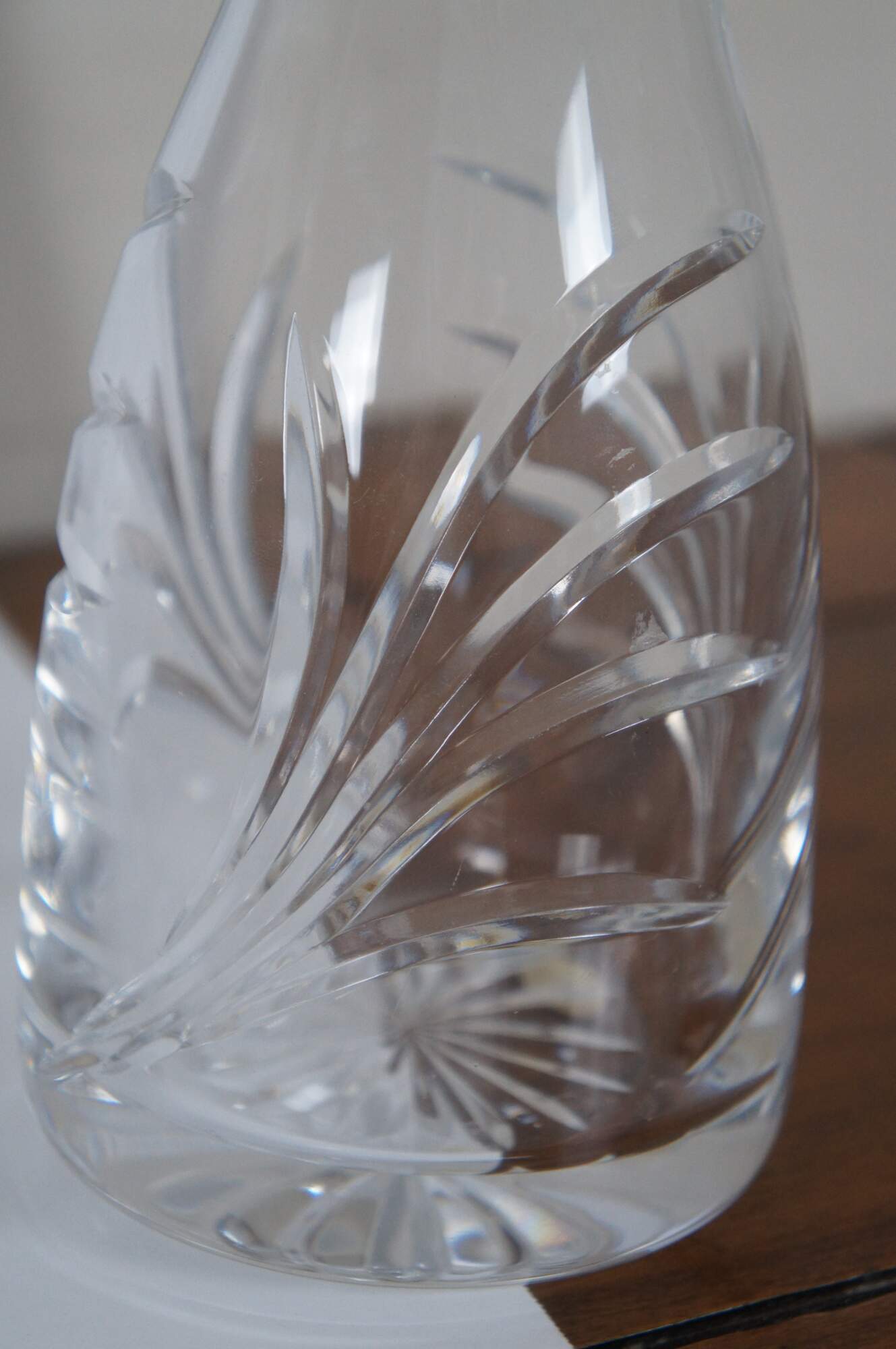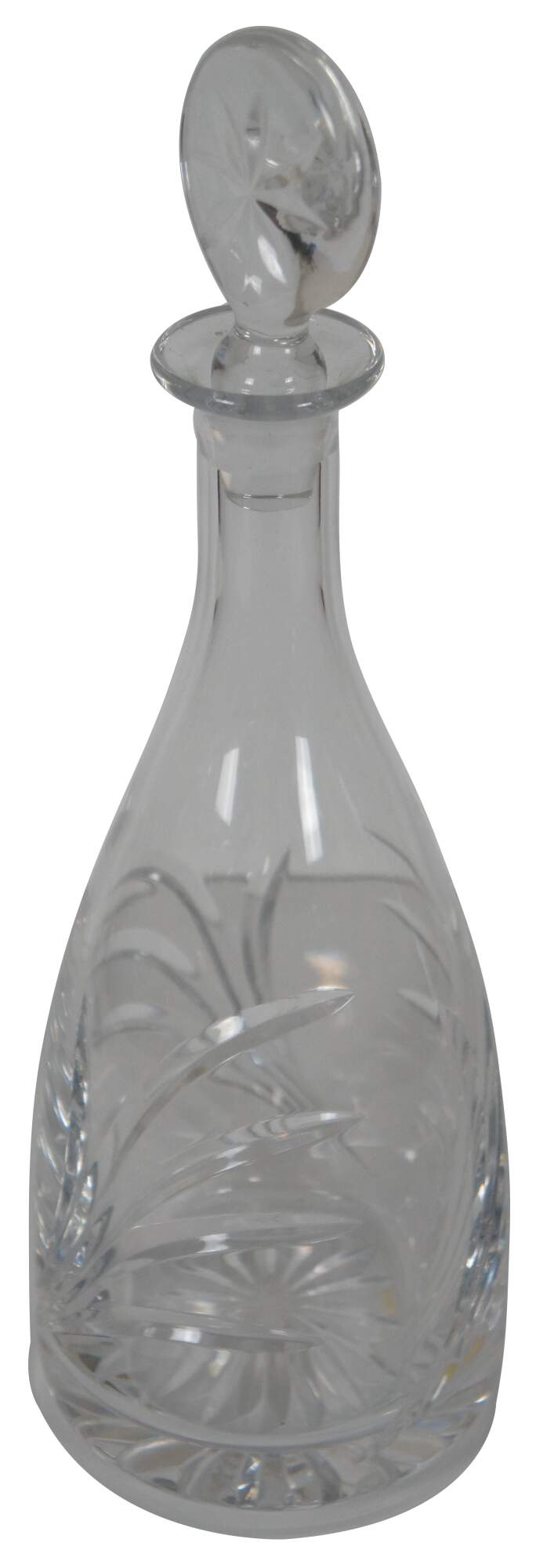 Vintage cut crystal wine decanter, made in Potugal, featuring a modern weeping cut design and round star cut stopper.