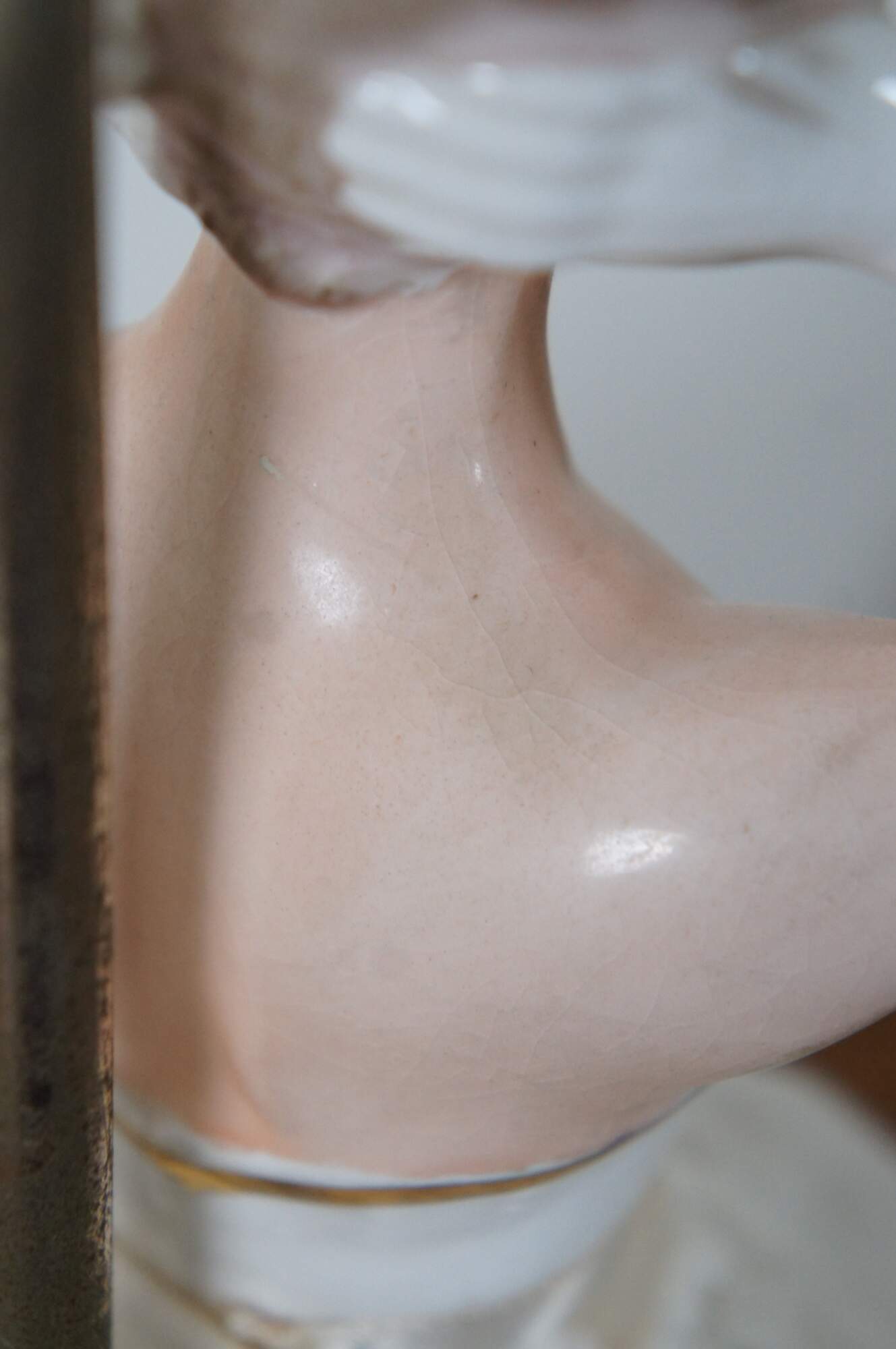 Good Overall - Discoloration to skirts/shade fabric; gentle wear/crazing to figure; shade needs repair