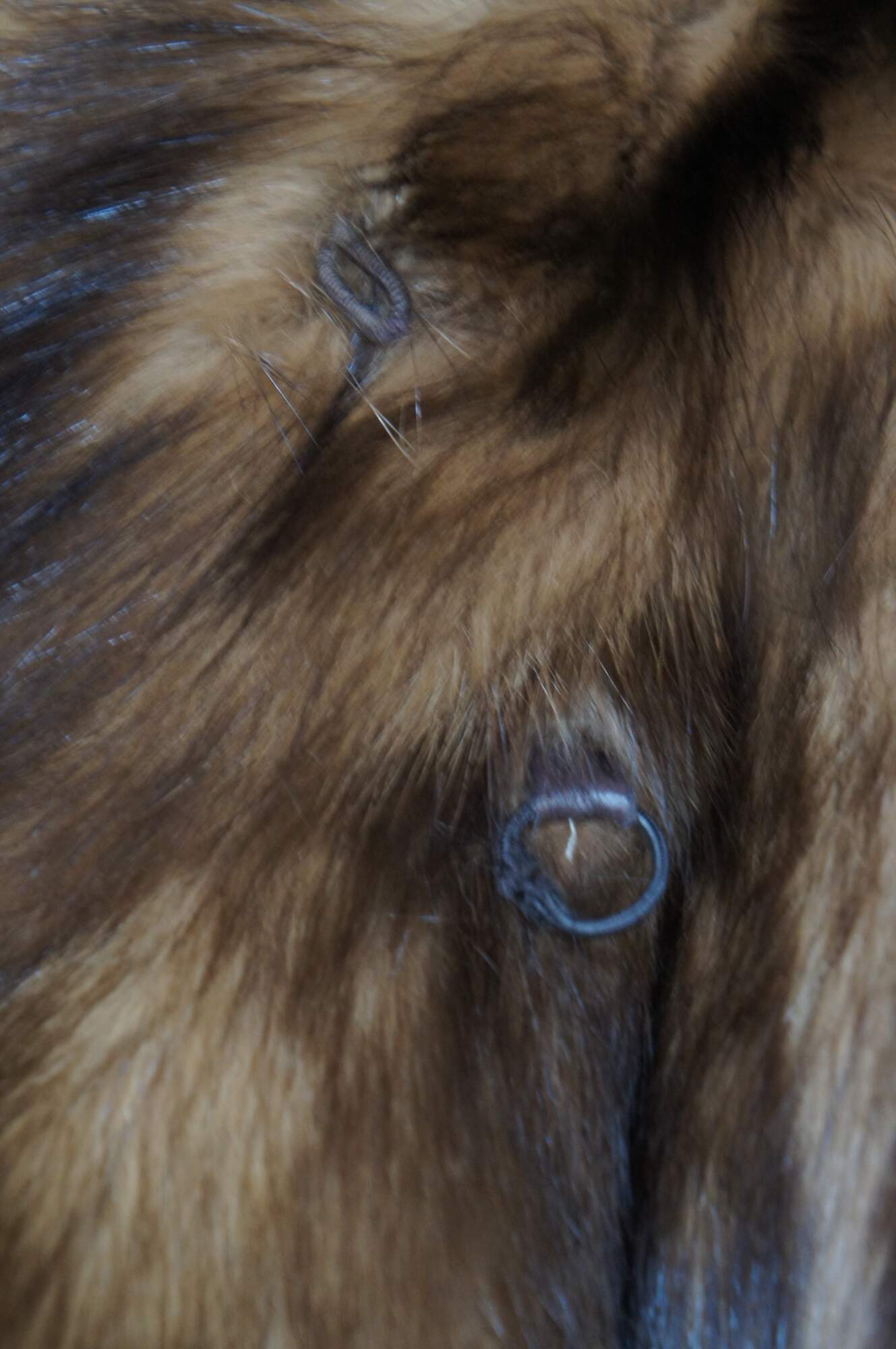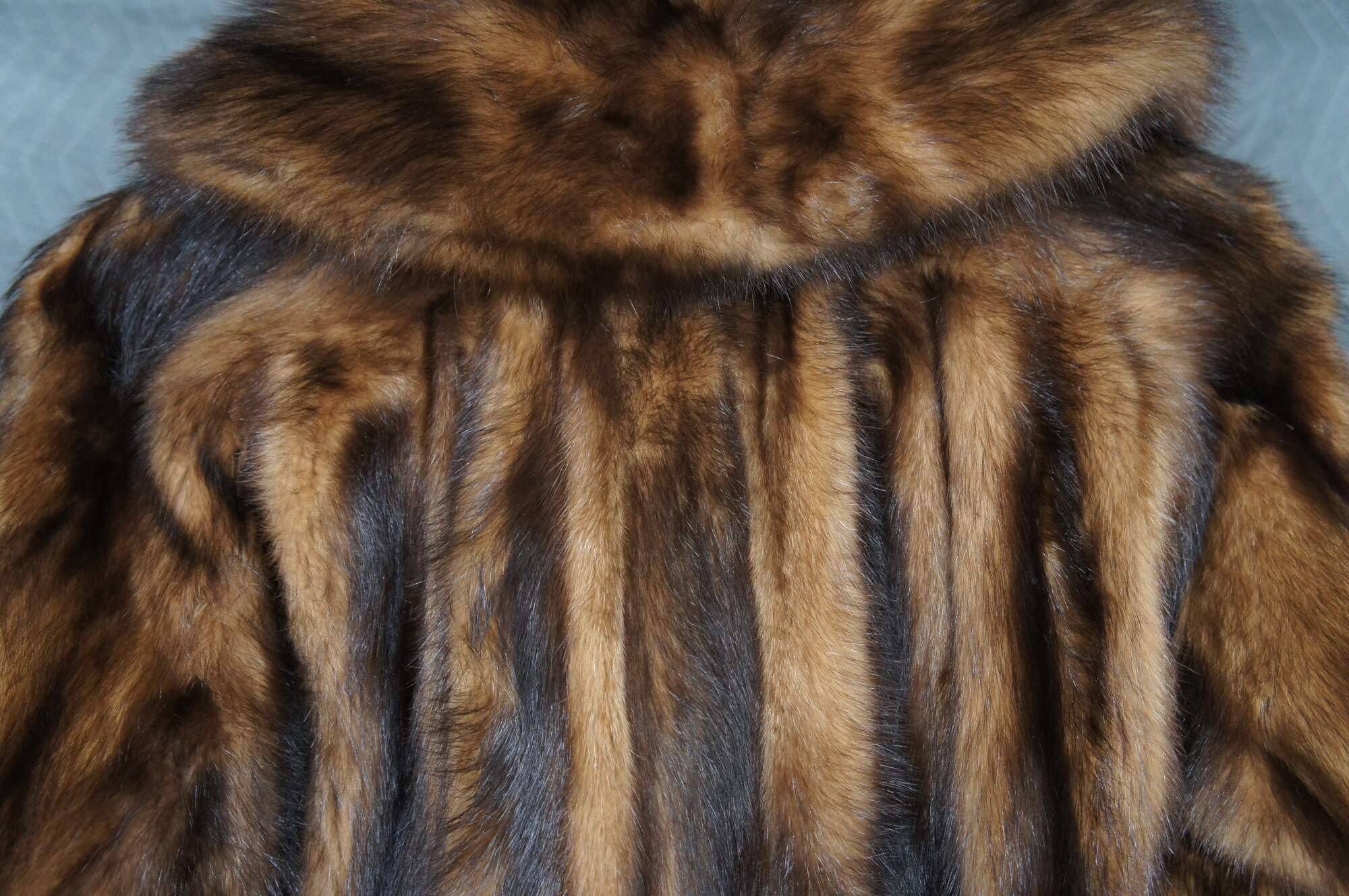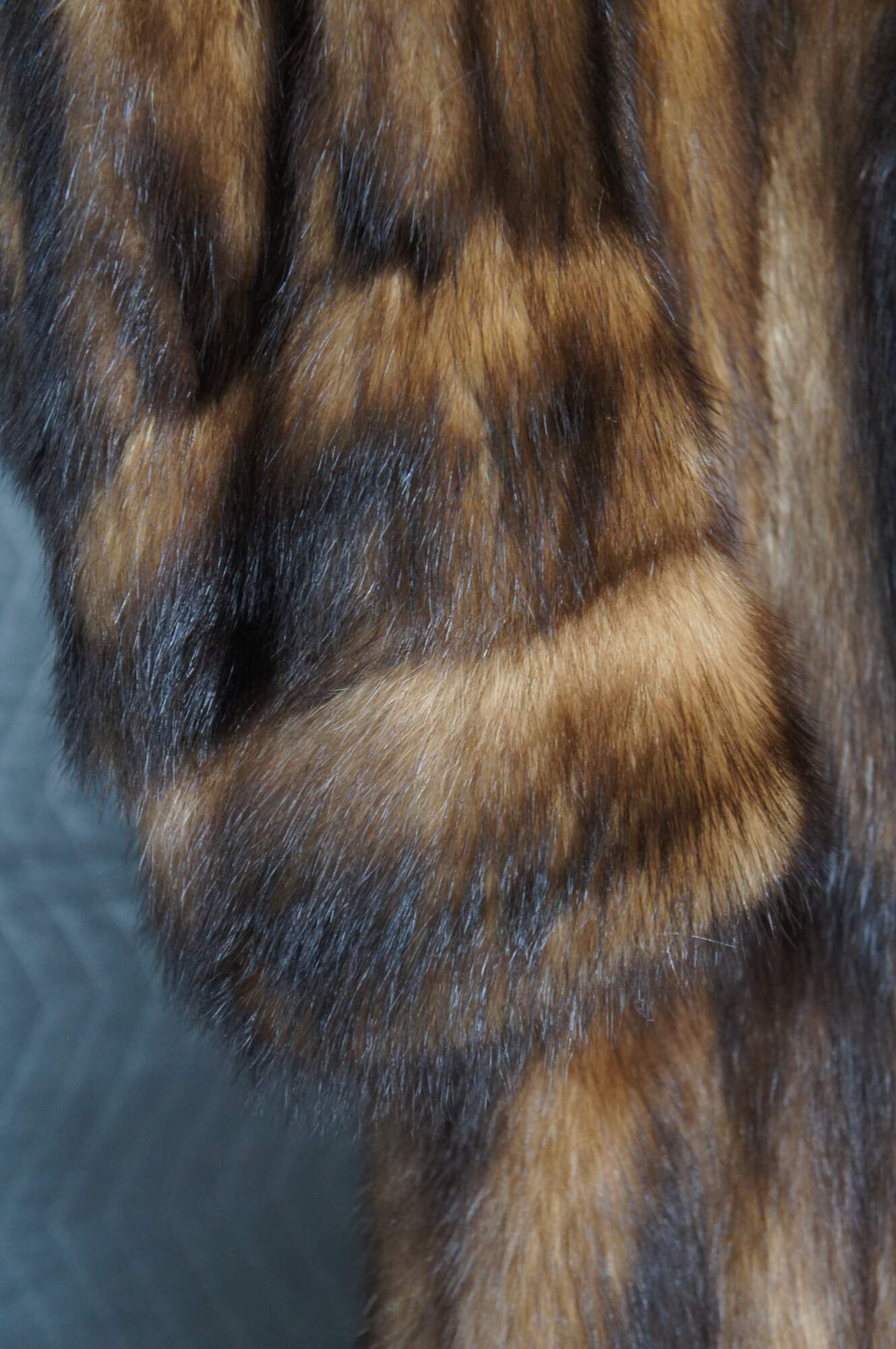 Vintage two tone brown mink fur coat, full length with swivel hook and loop closure and two side pockets. Owner of this coat is approx. 5'2'', 110lbs.