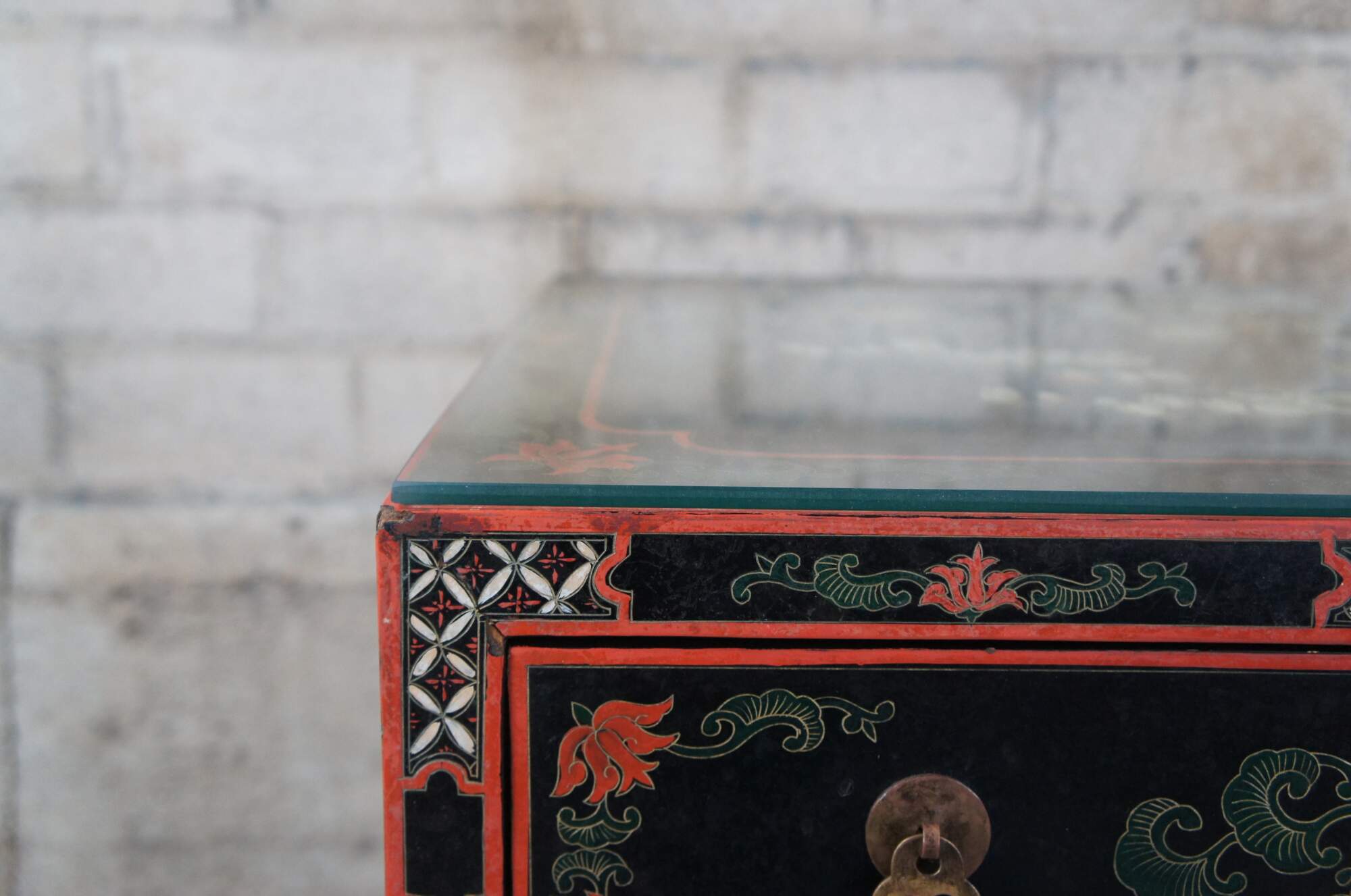 Vintage Chinese Chinoiserie Black Lacquered Painted Square Side Table Cabinet 24"