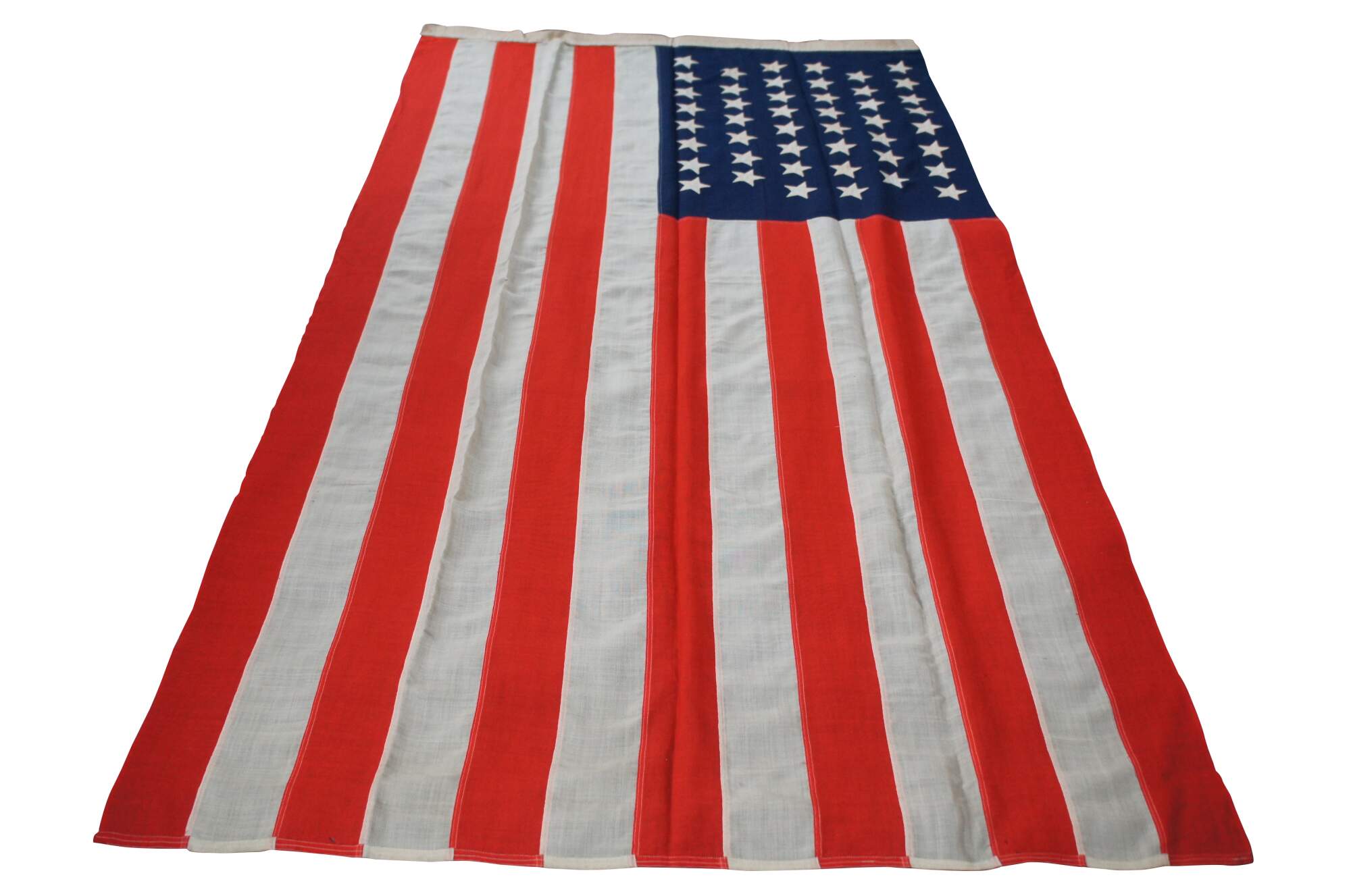 Antique forty six star large wool American flag by Horstmann Company, circa 1908-1912.