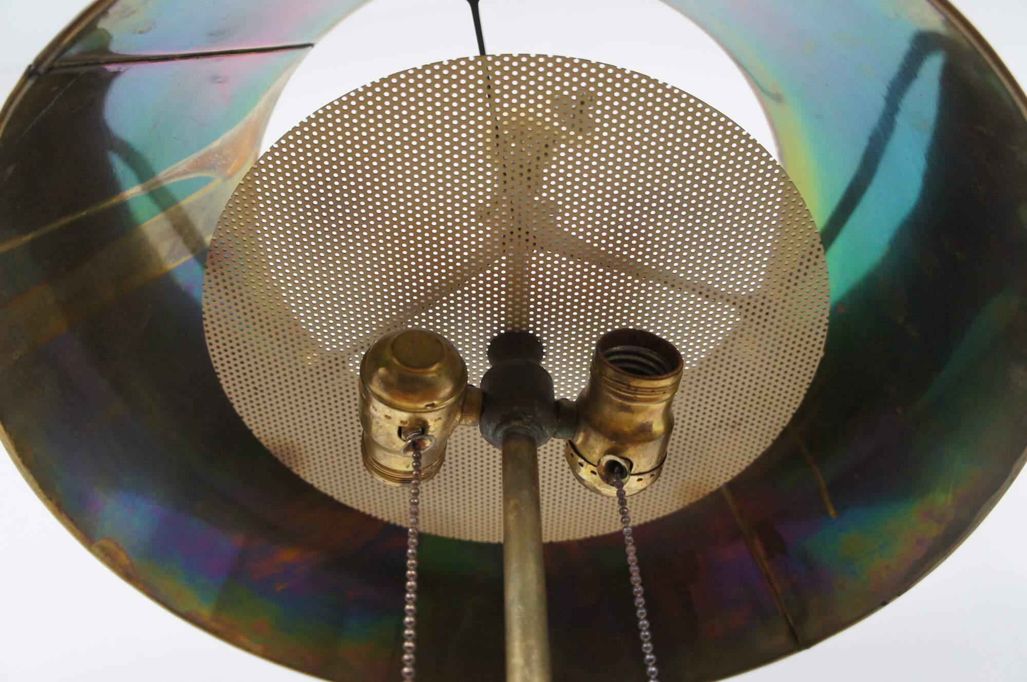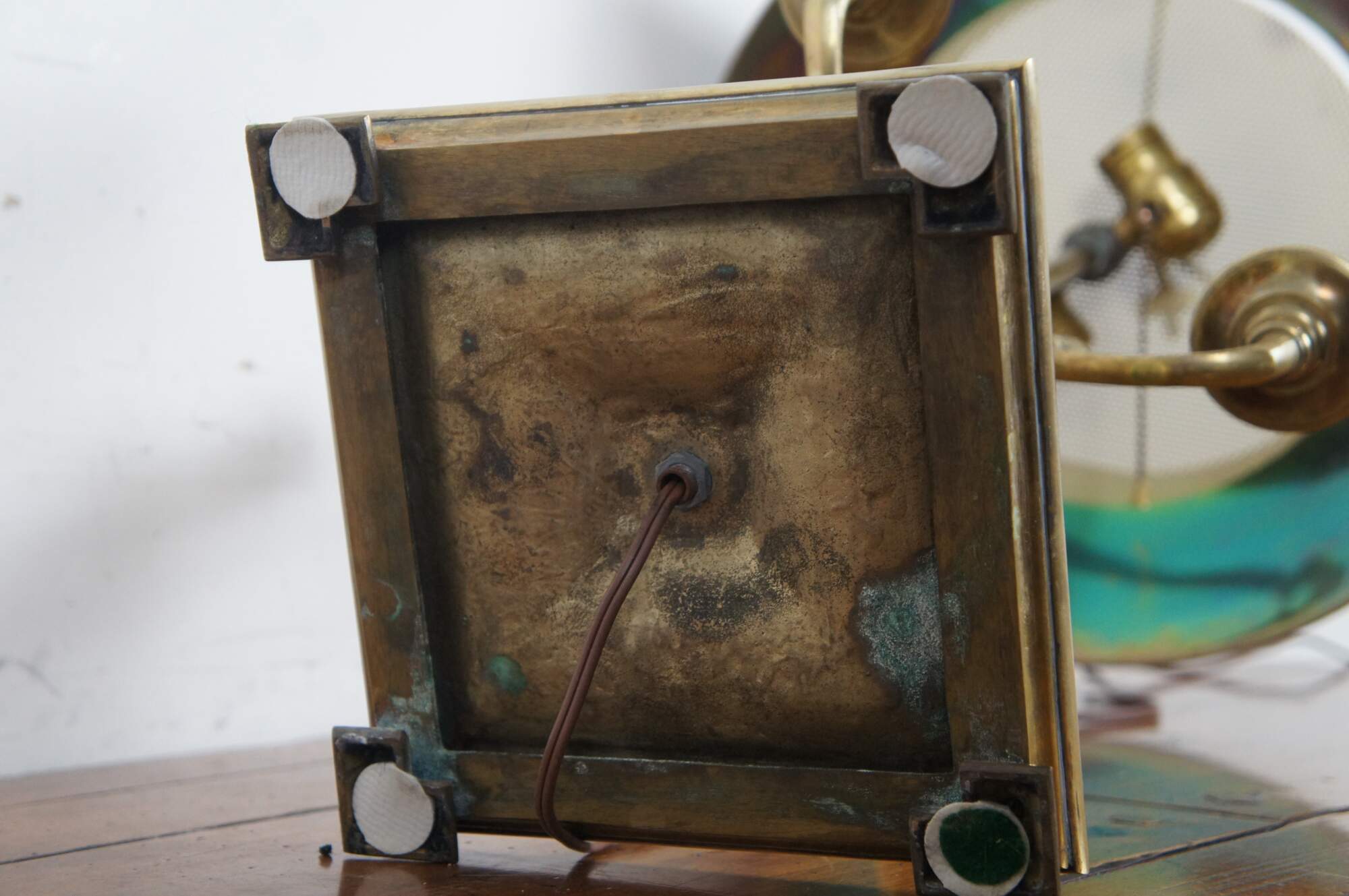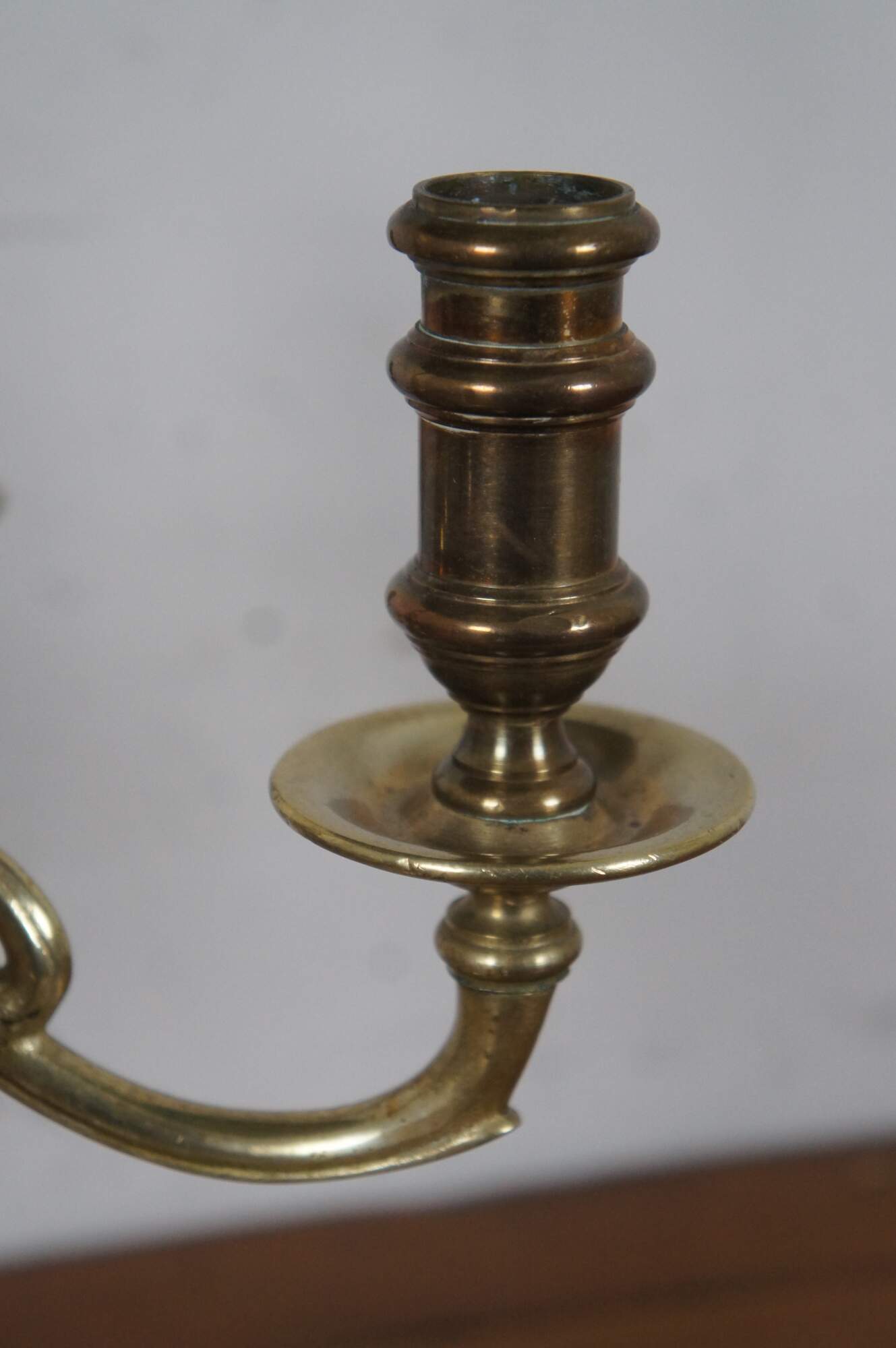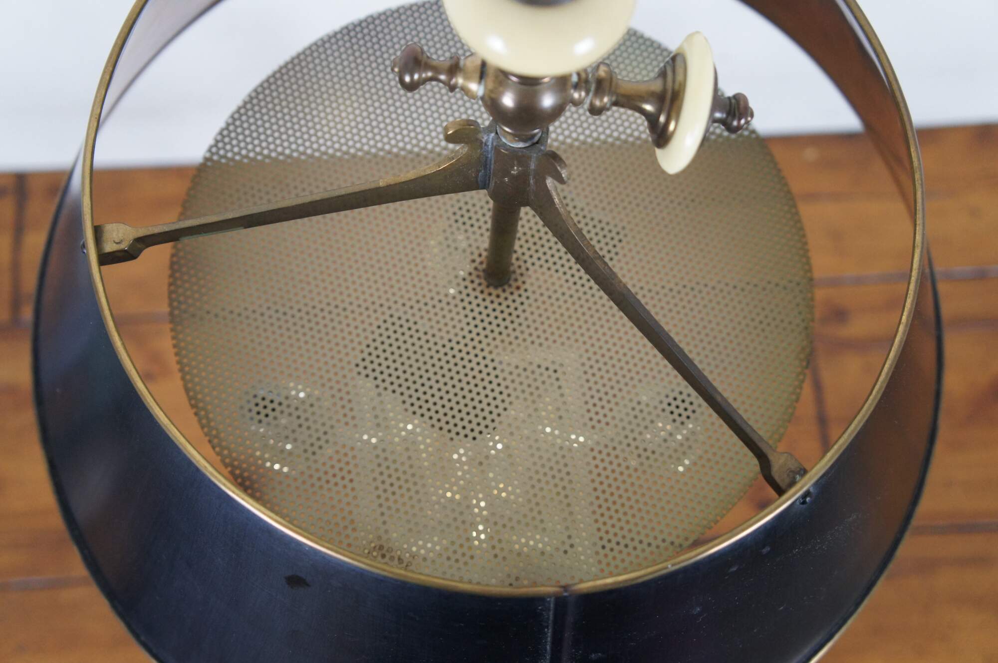 Vintage 1972 Chapman French bouillotte style table lamp with square base, four candlesticks, two lights and black tole metal shade.