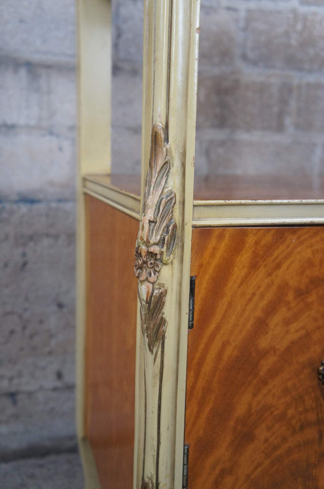 Good Vintage Condition; some paint wear and distressing commensurate with age. Chipping to molding, finish wear to surfaces.