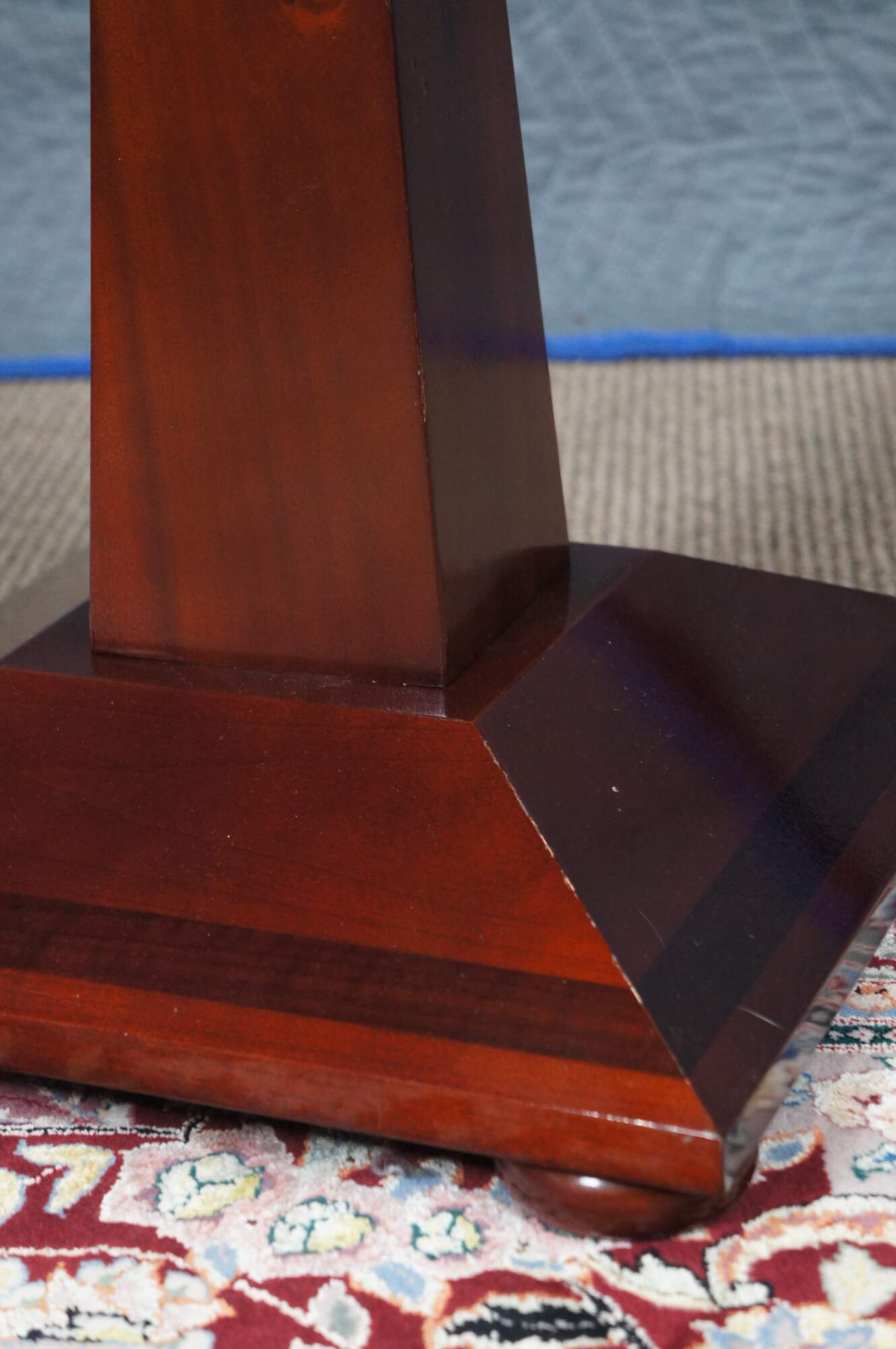 “Inspired by the inlay craftsman of Italy, the 16”/40 cm diameter antique-ocean with raised-relief will become the focal point of any room. The Logan’s pedestal floor stand is detailed with hand rubbed, inlaid wood. This furniture accessory will be the envy of all.” MSRP: $1479.99