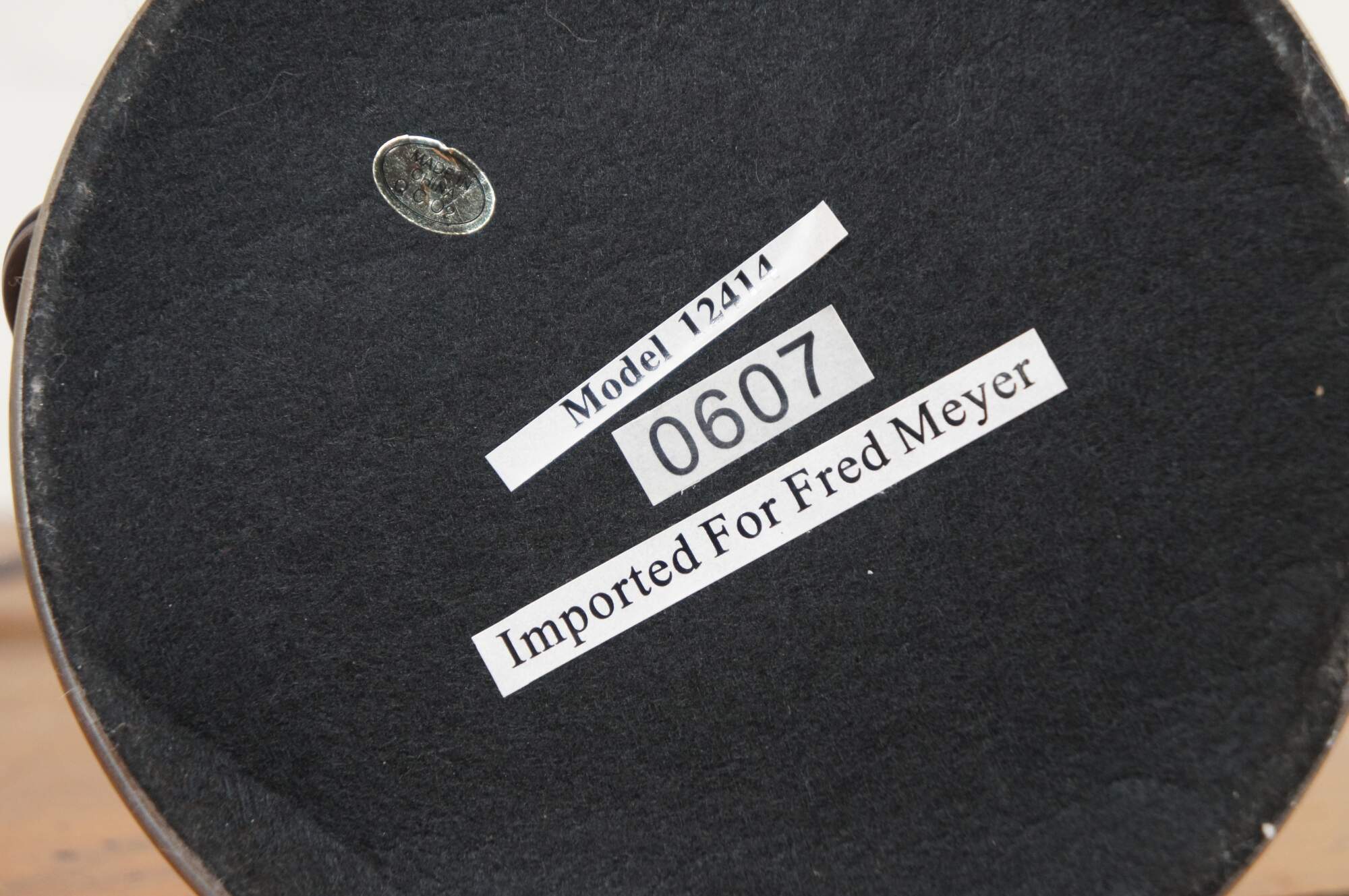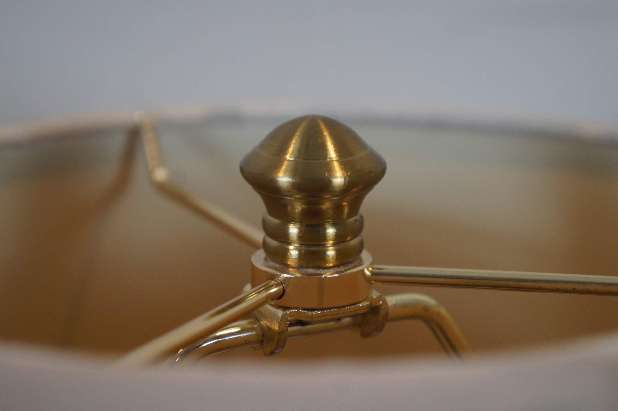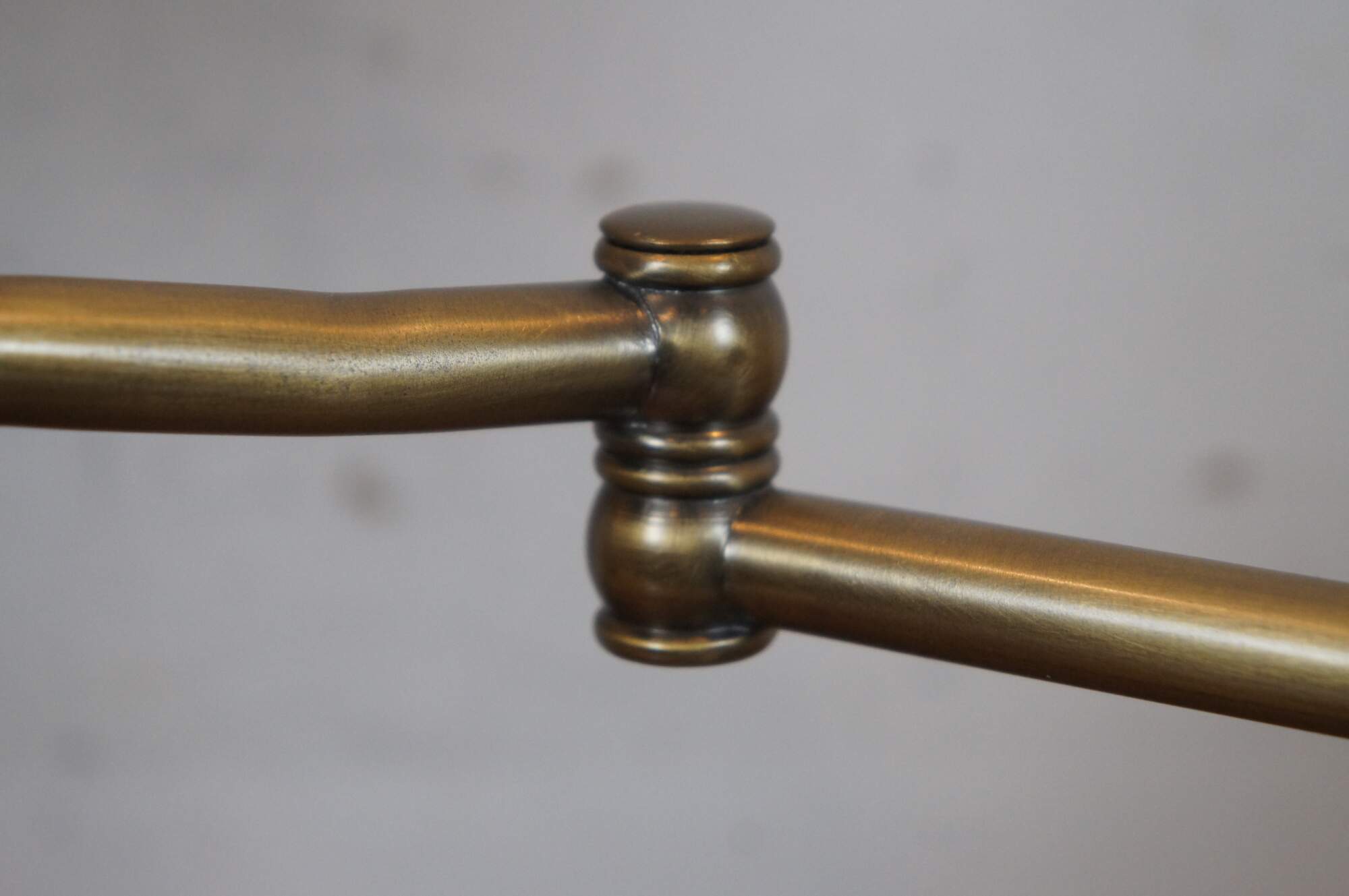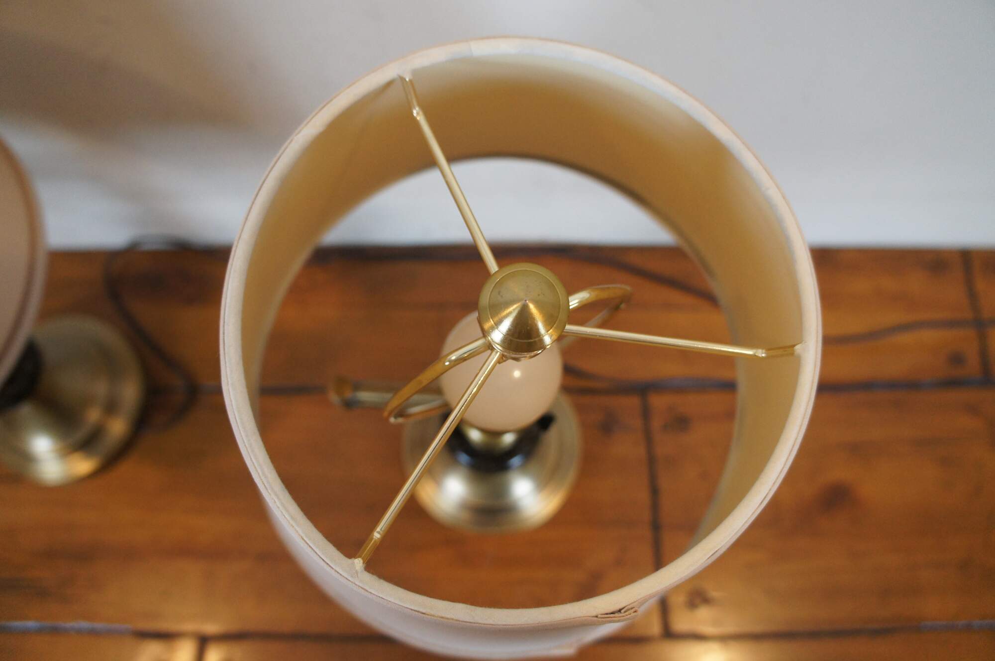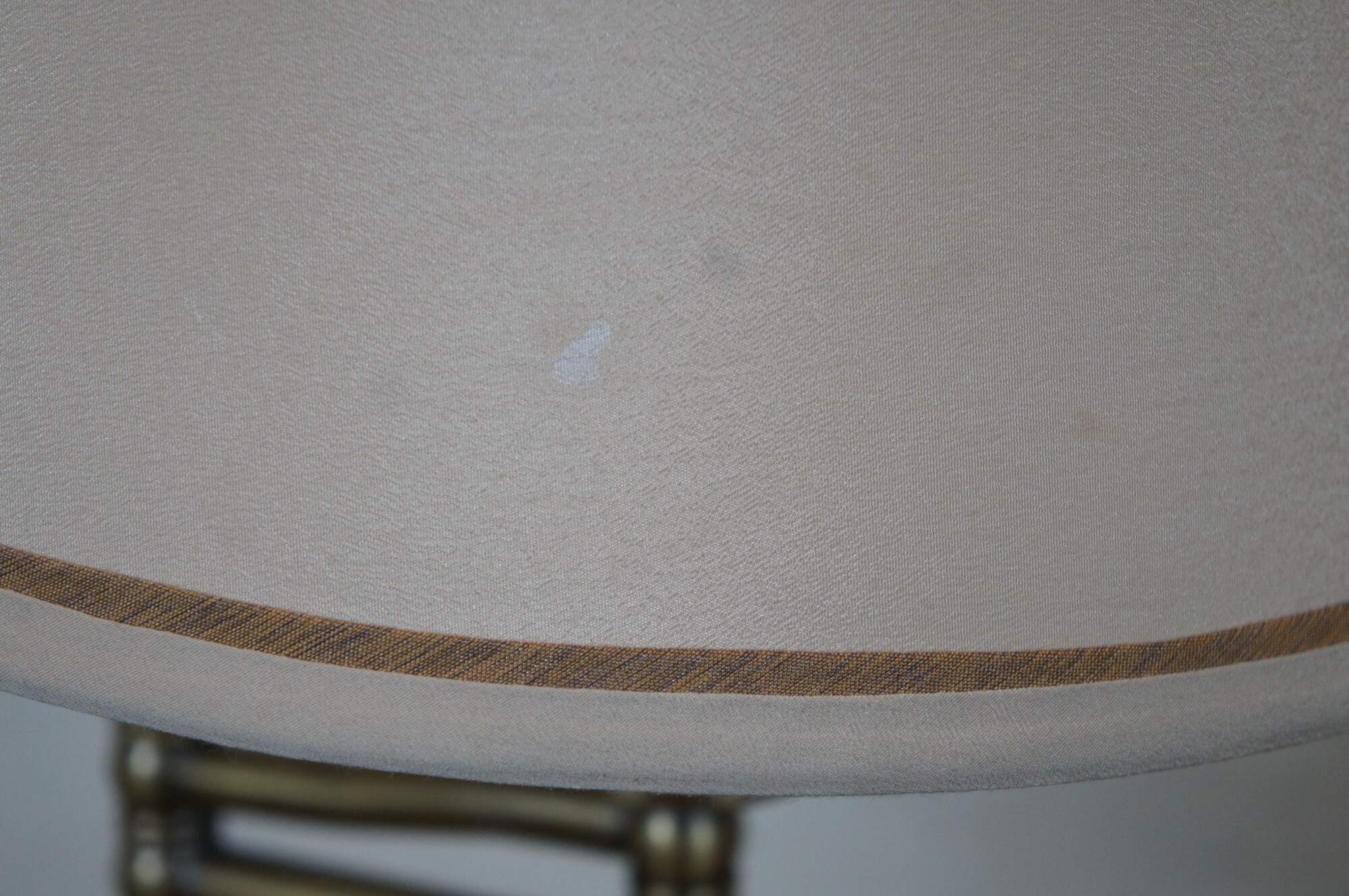 Pair of vintage brass and faux marble swing arm table lamp with off white shades, imported for Fred Meyer.