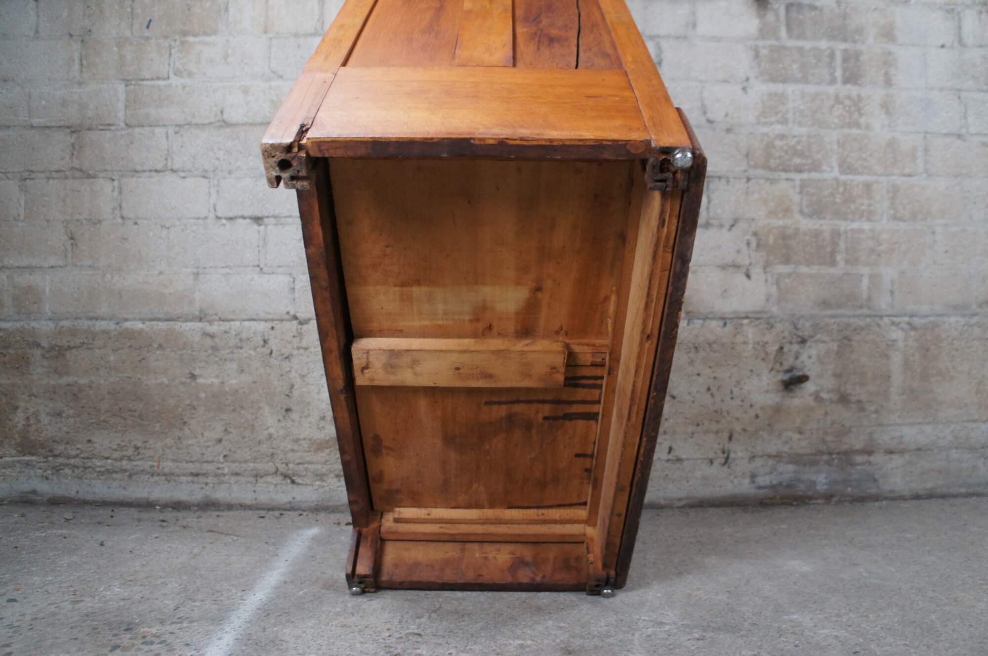 Good antique condition, wear and distressing commensurate with age and use, fading, missing backsplash, splitting / cracking, no castors.