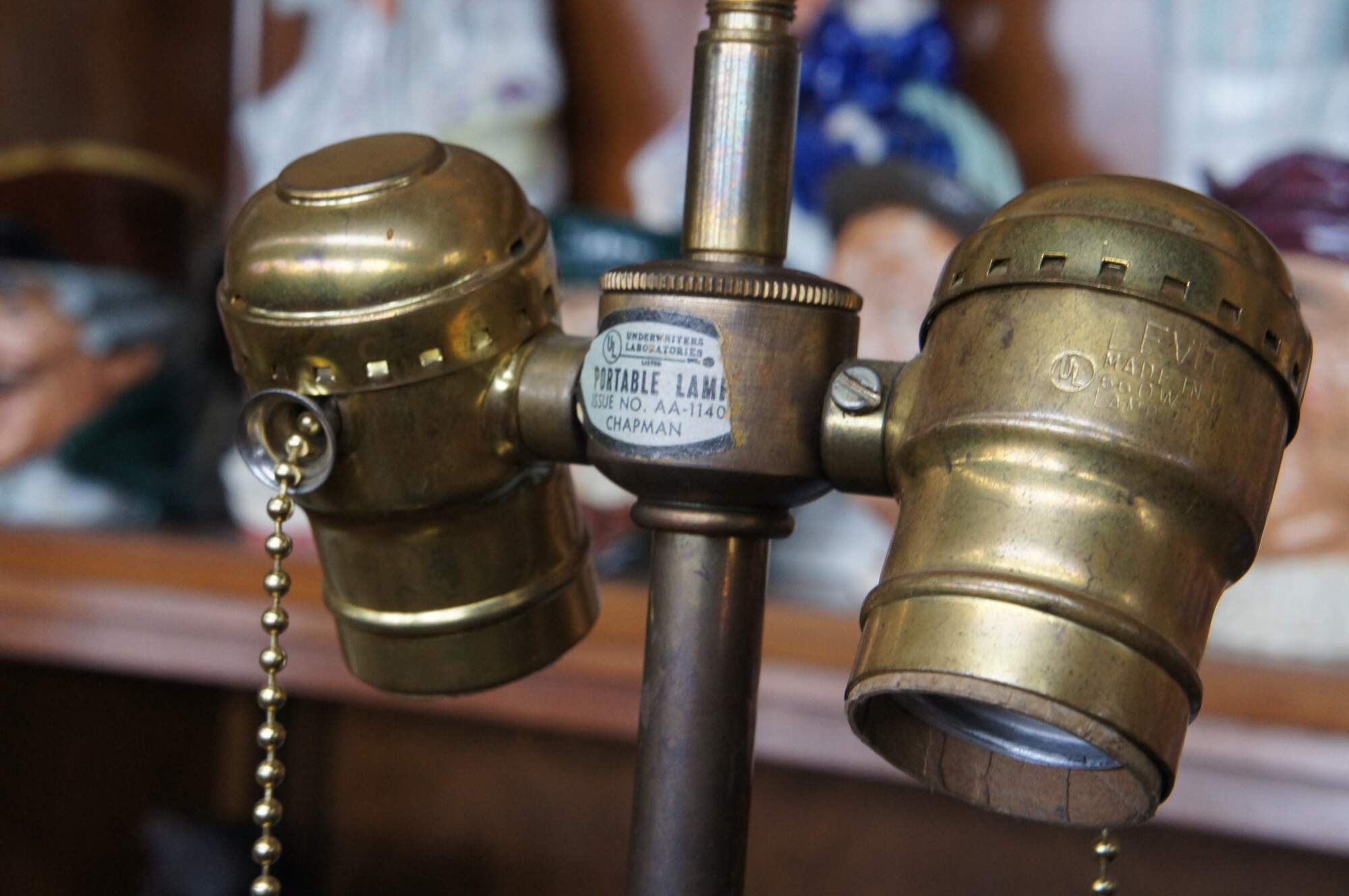 Good Overall - A few trim spots missing along the lower edge of shade. Tarnish - This lamp can be polished if you want it to glisten.