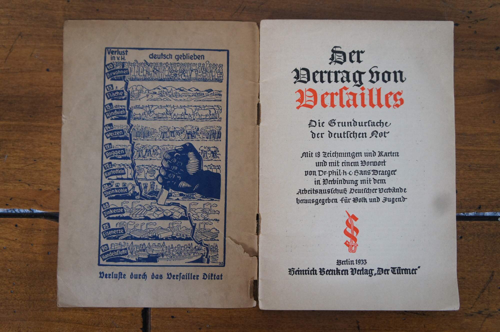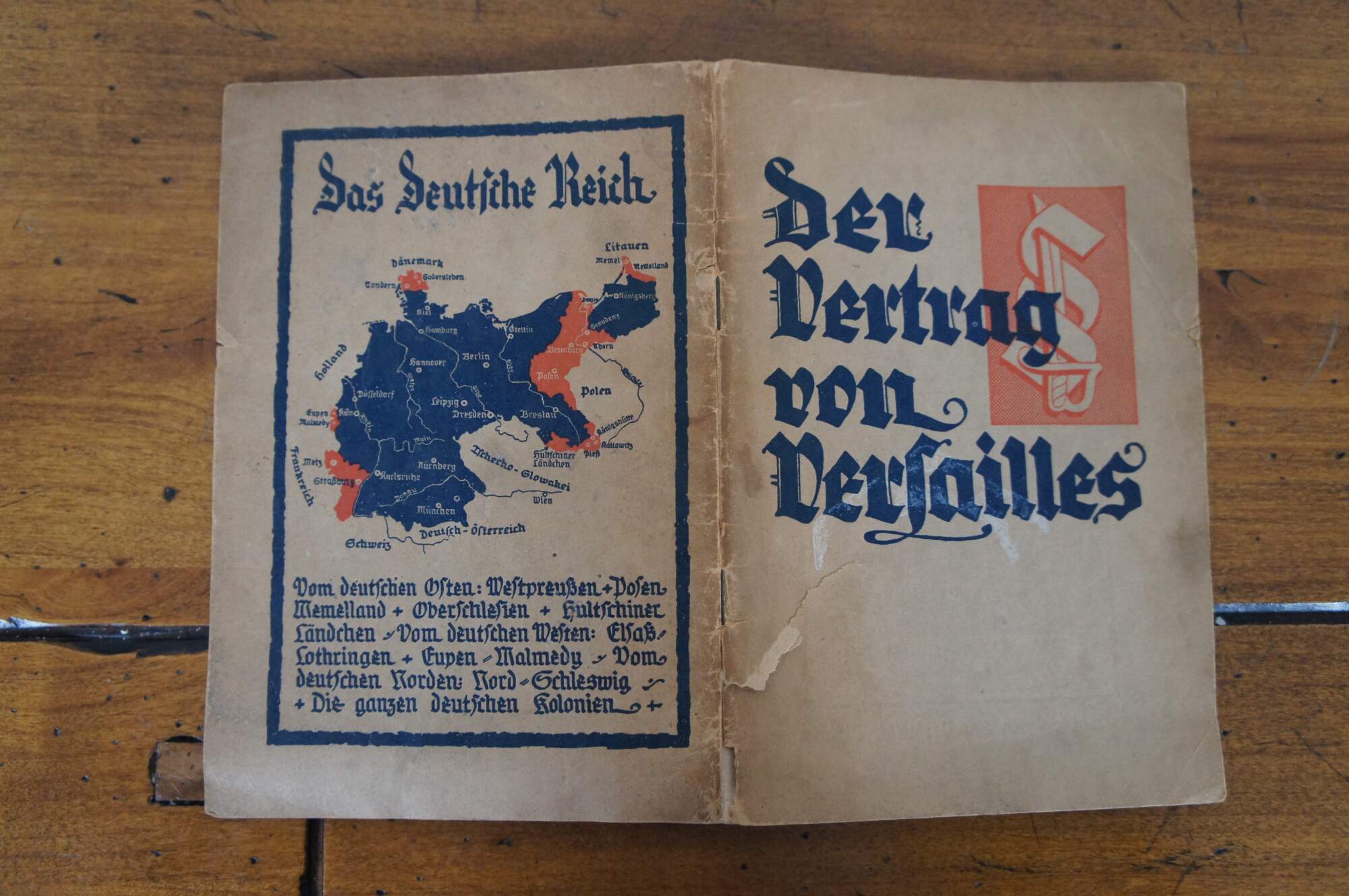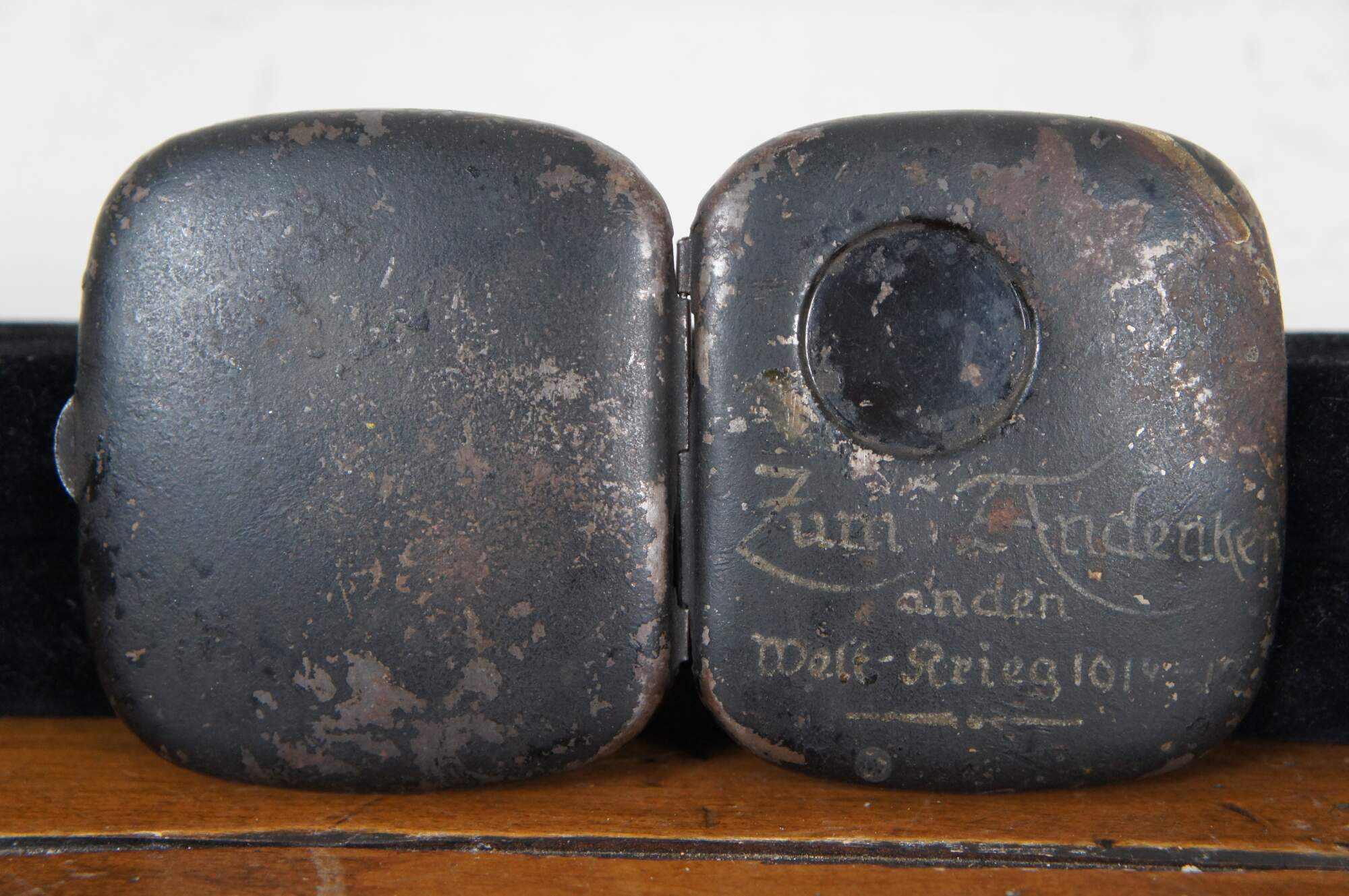Lot of assorted items from early to mid 20th century Germany including a metal cigarette case engraved to commemorate World War I, 1933 Treaty of Versailles pamphlet / booklet, a certification paper for travel dated 1934, 2 pages of a passport, specifically mentioning travel between Germany and Belgium dated 1940, aluminum Luftwaffe table spoon marked H.M.Z. 41 and Fl.U.V. indicating Flieger Unterkunft Verwaltung (Flight Barracks Administration), and a cloth version of the German Cross badge/medal, Gold Class, 1941.
