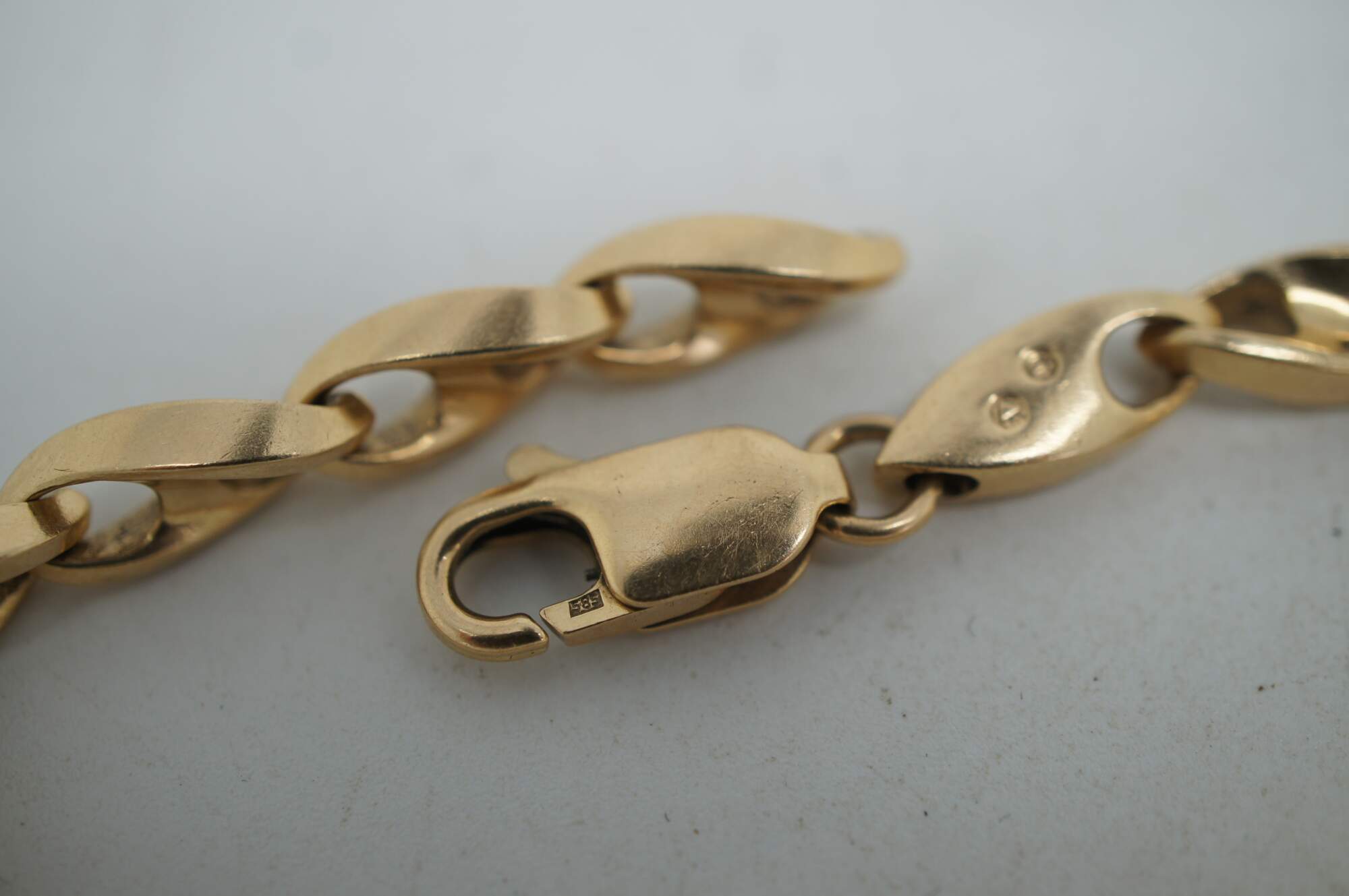 Vintage 14k / 585 (58.5% gold) yellow gold 6.35mm wide barleycorn chain bracelet with lobster claw clasp. Made in Italy.